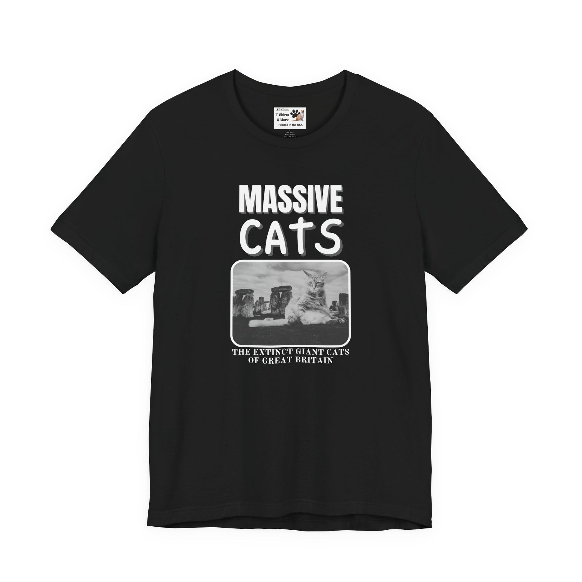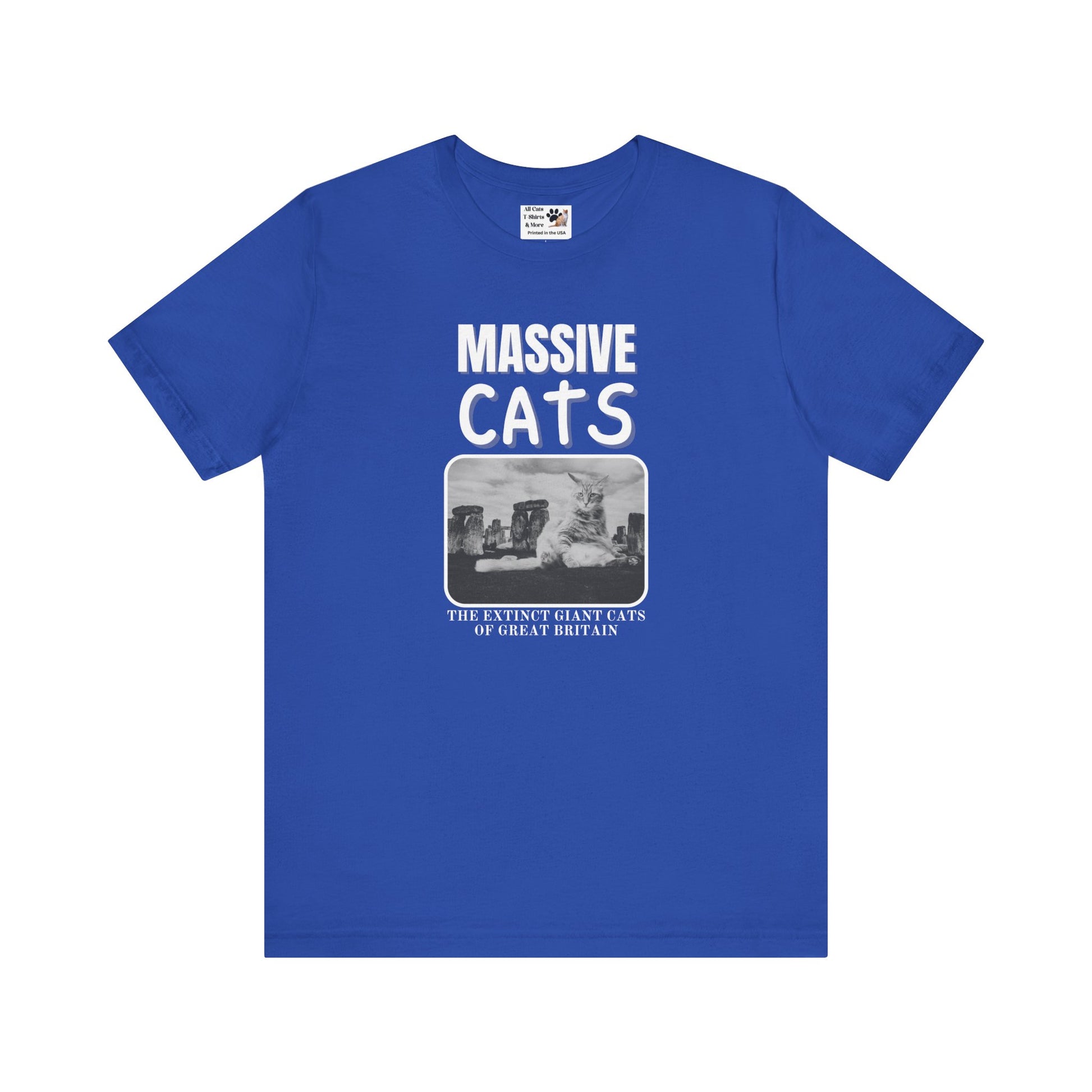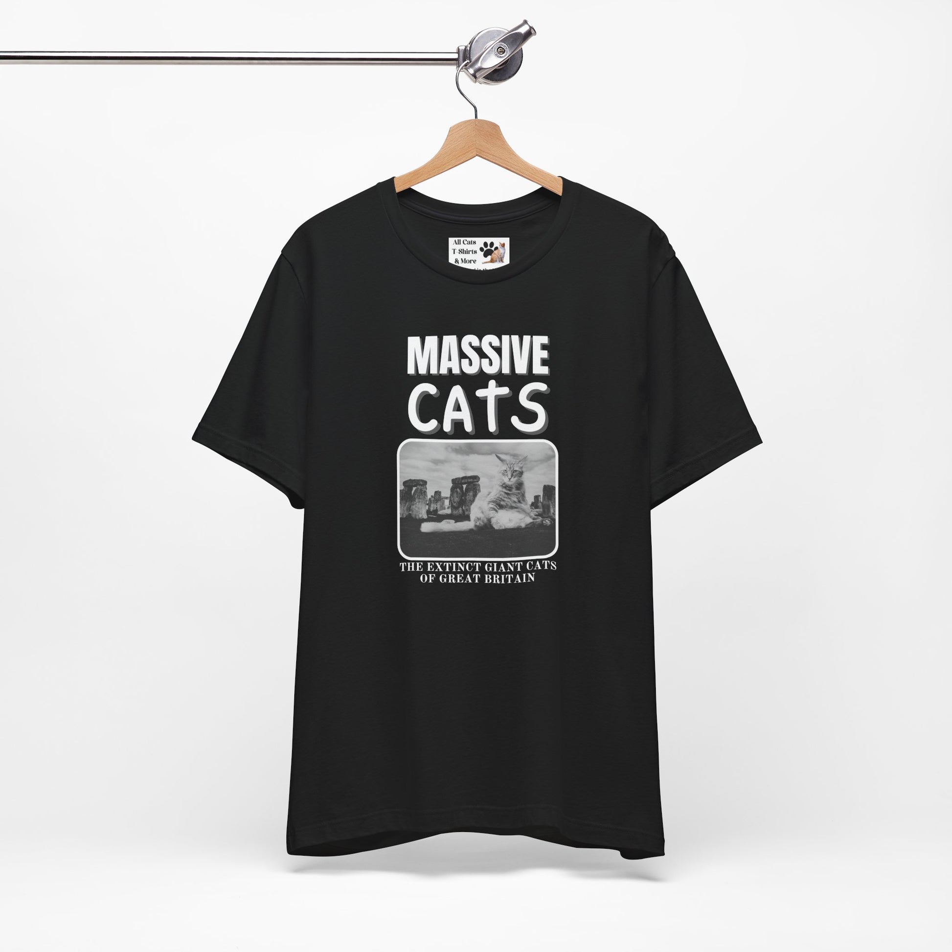 A Massive Cats T-Shirt - Huge Cat Sitting In Front of Stone Henge - (Vintage Inspired, Funny Cat Unisex Jersey Tee - Perfect for Cat Fans!)