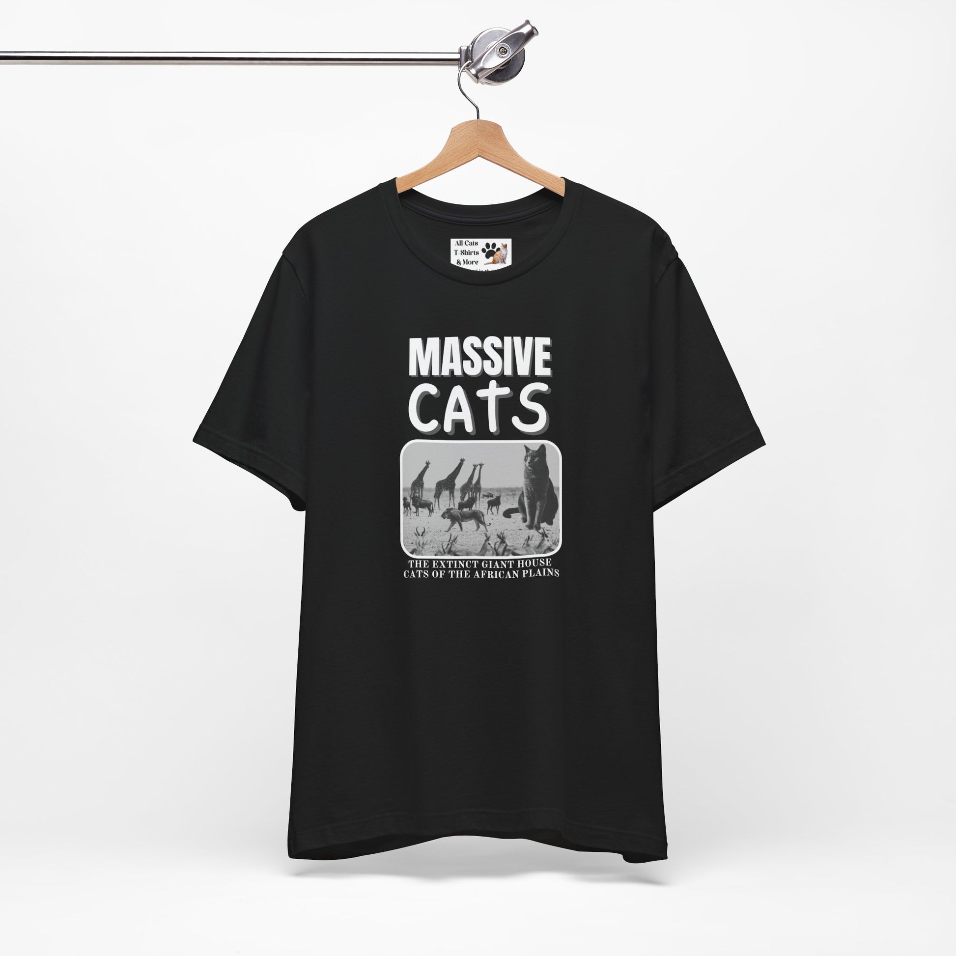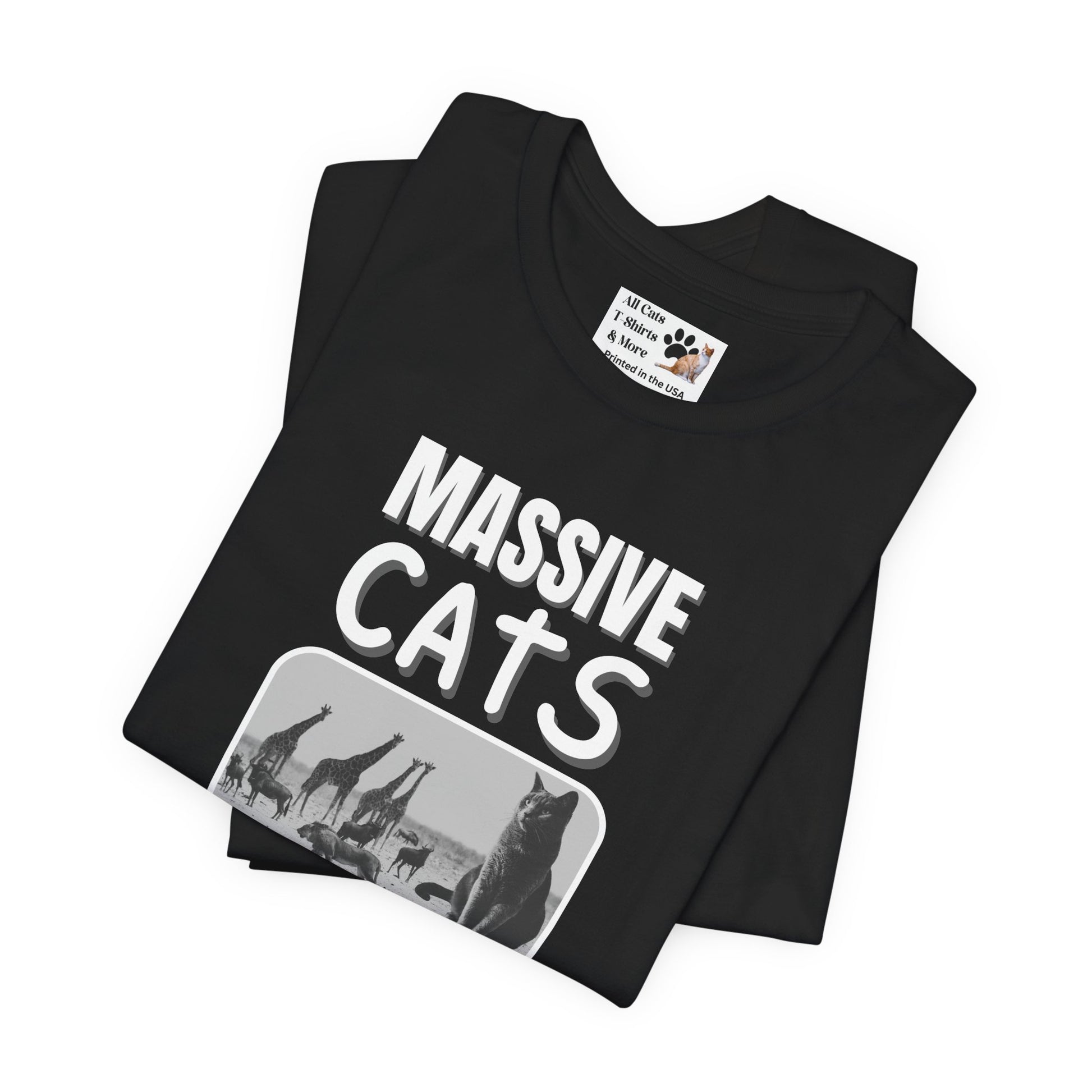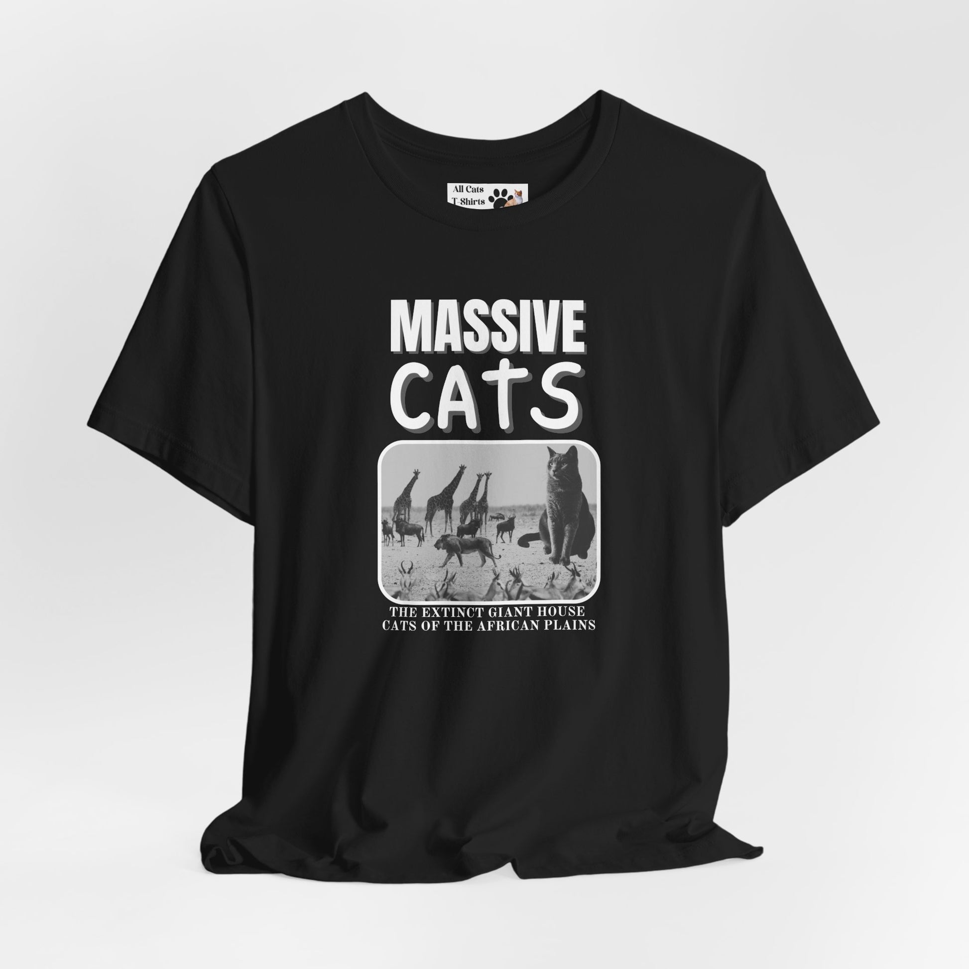 A Massive Cats T-Shirt - Huge House Cat on African Plain - (Vintage Inspired, Funny Cat Unisex Jersey Tee - Perfect for Cat Fans!)