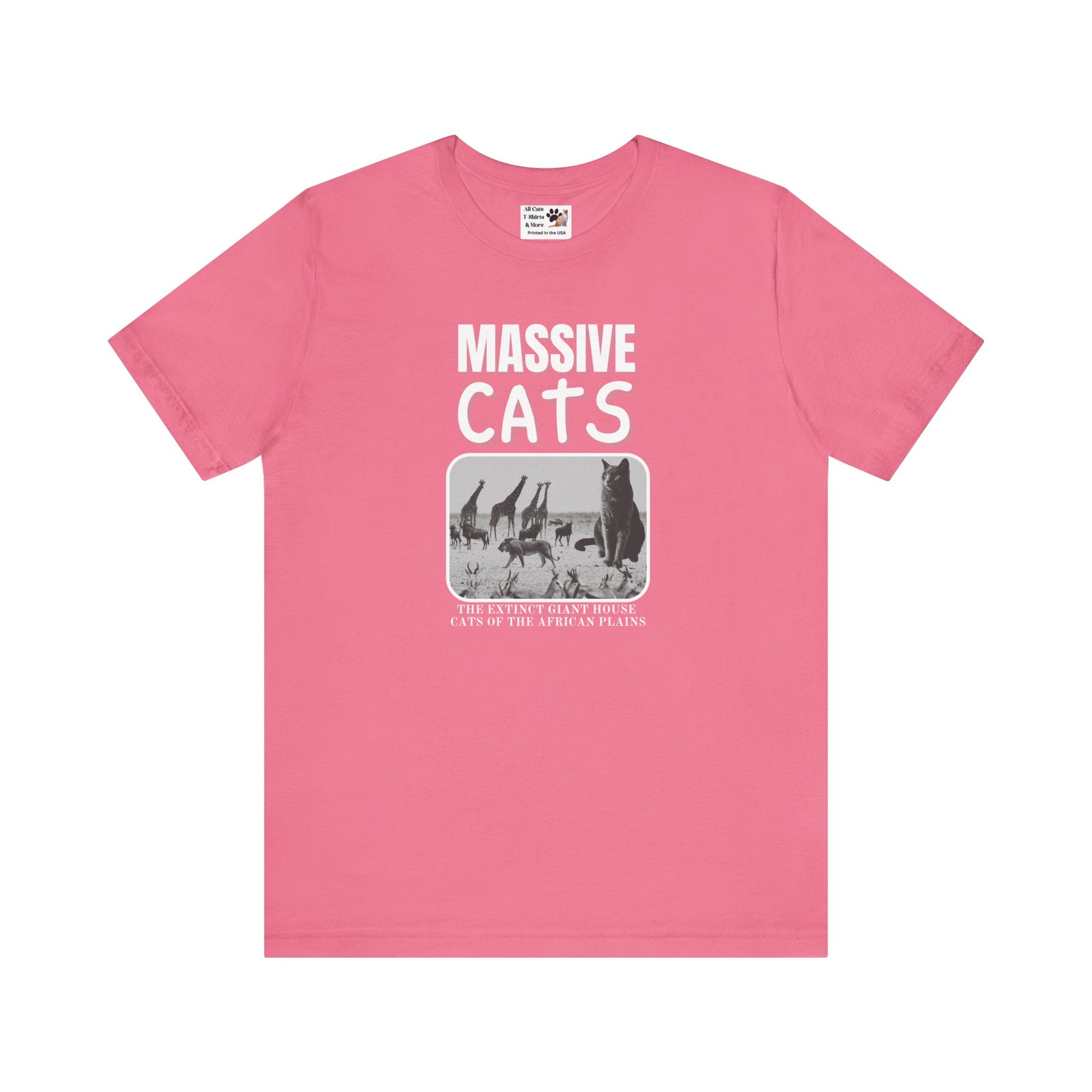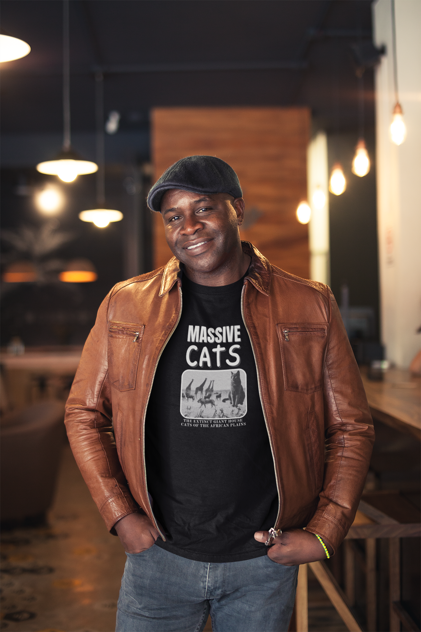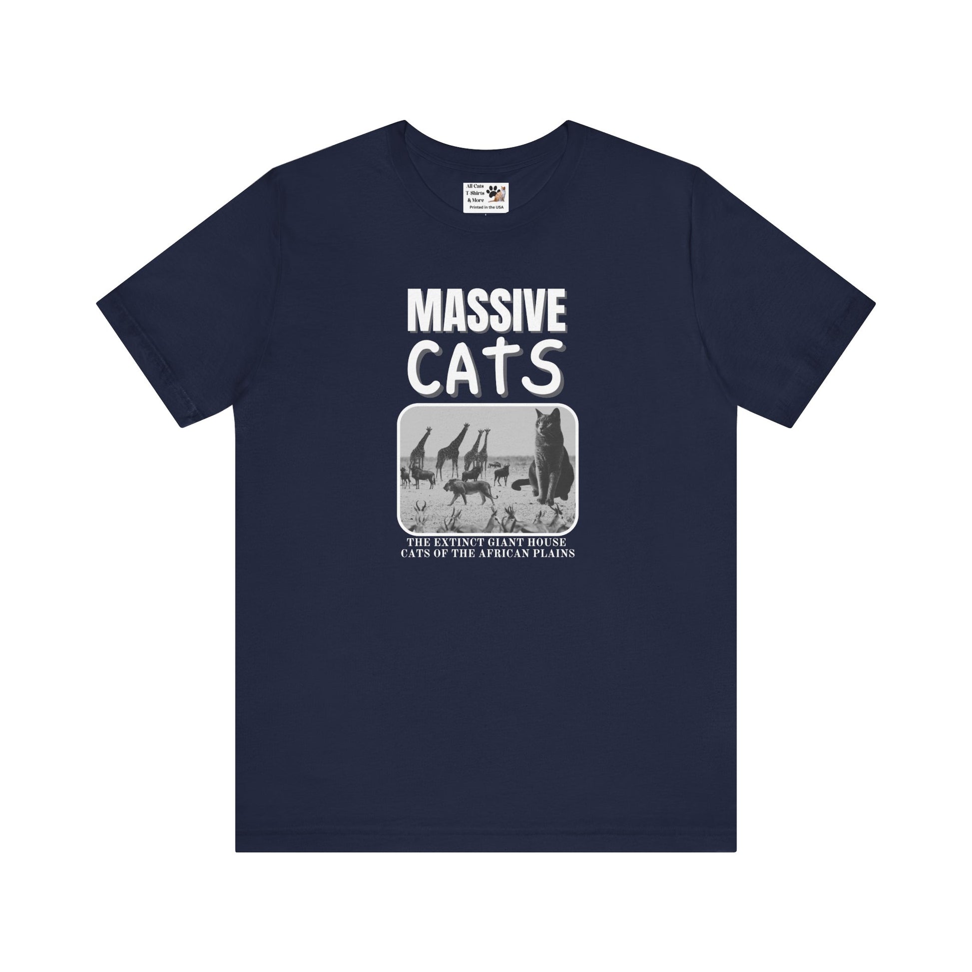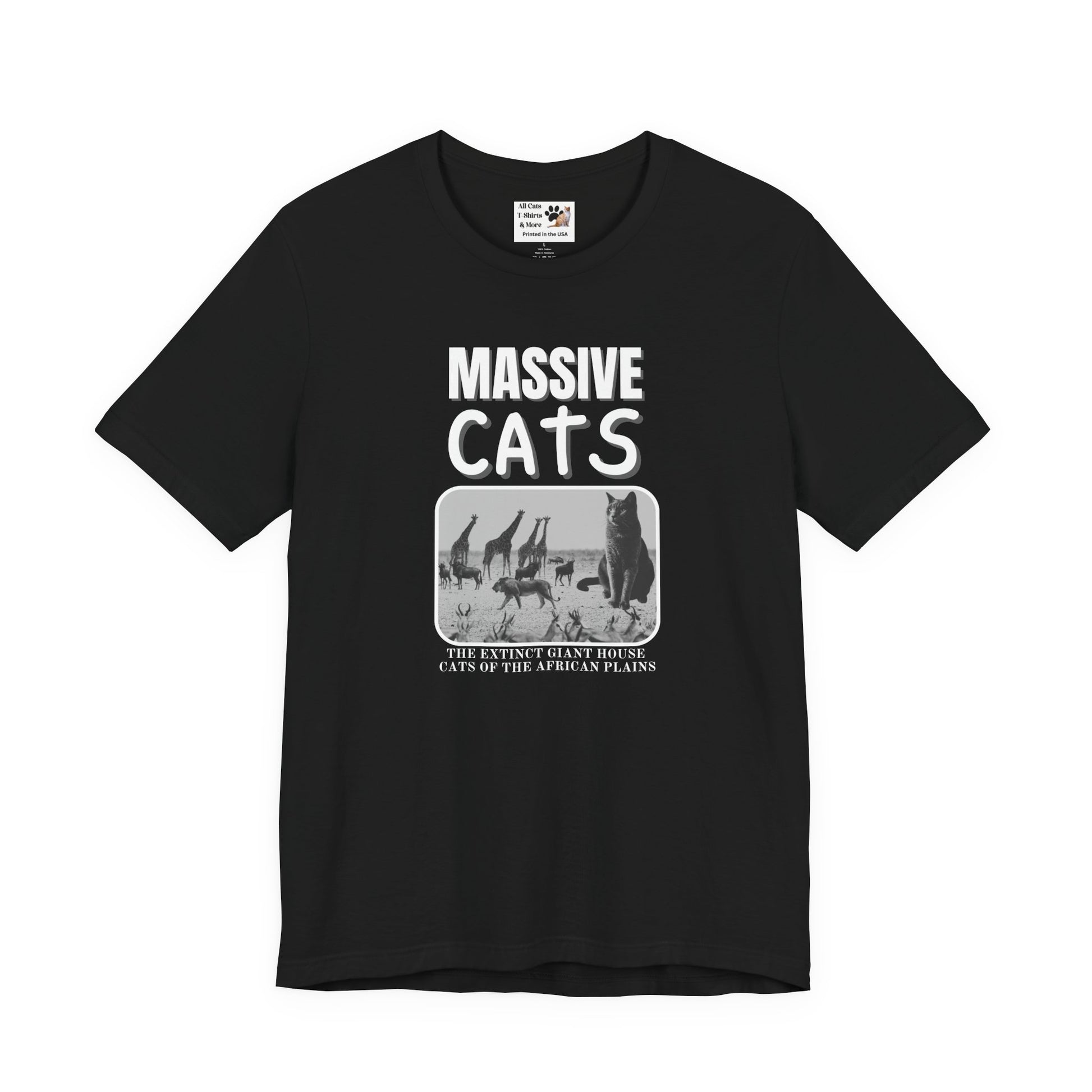 A Massive Cats T-Shirt - Huge House Cat on African Plain - (Vintage Inspired, Funny Cat Unisex Jersey Tee - Perfect for Cat Fans!)