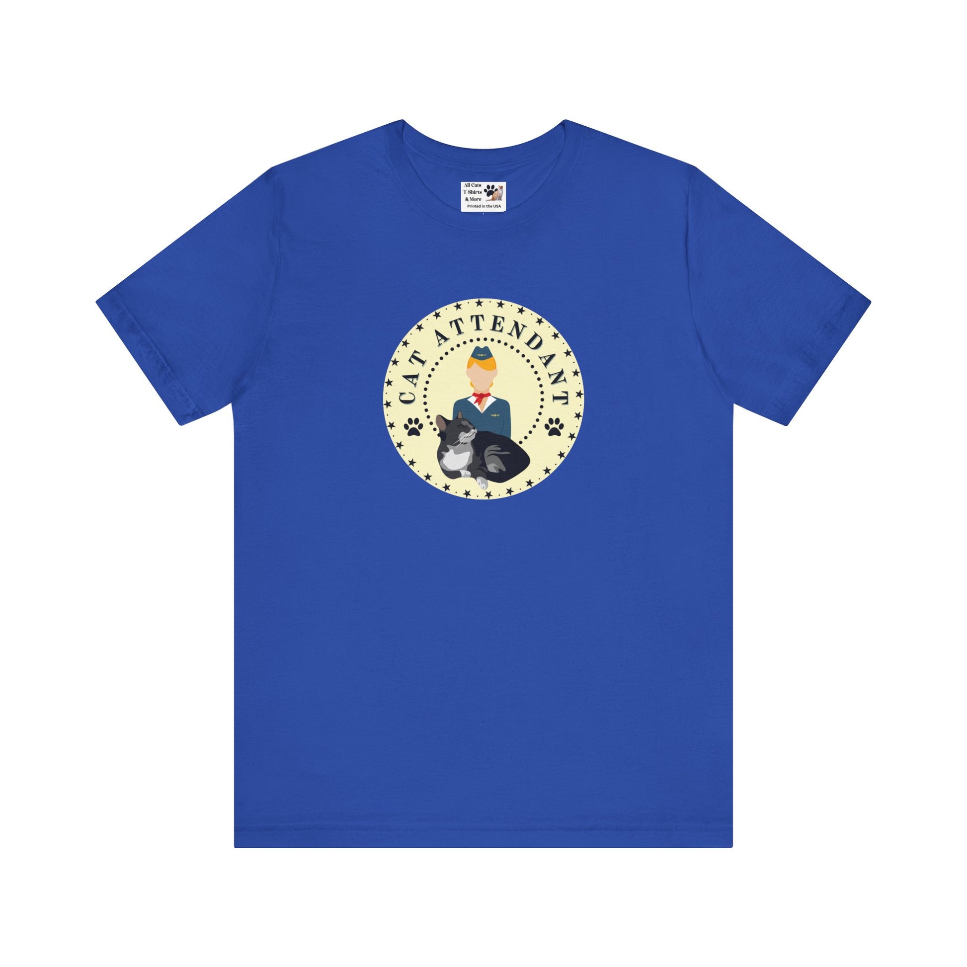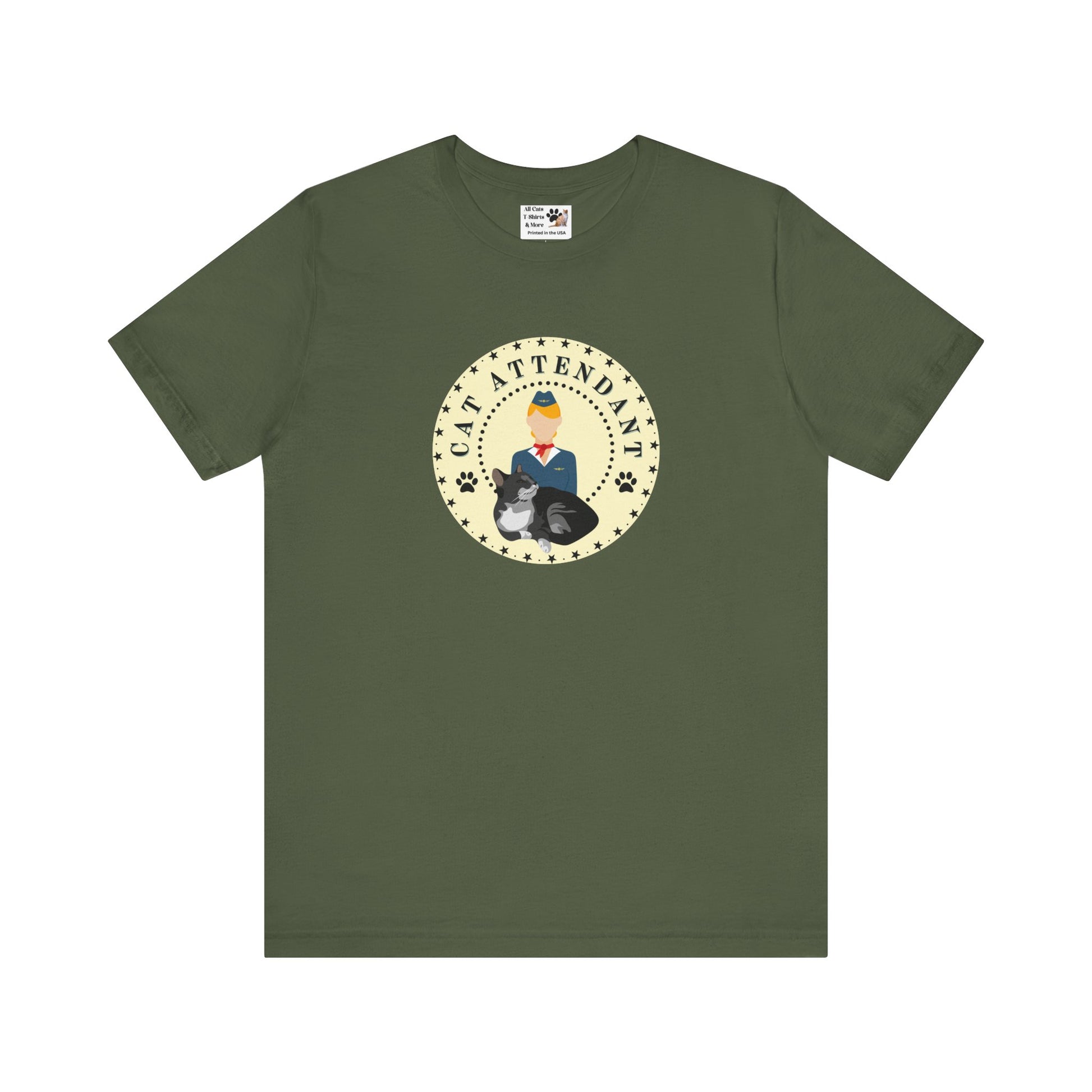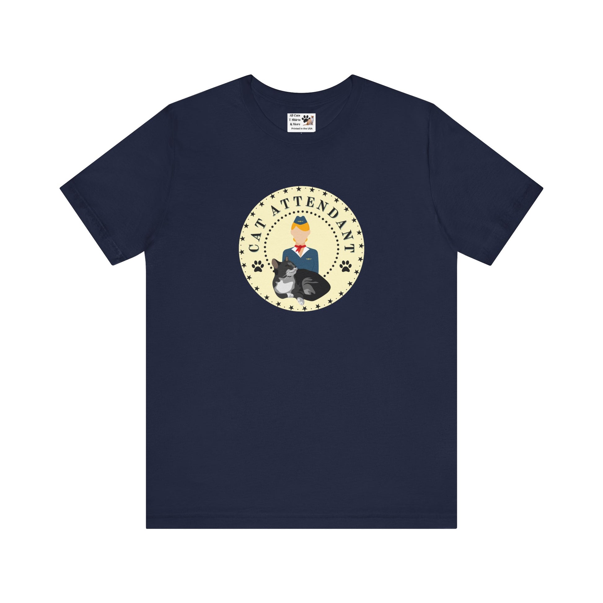 "Cat Attendant" Grey Cat T-Shirt - (Unisex Jersey Short Sleeve Tee - Perfect Gift for Cat Lovers!)