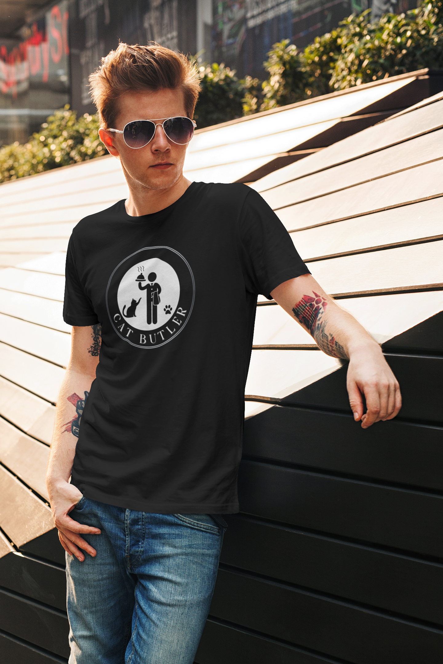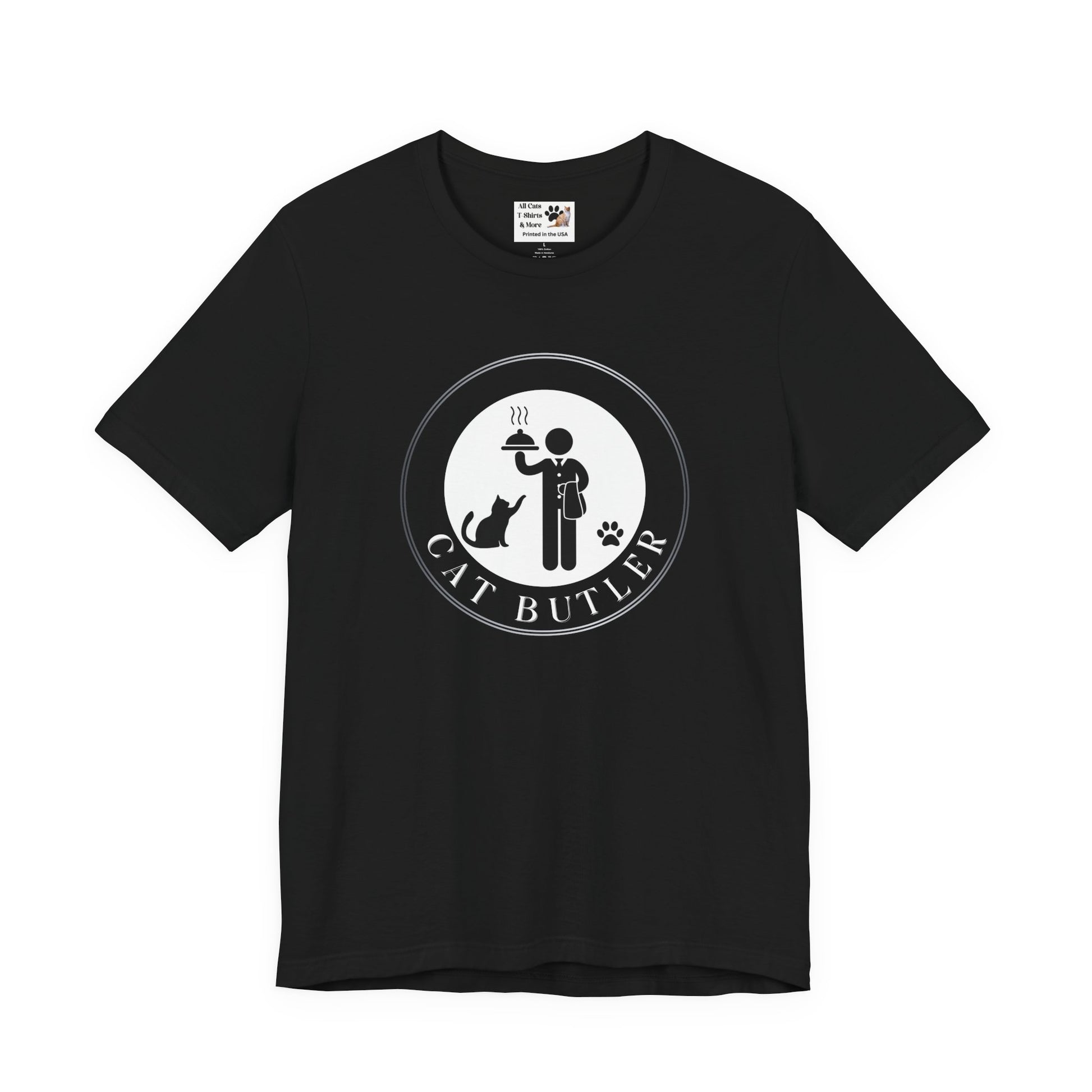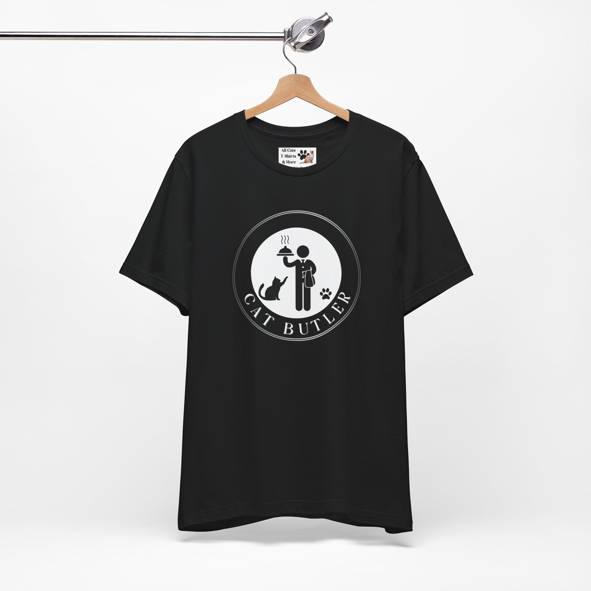 "Cat Butler" T-Shirt - With Black & White Graphic - (Unisex Jersey Short Sleeve Tee - Perfect Gift for Cat Lovers!)