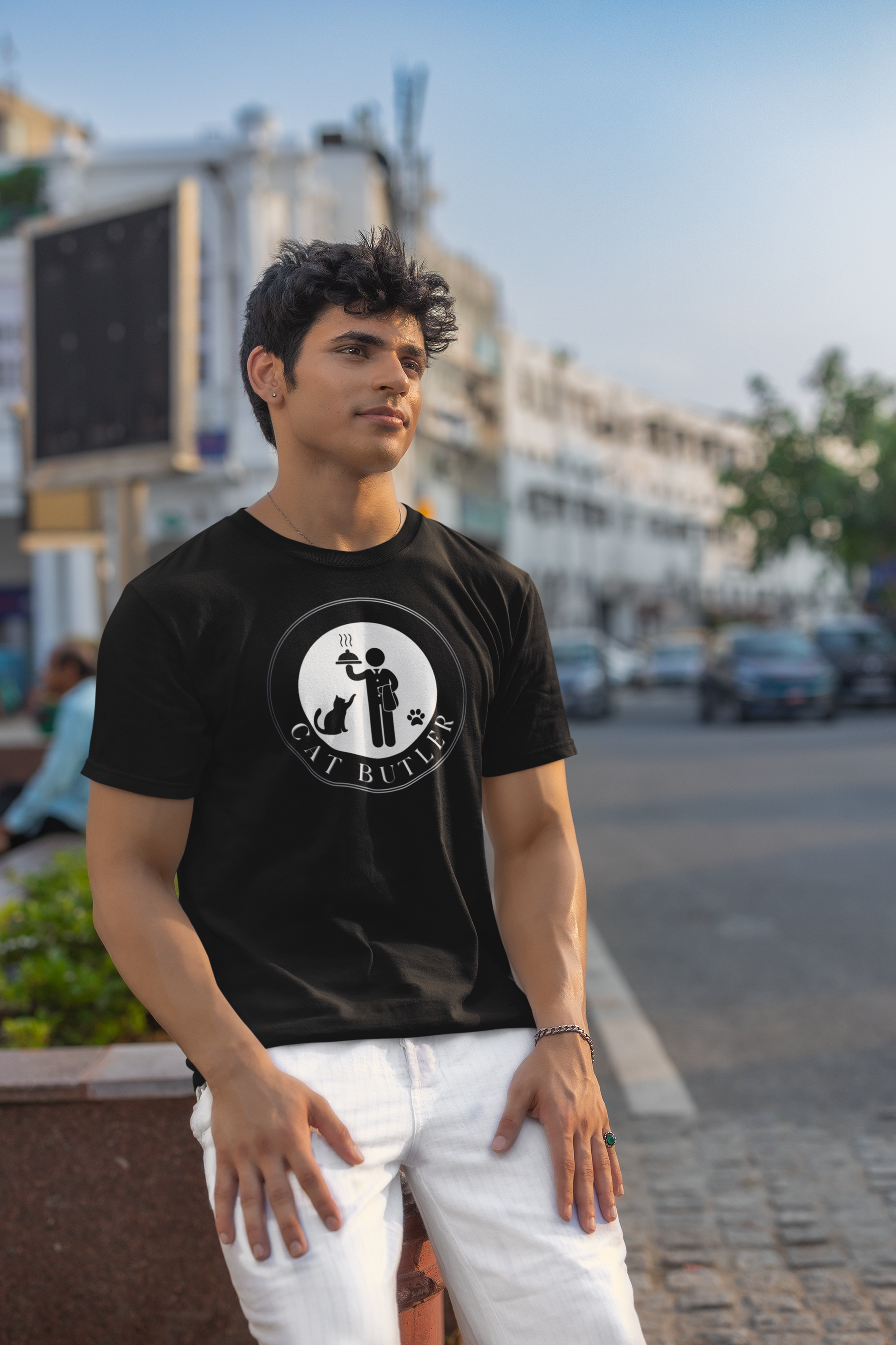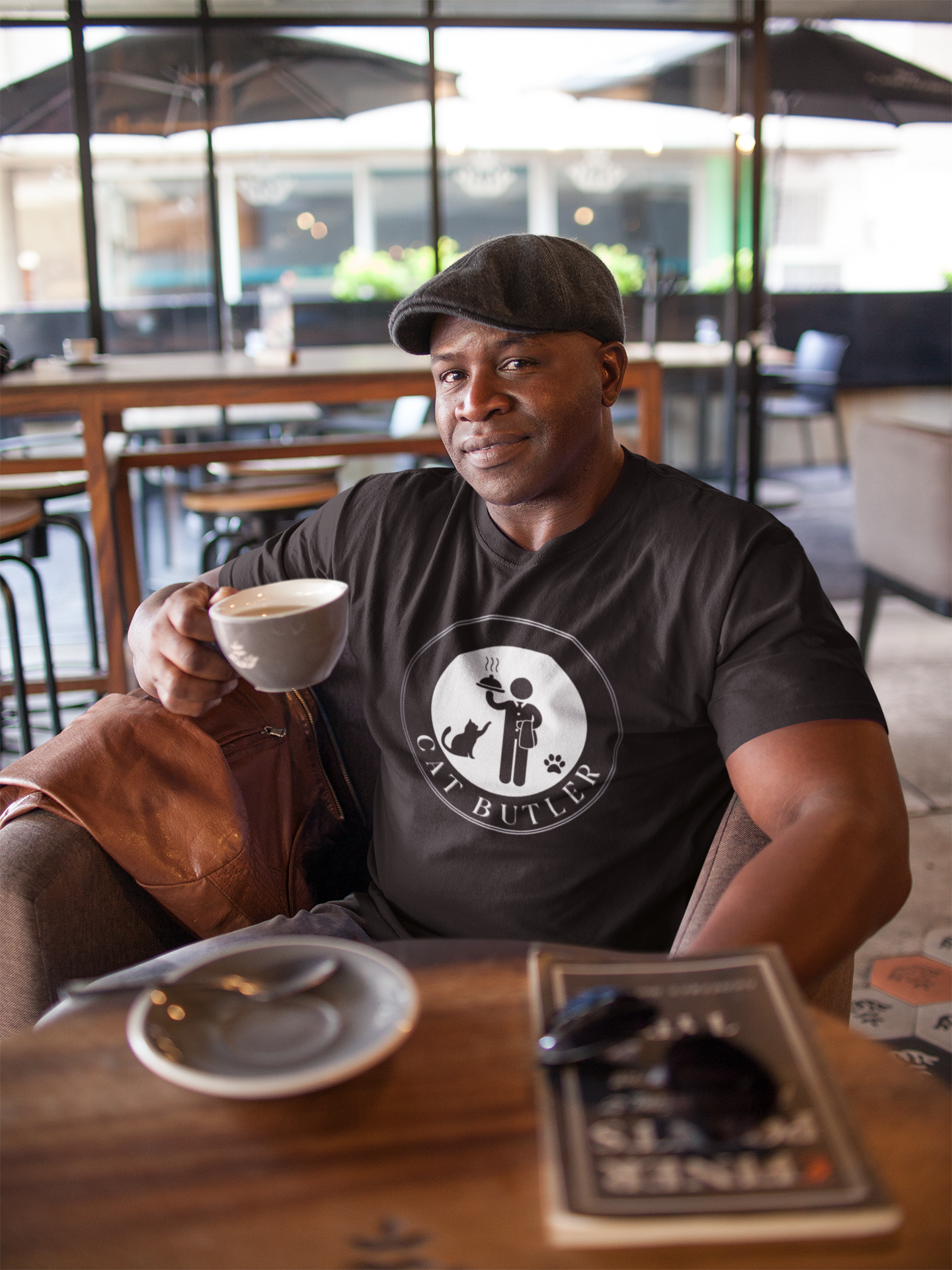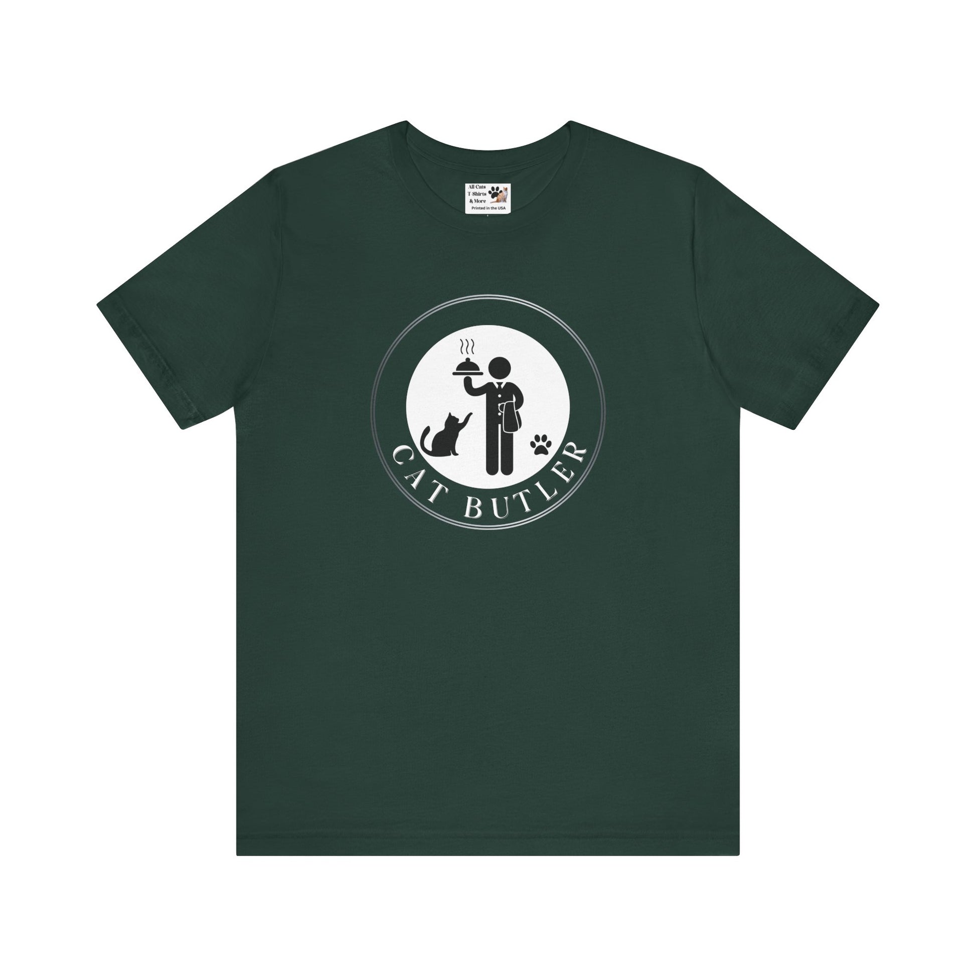 "Cat Butler" T-Shirt - With Black & White Graphic - (Unisex Jersey Short Sleeve Tee - Perfect Gift for Cat Lovers!)