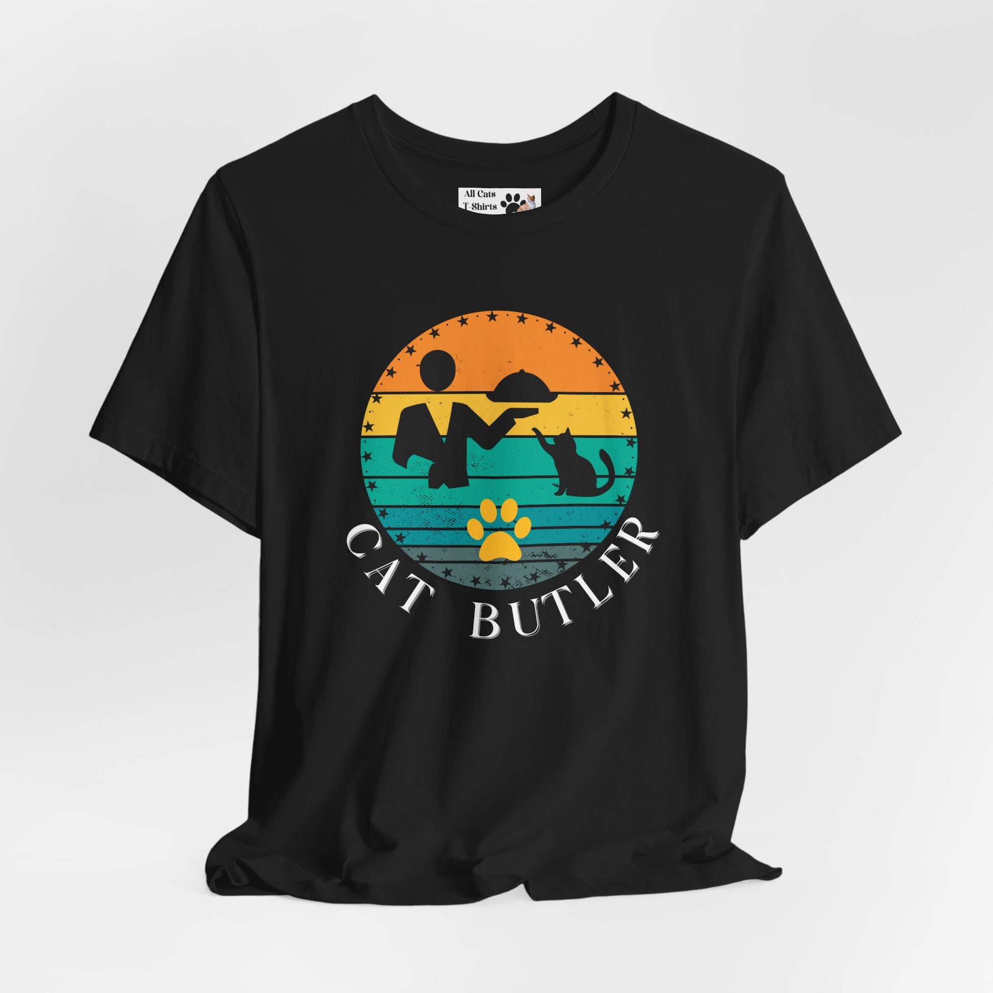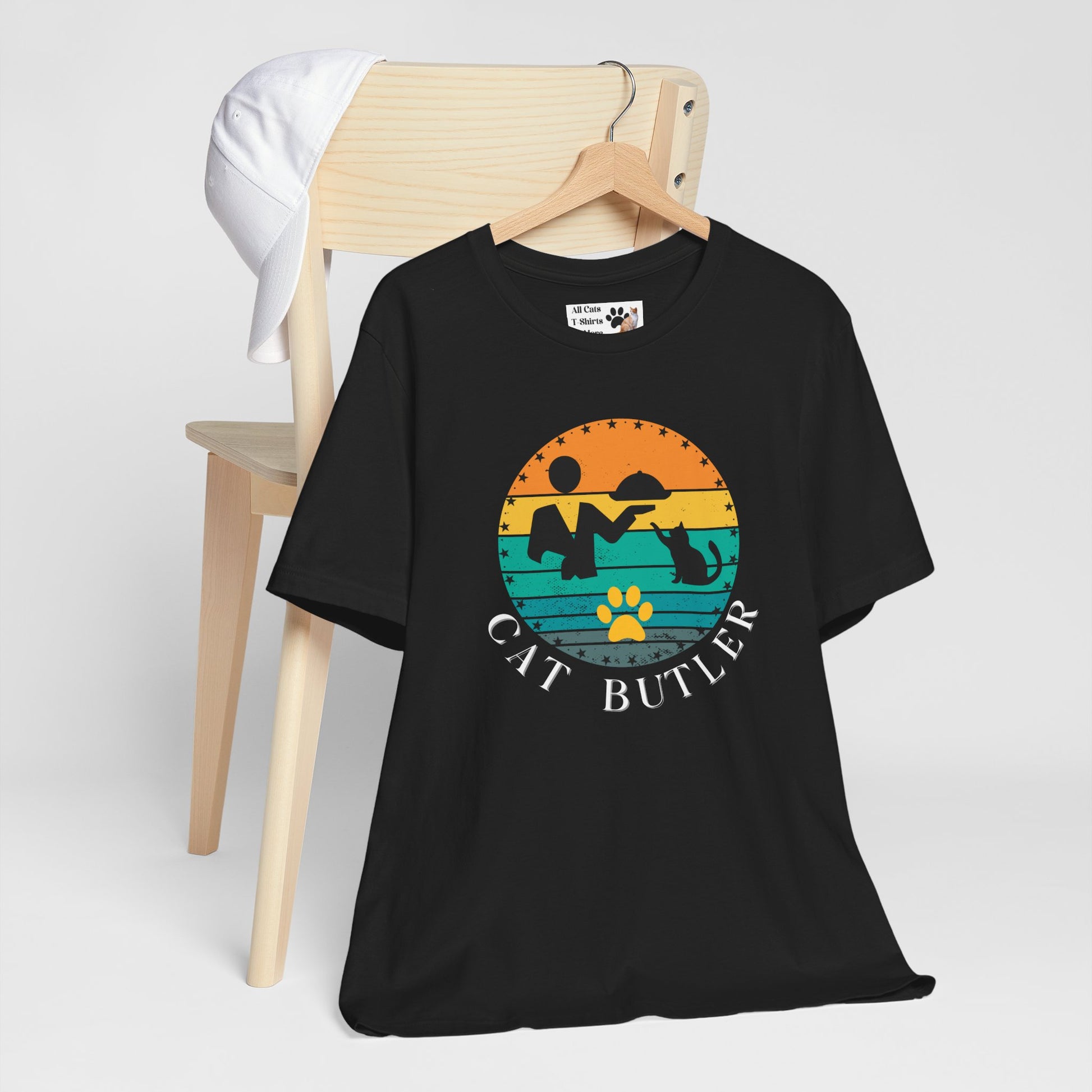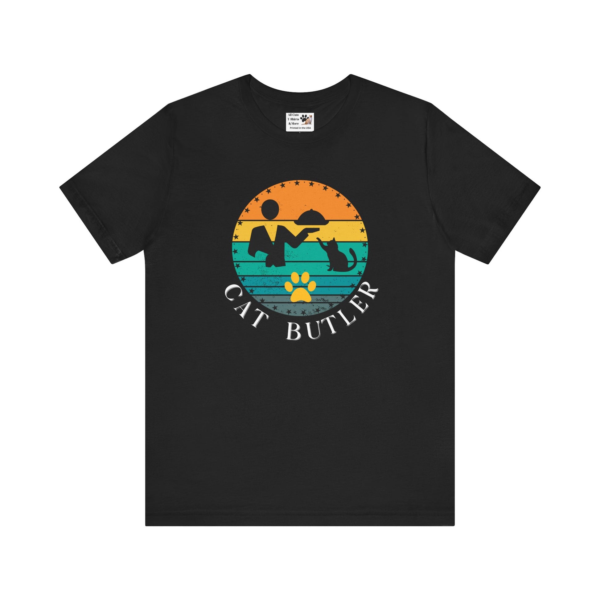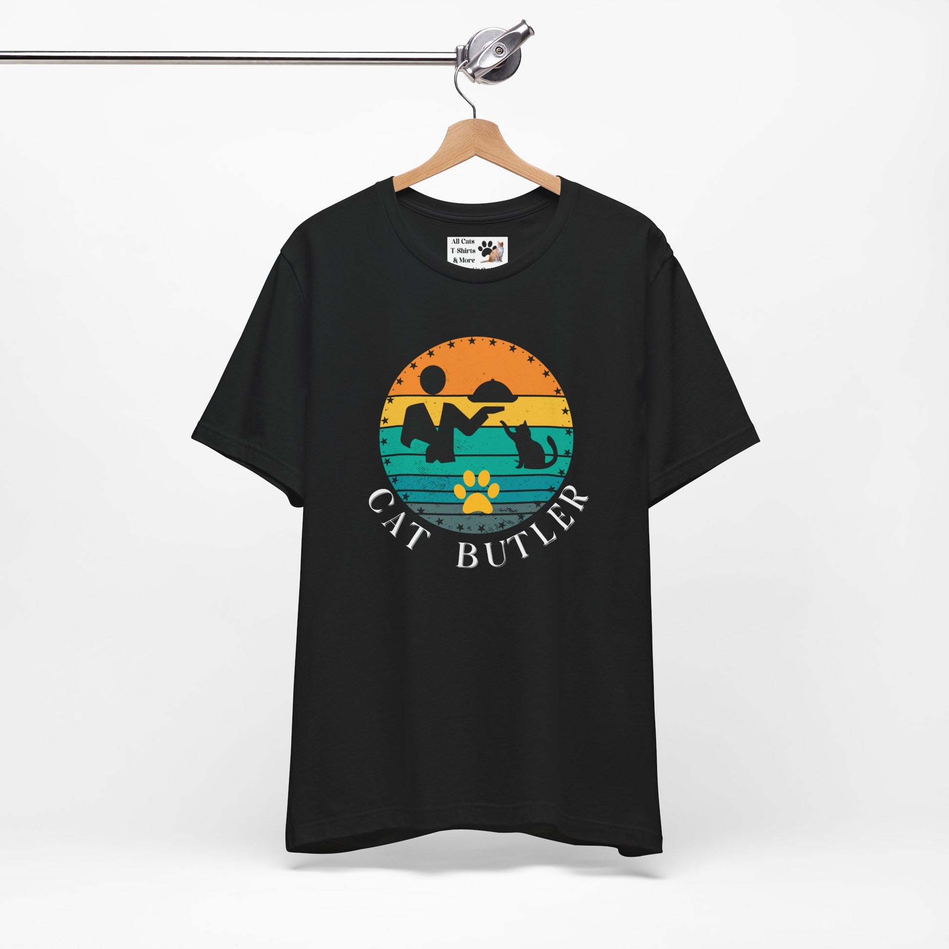 "Cat Butler" T-Shirt - With Vintage Sunset Style Graphic - (Unisex Jersey Short Sleeve Tee - Perfect Gift for Cat Lovers!)