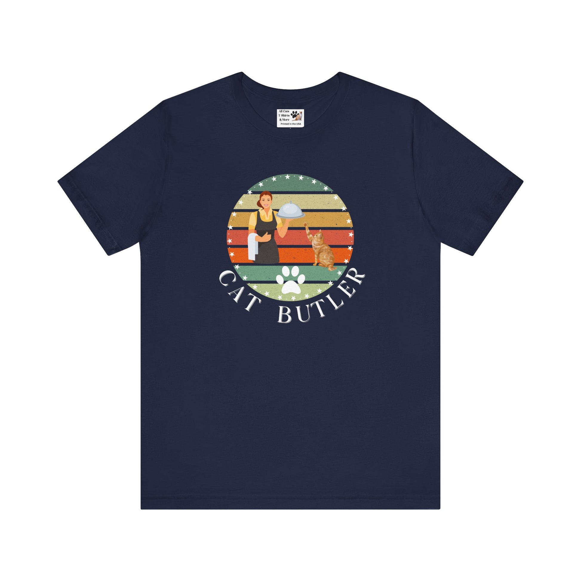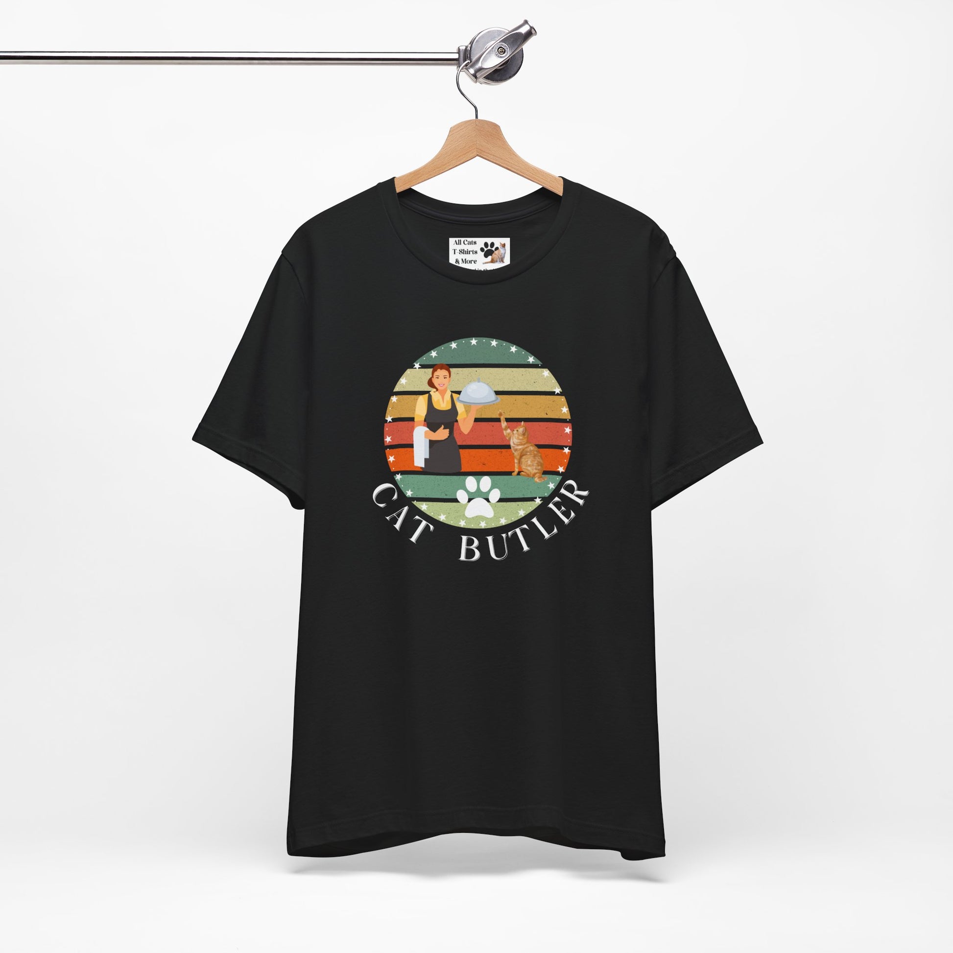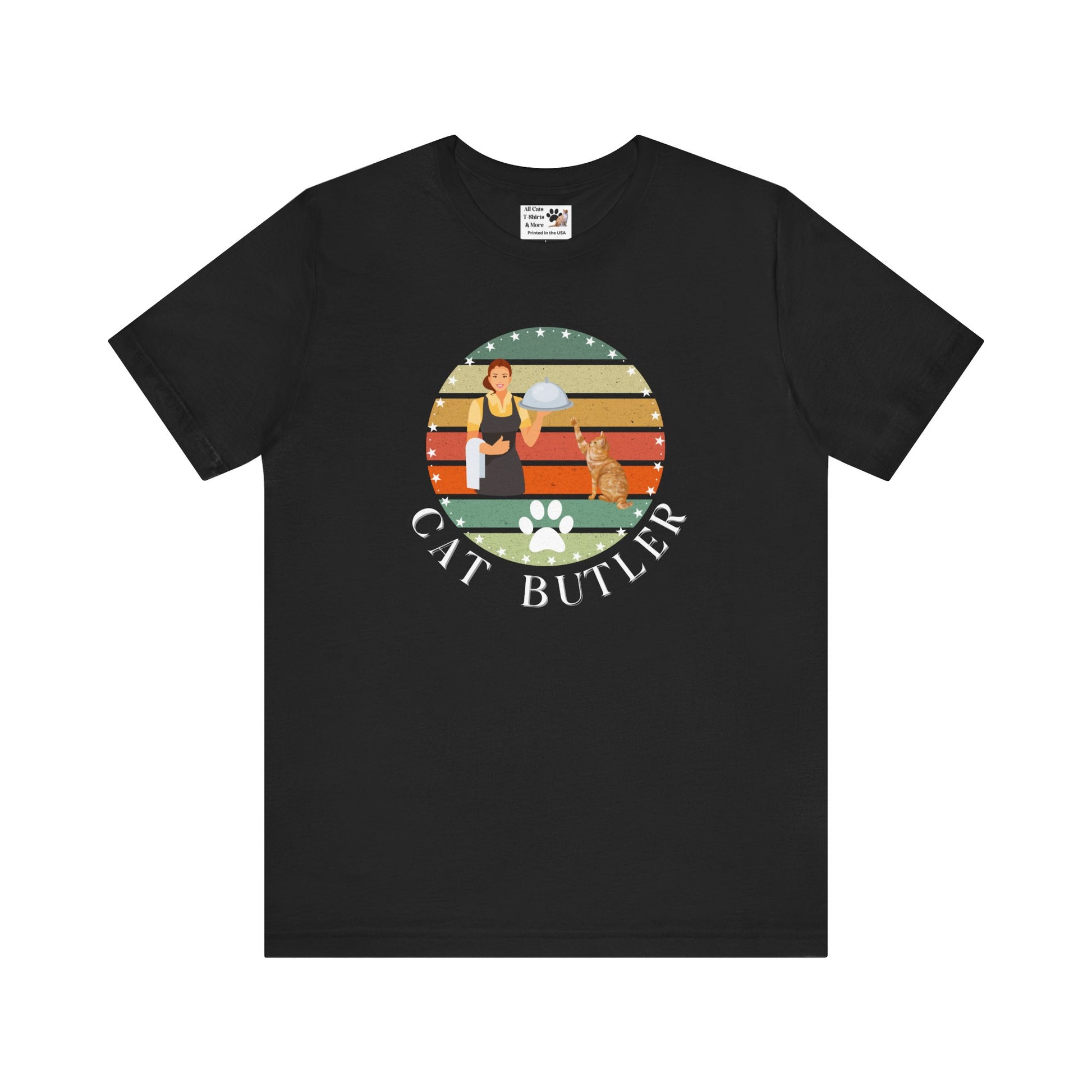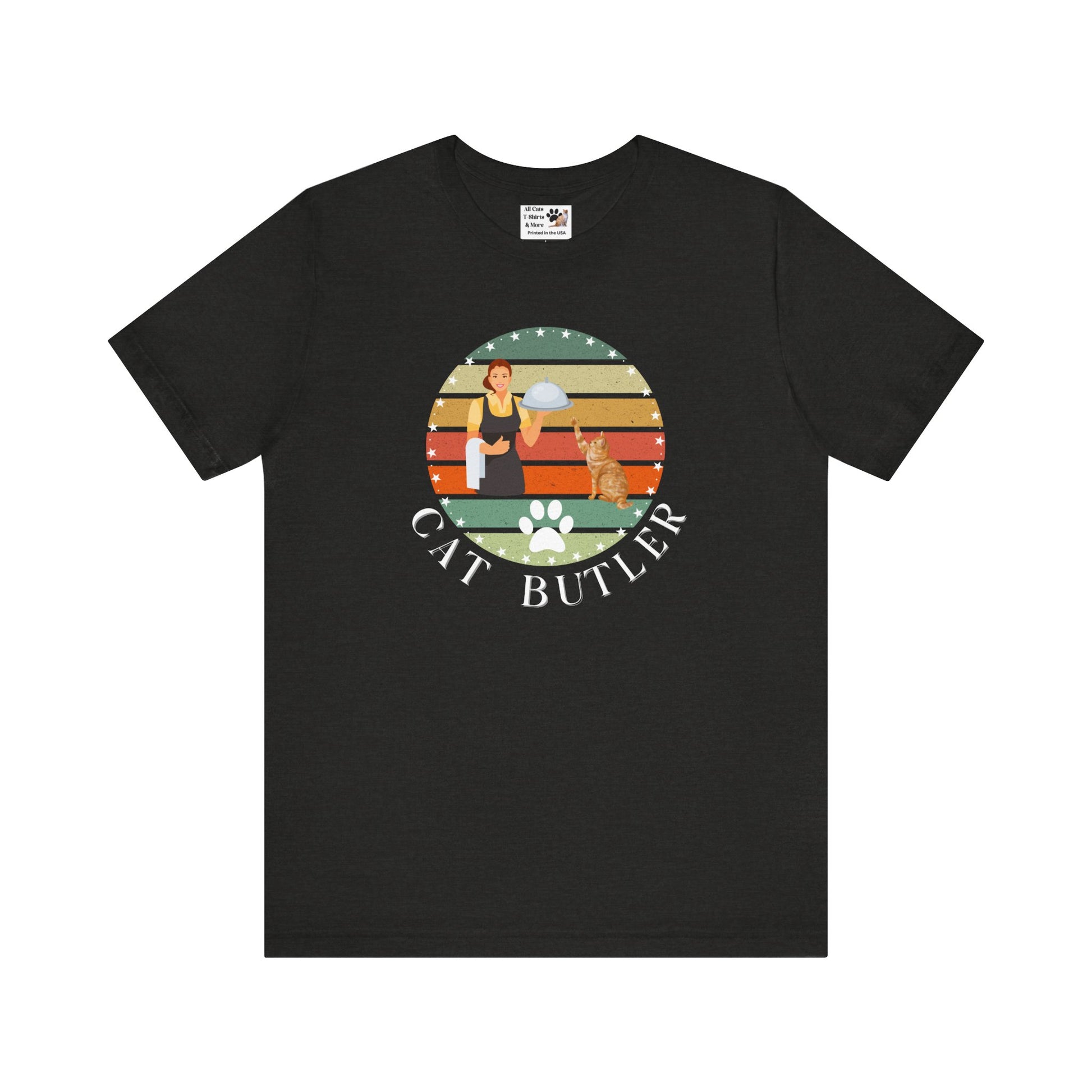 "Cat Butler" T-Shirt - Vintage Sunset Style Graphic - (Unisex Jersey Short Sleeve Tee - Perfect Gift for Cat Lovers!)