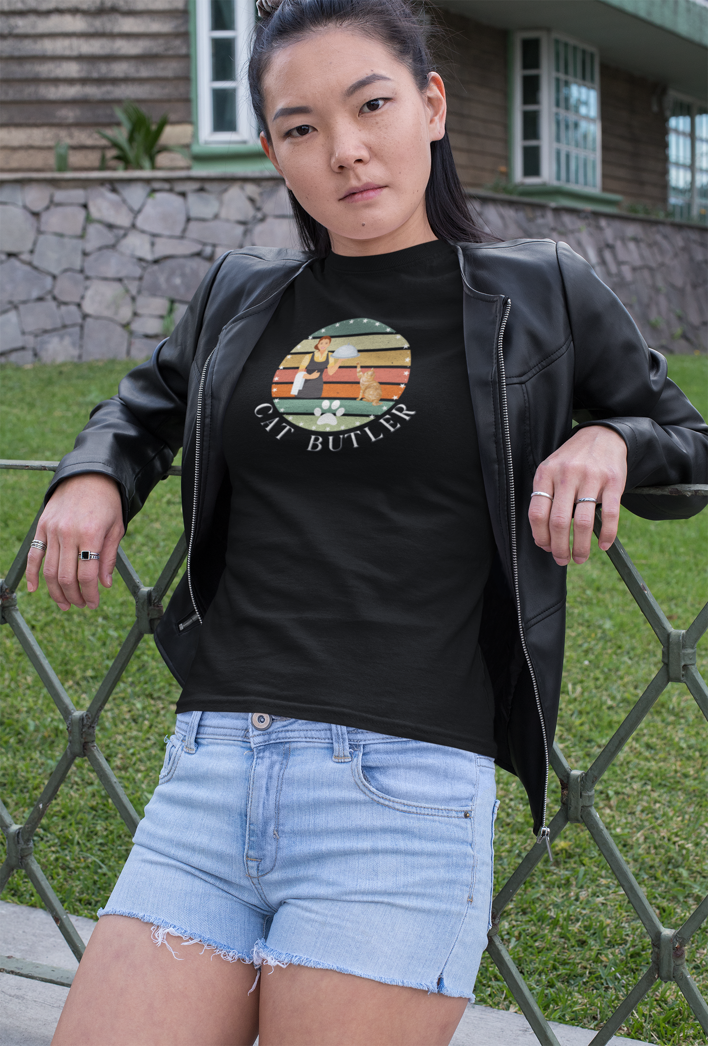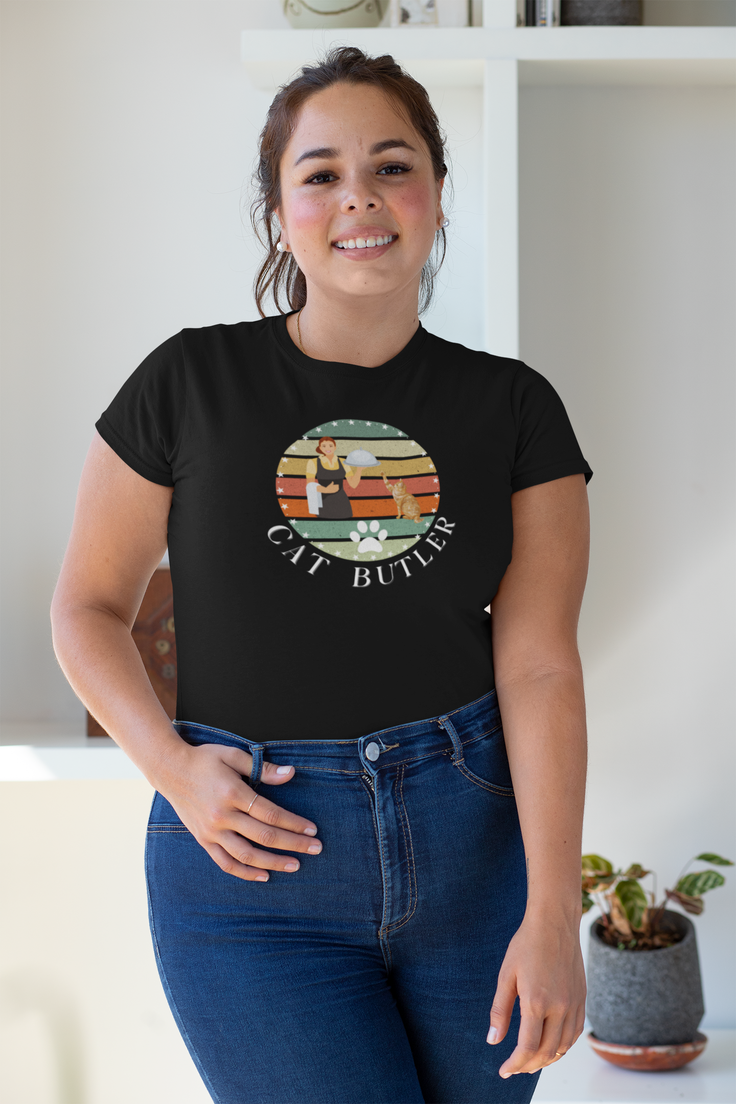 A cute and playful T-Shirt design for cat owners who feel like their cats' personal butler. Always happily attending to their kitty, this T-Shirt gives off a cozy and whimsical vibe, perfect for casual wear. Ideal for cat lovers and pet enthusiasts, this T-Shirt is relevant for simply showcasing your love for your furry friend.