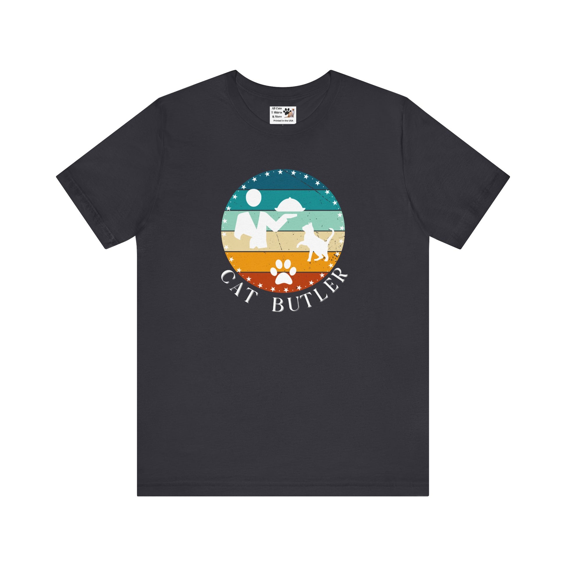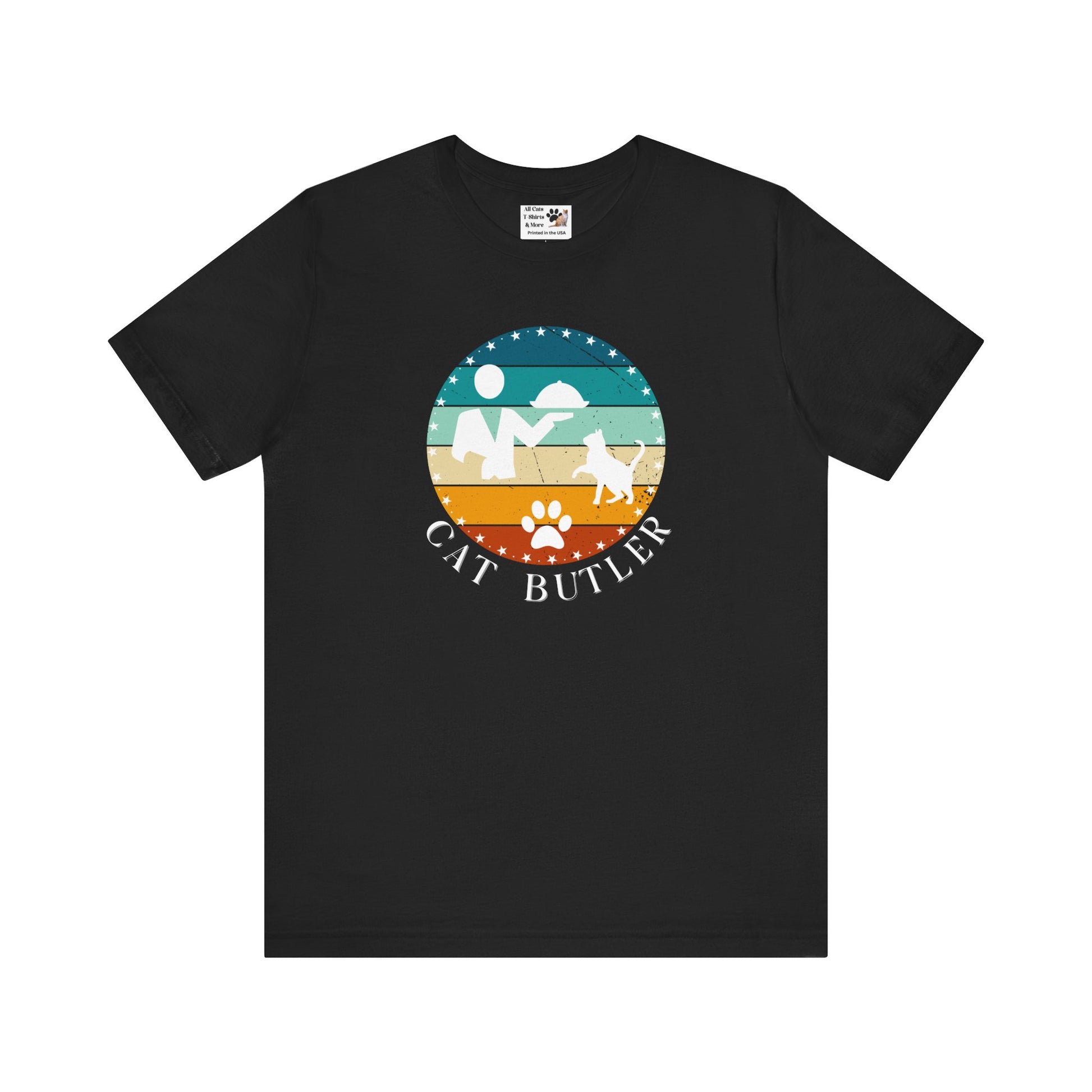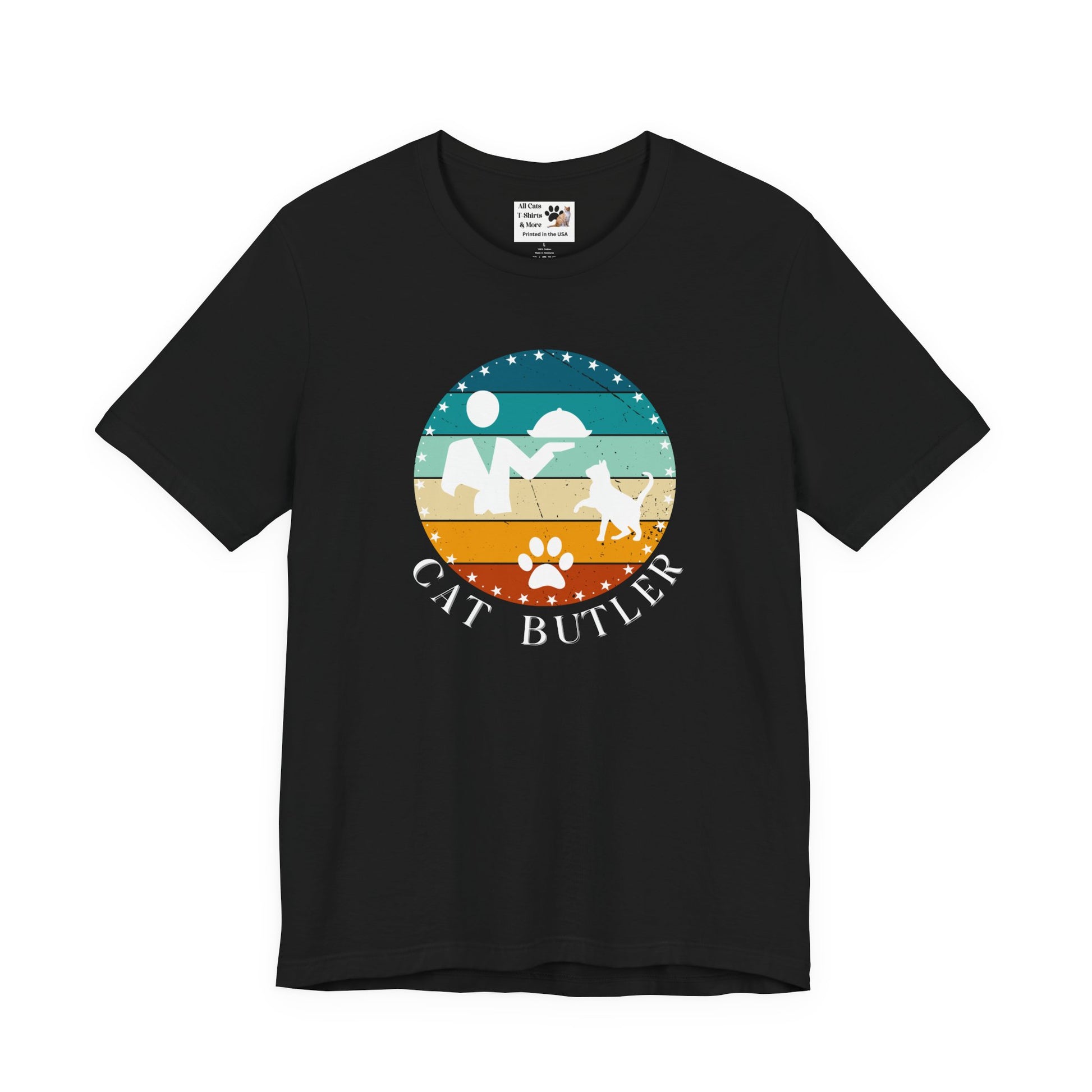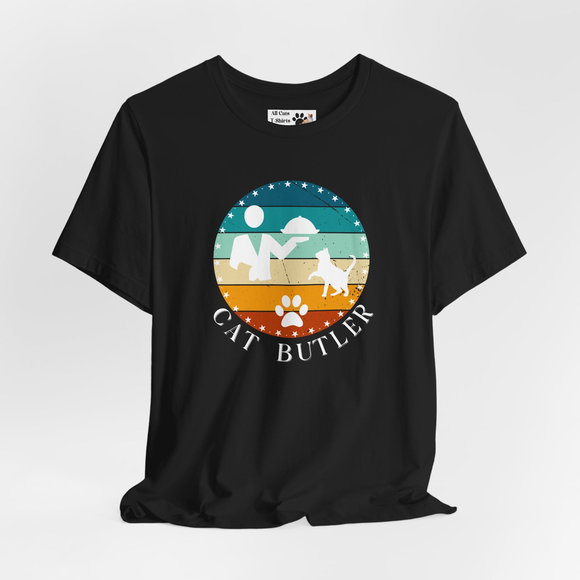 "Cat Butler" T-Shirt - Vintage Sunset Style Graphic - (Unisex Jersey Short Sleeve Tee - Perfect Gift for Cat Lovers!)