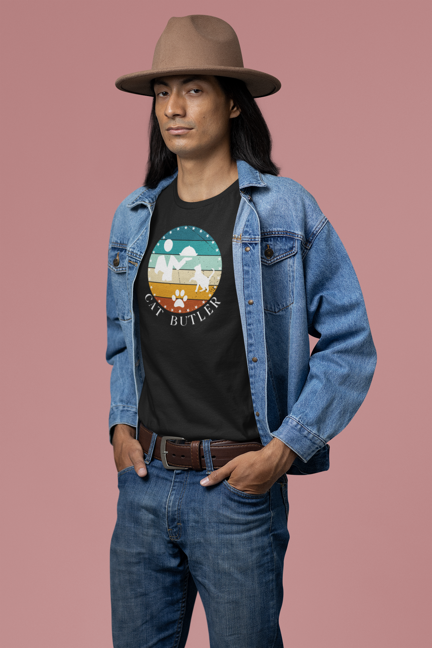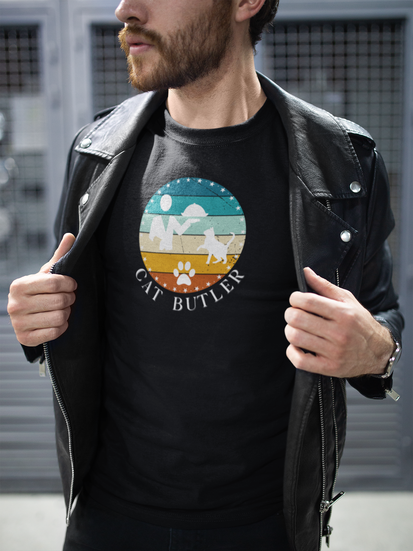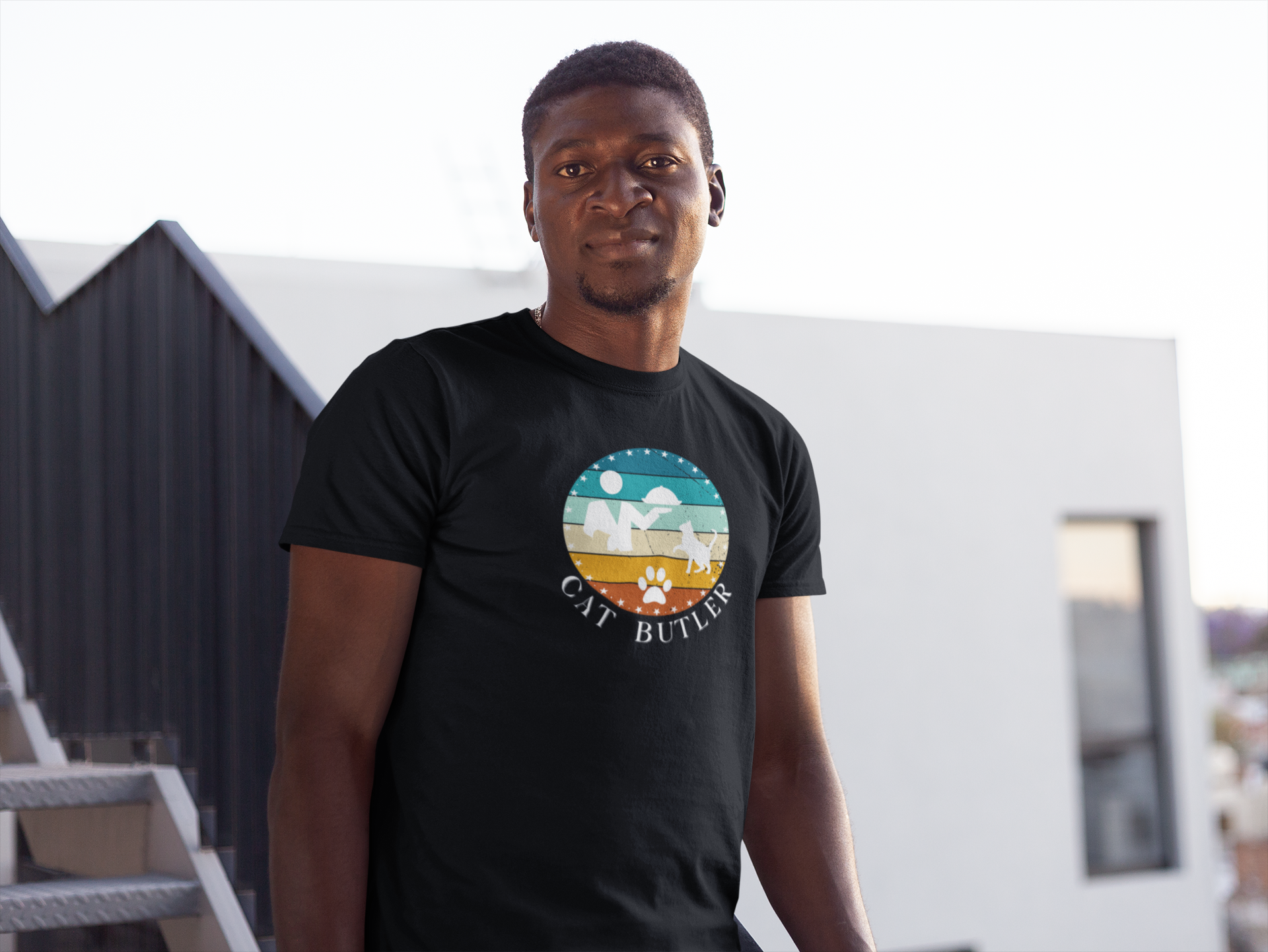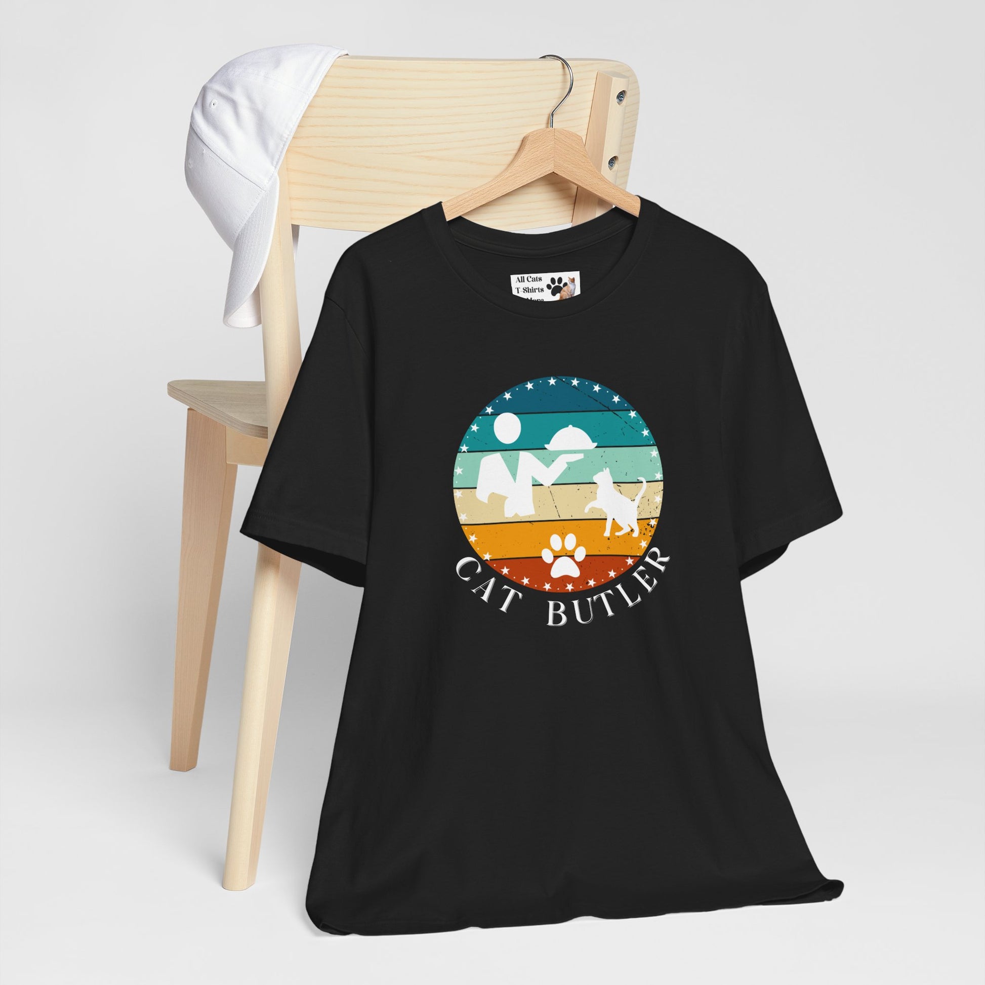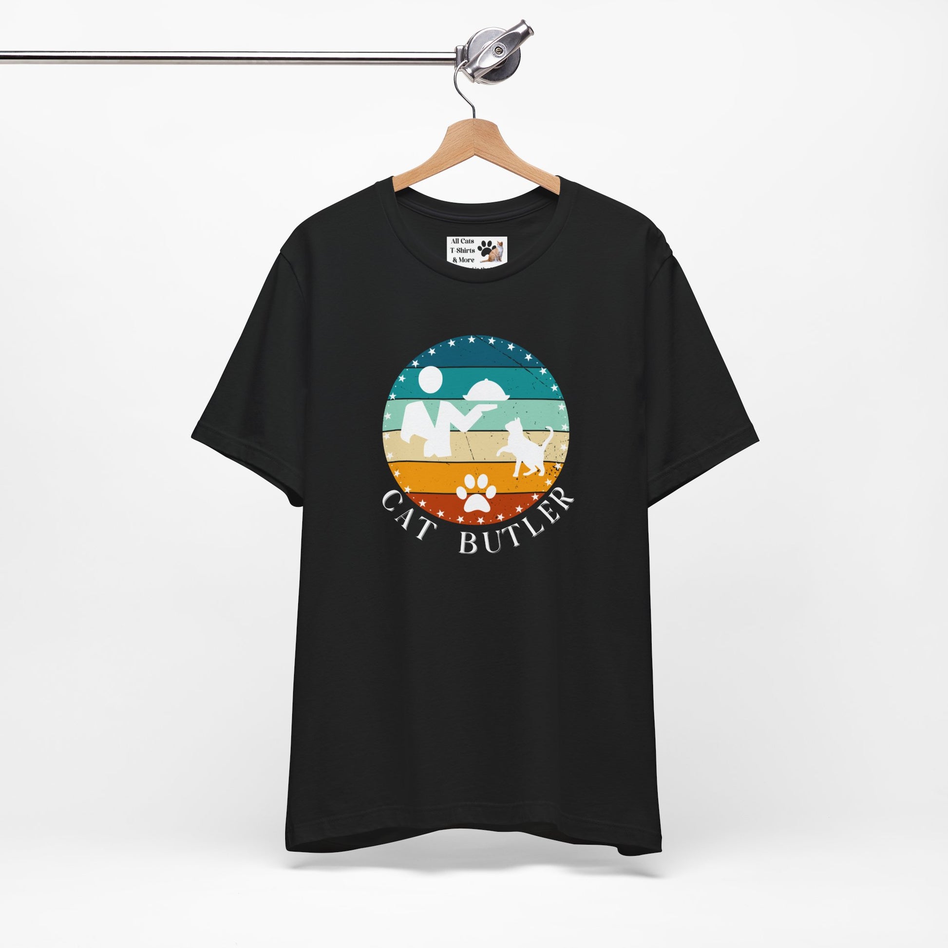 "Cat Butler" T-Shirt - Vintage Sunset Style Graphic - (Unisex Jersey Short Sleeve Tee - Perfect Gift for Cat Lovers!)