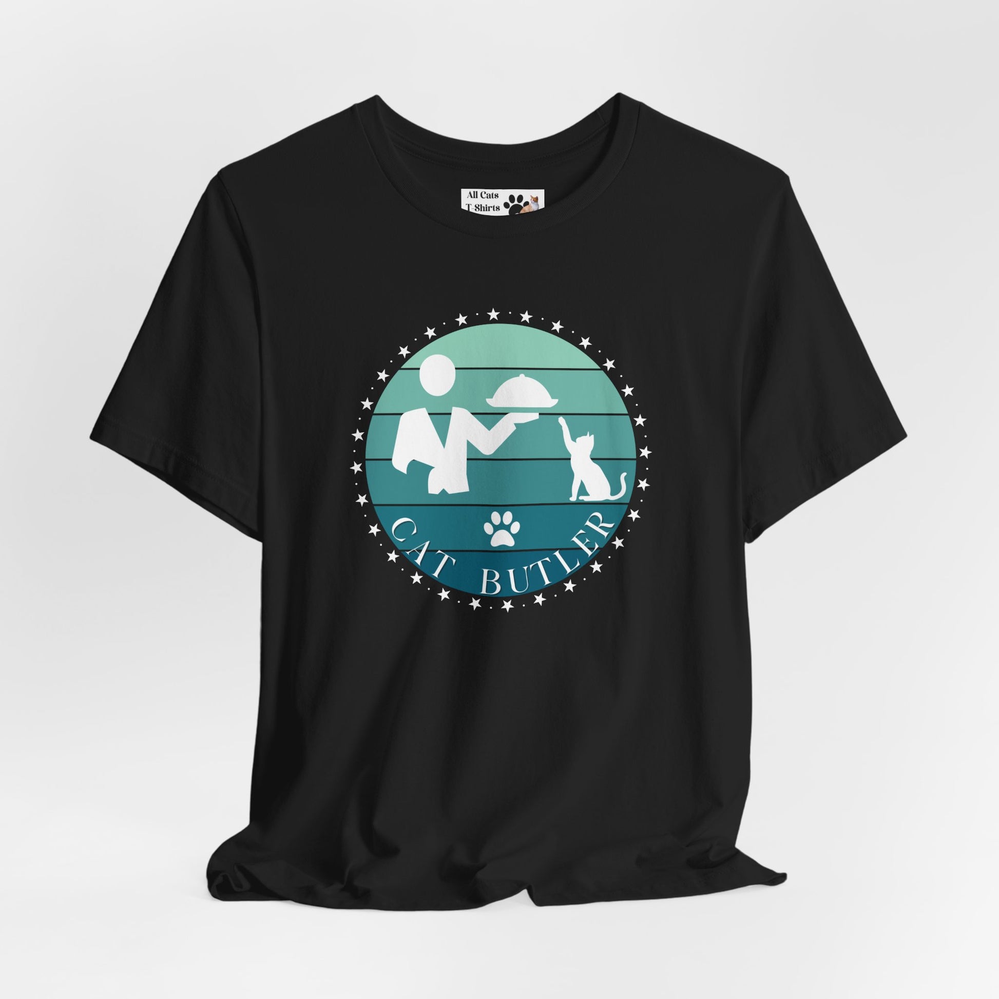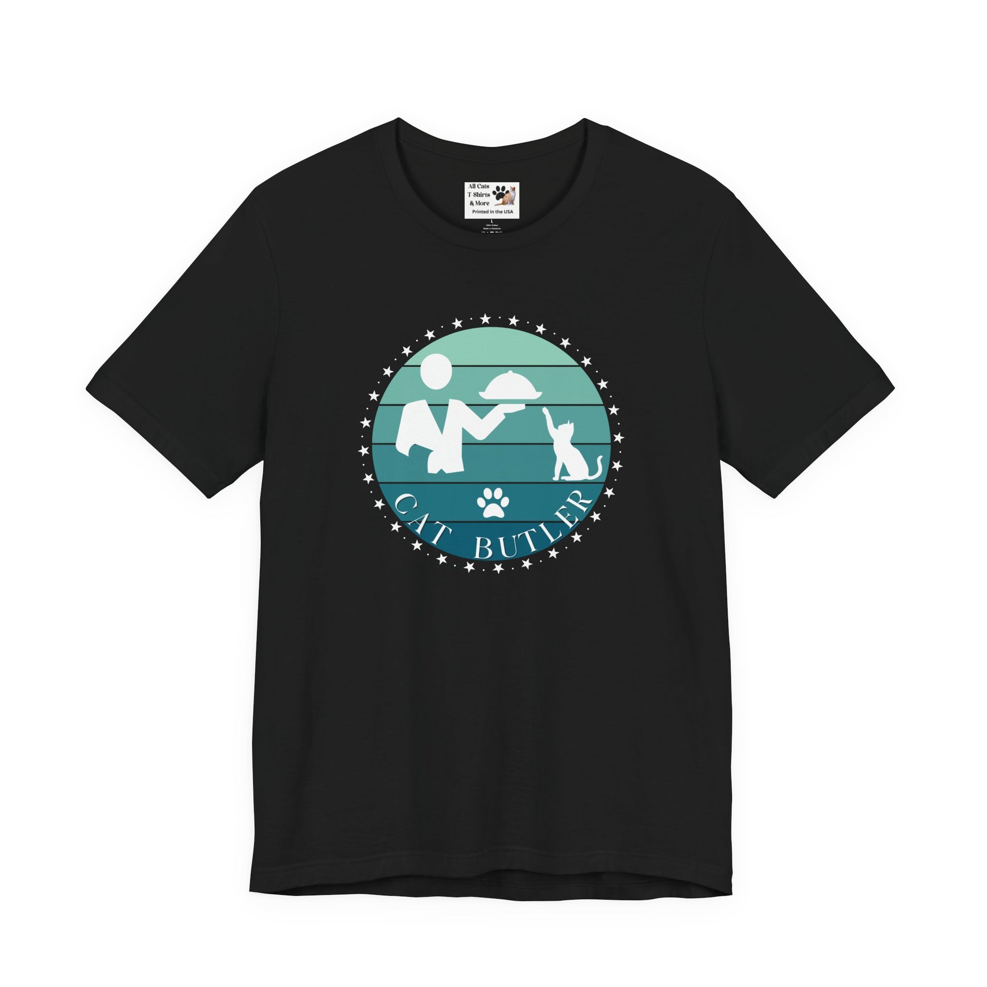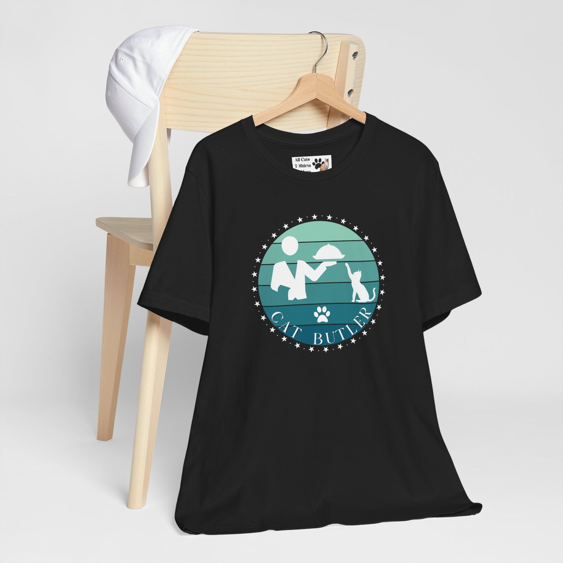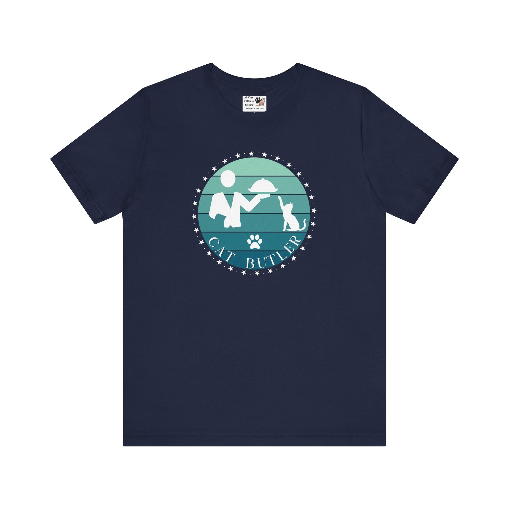 "Cat Butler" T-Shirt - Blue Vintage Sunset Style Graphic - (Unisex Jersey Short Sleeve Tee - Perfect Gift for Cat Lovers!)
