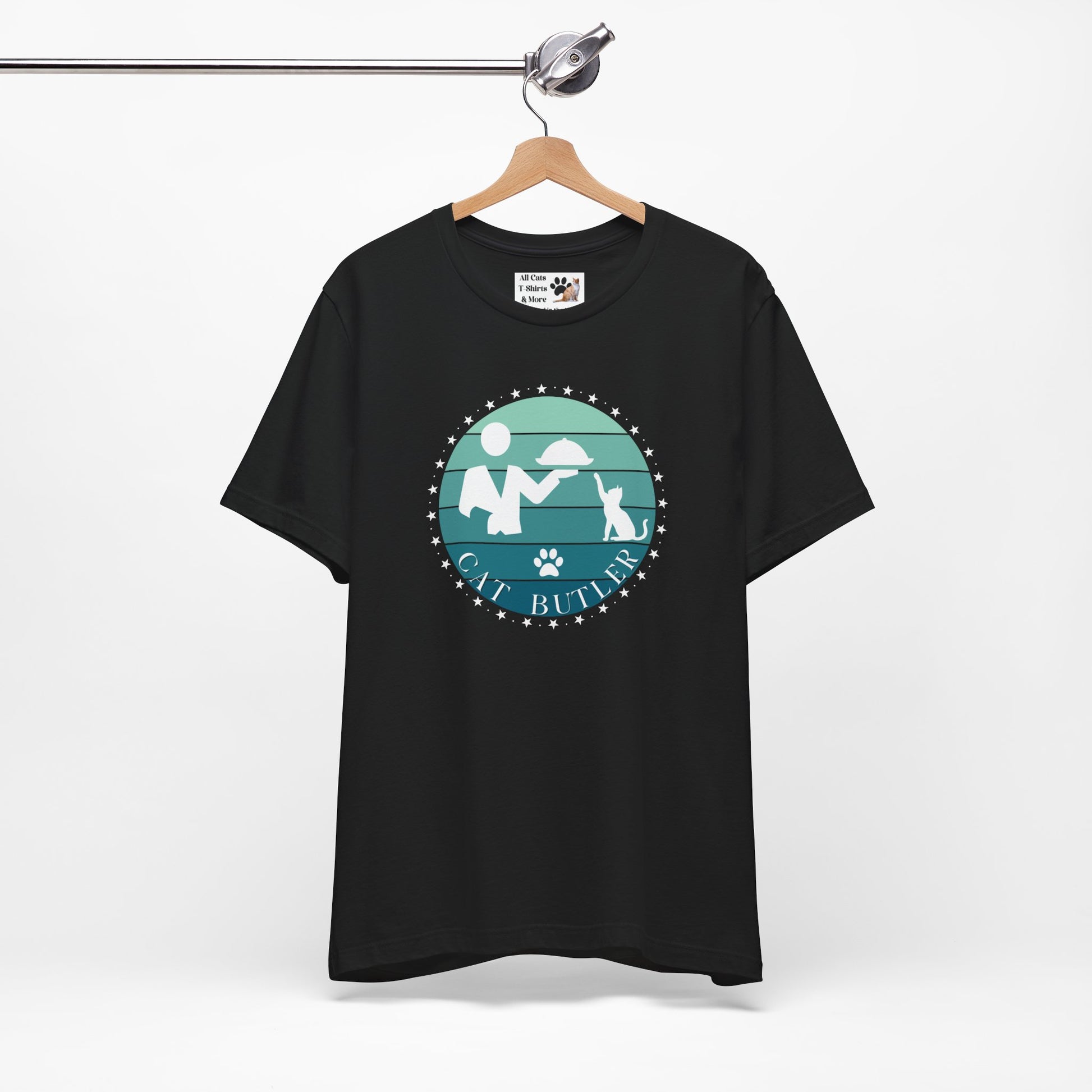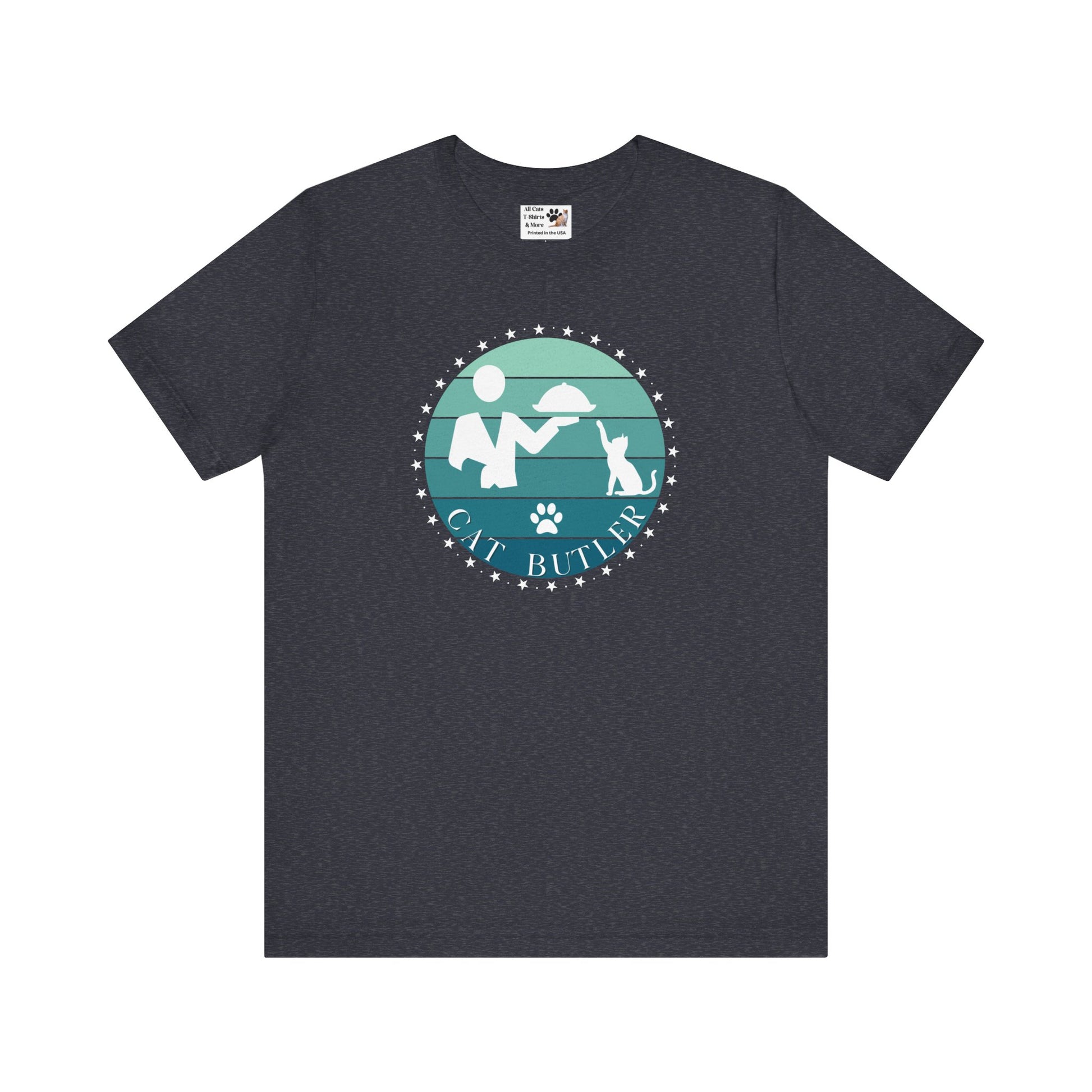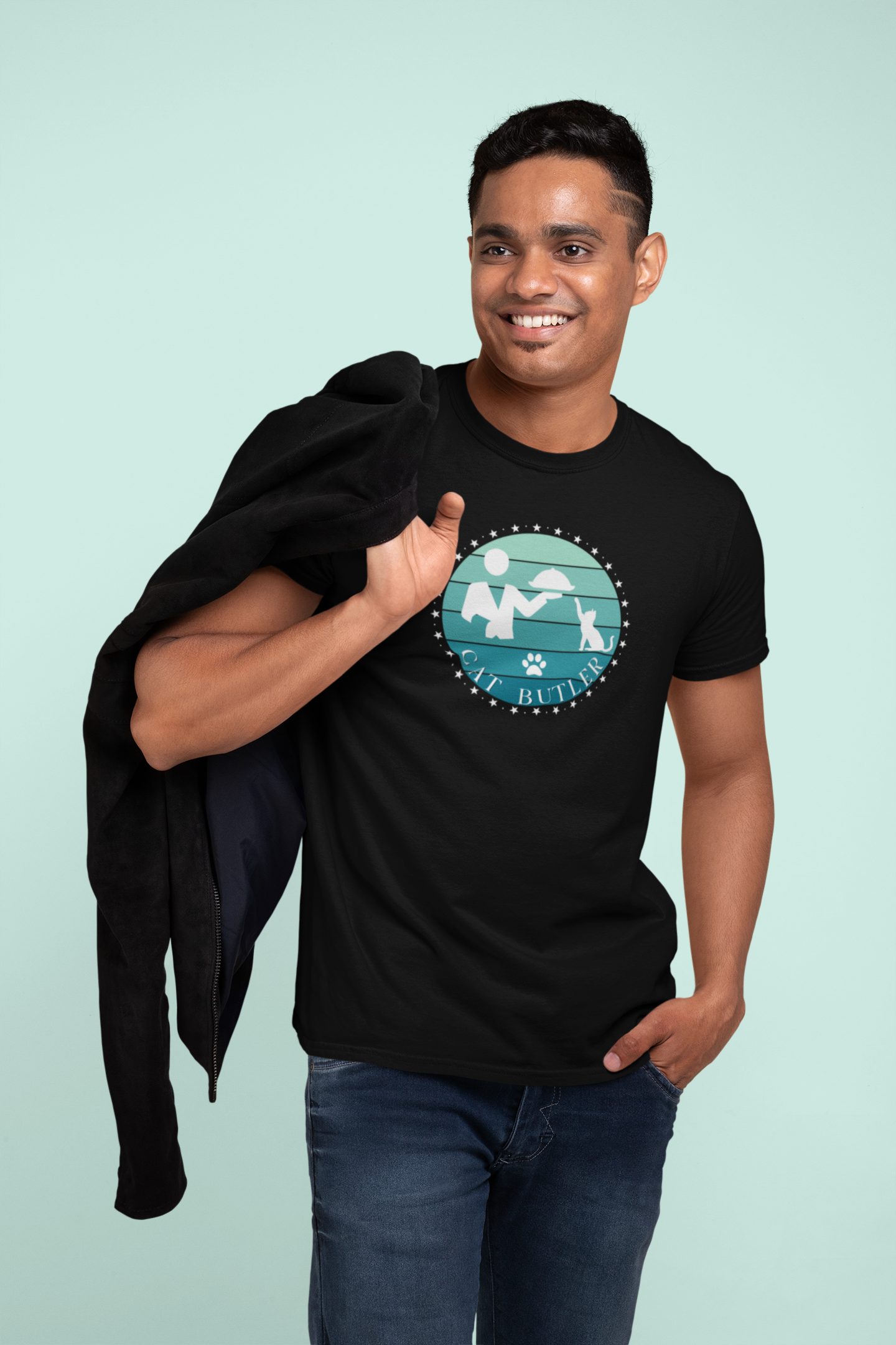 "Cat Butler" T-Shirt - Blue Vintage Sunset Style Graphic - (Unisex Jersey Short Sleeve Tee - Perfect Gift for Cat Lovers!)
