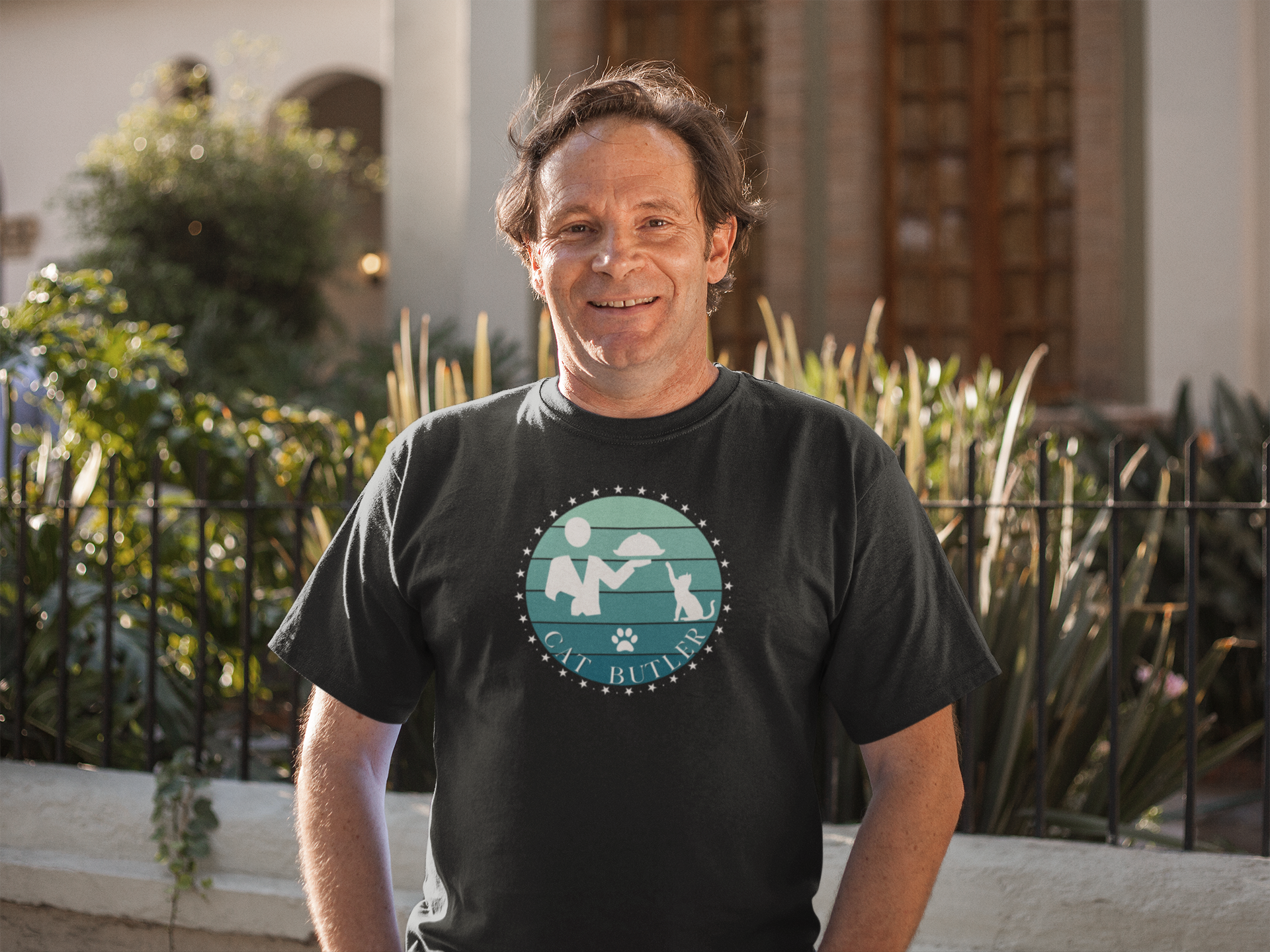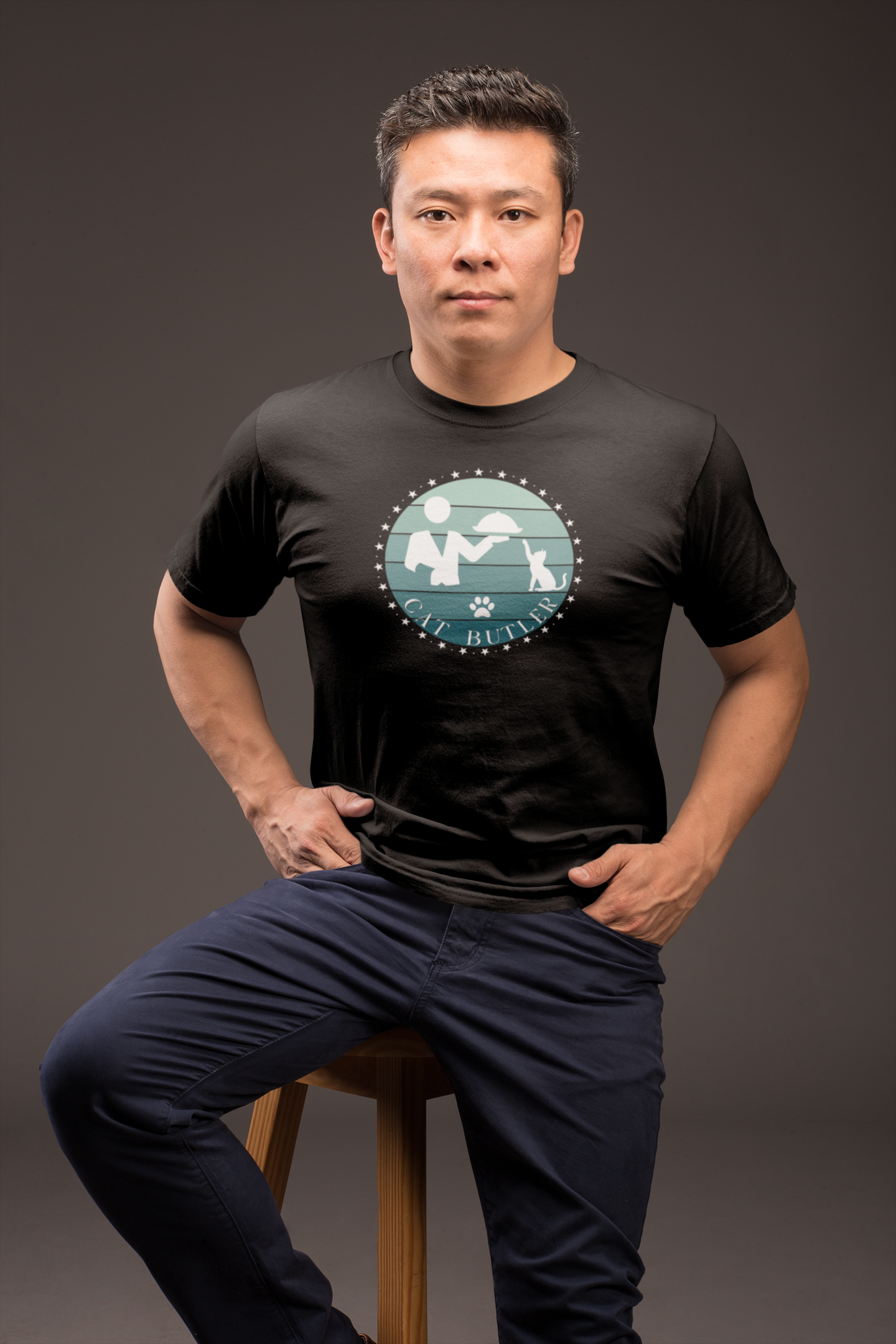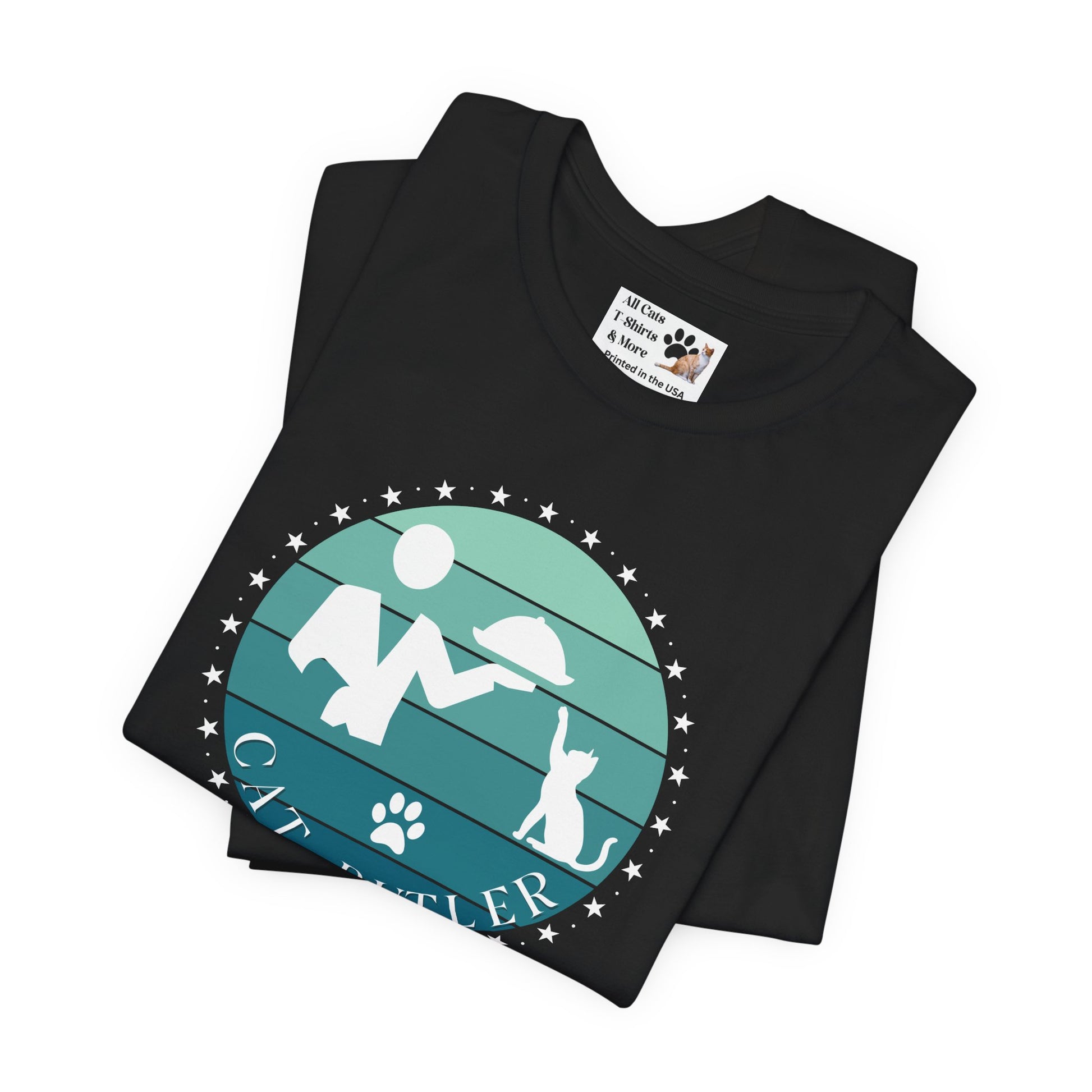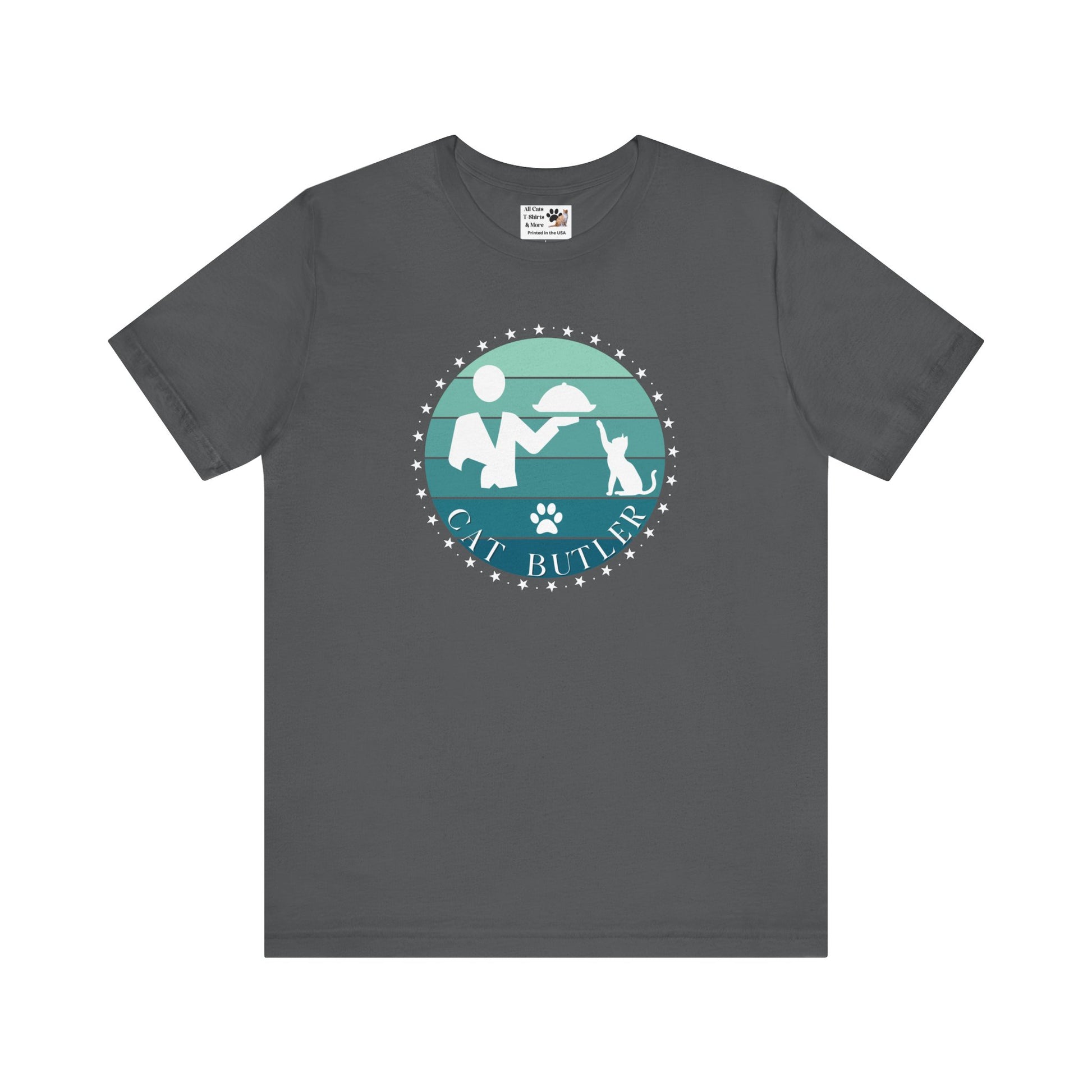 "Cat Butler" T-Shirt - Blue Vintage Sunset Style Graphic - (Unisex Jersey Short Sleeve Tee - Perfect Gift for Cat Lovers!)