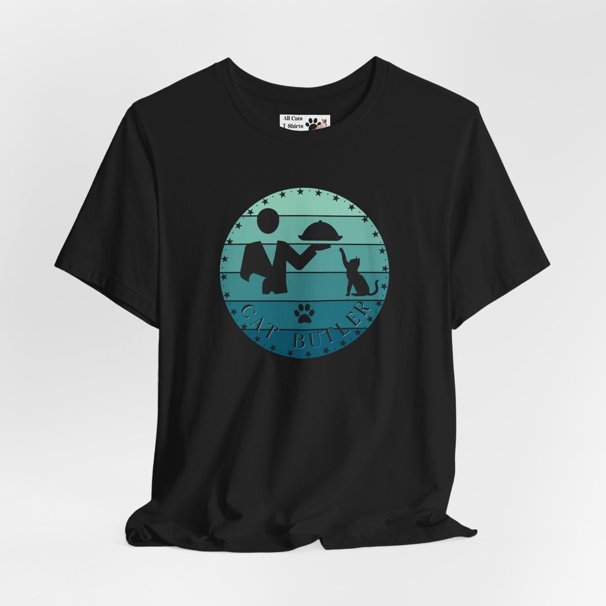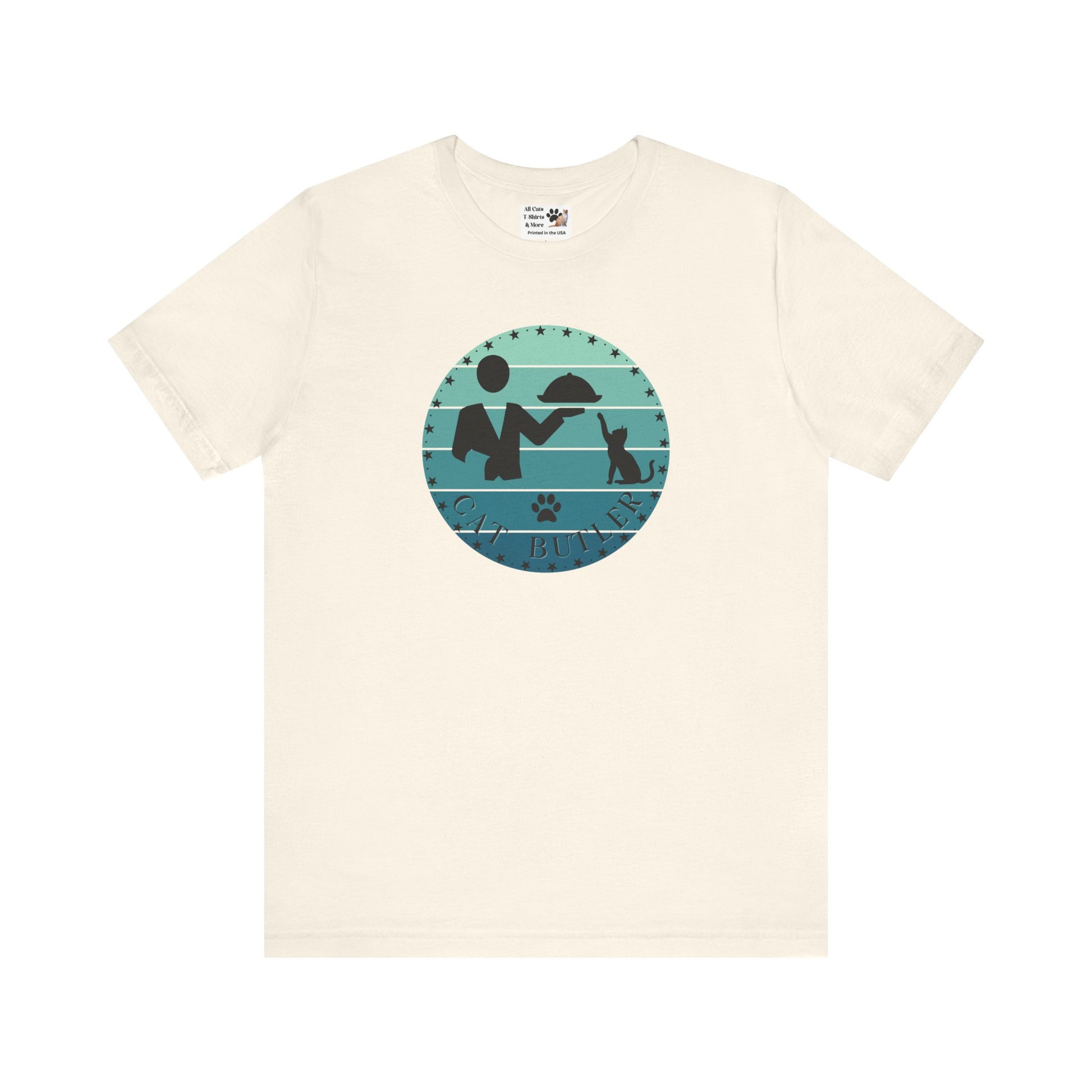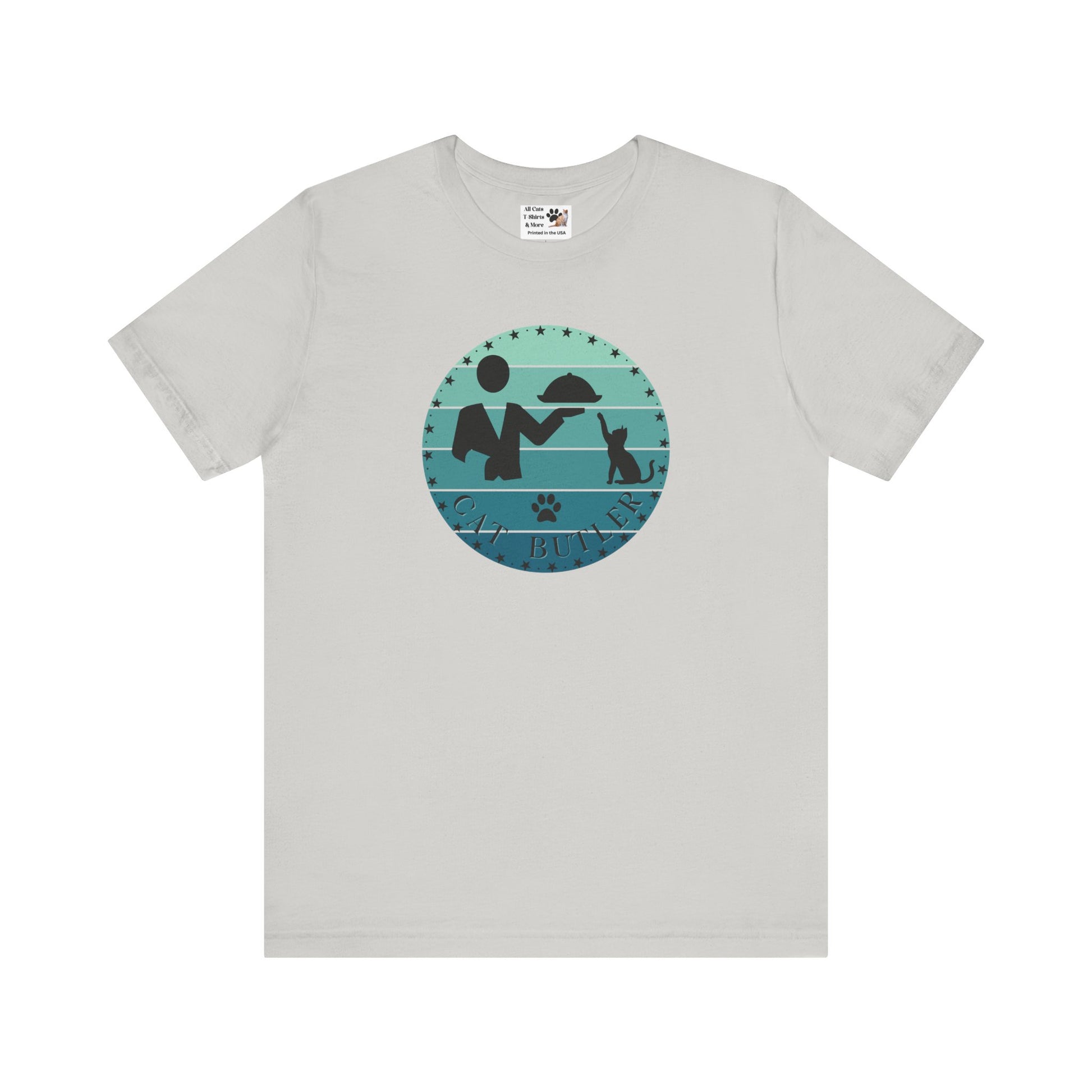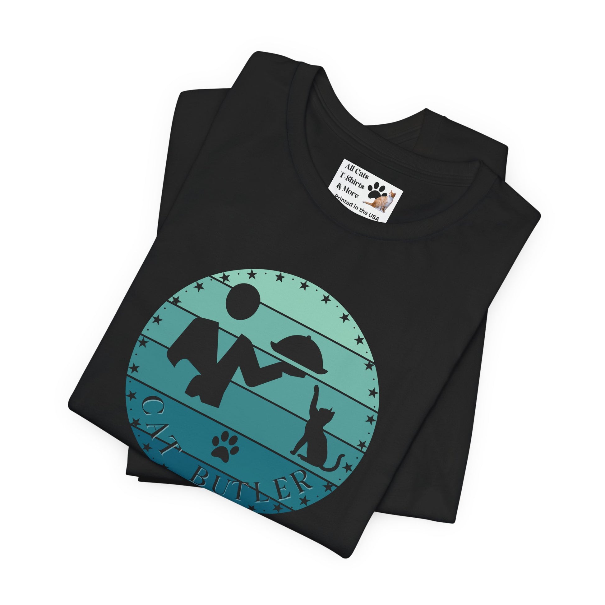 "Cat Butler" T-Shirt - Blue Vintage Sunset Style Graphic - (Unisex Jersey Short Sleeve Tee - Perfect Gift for Cat Lovers!)