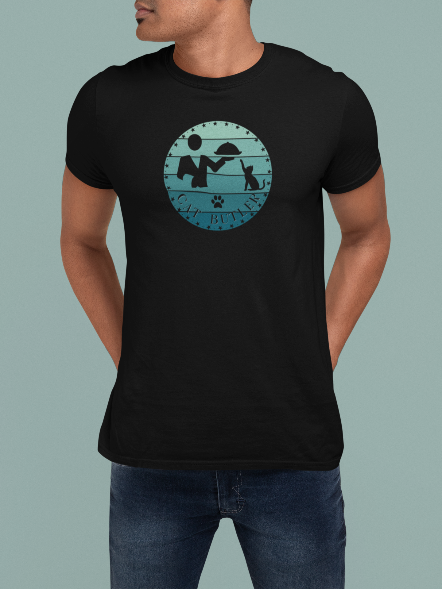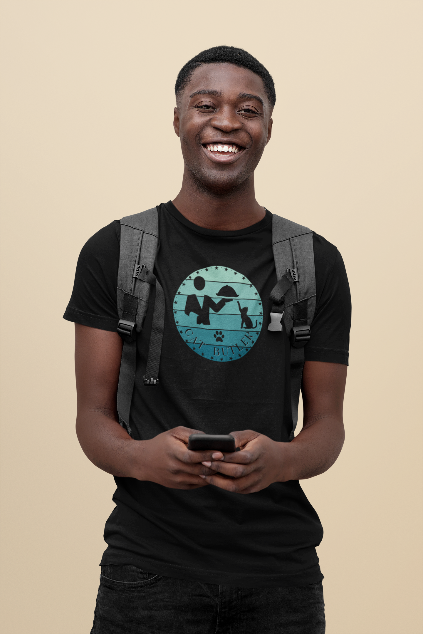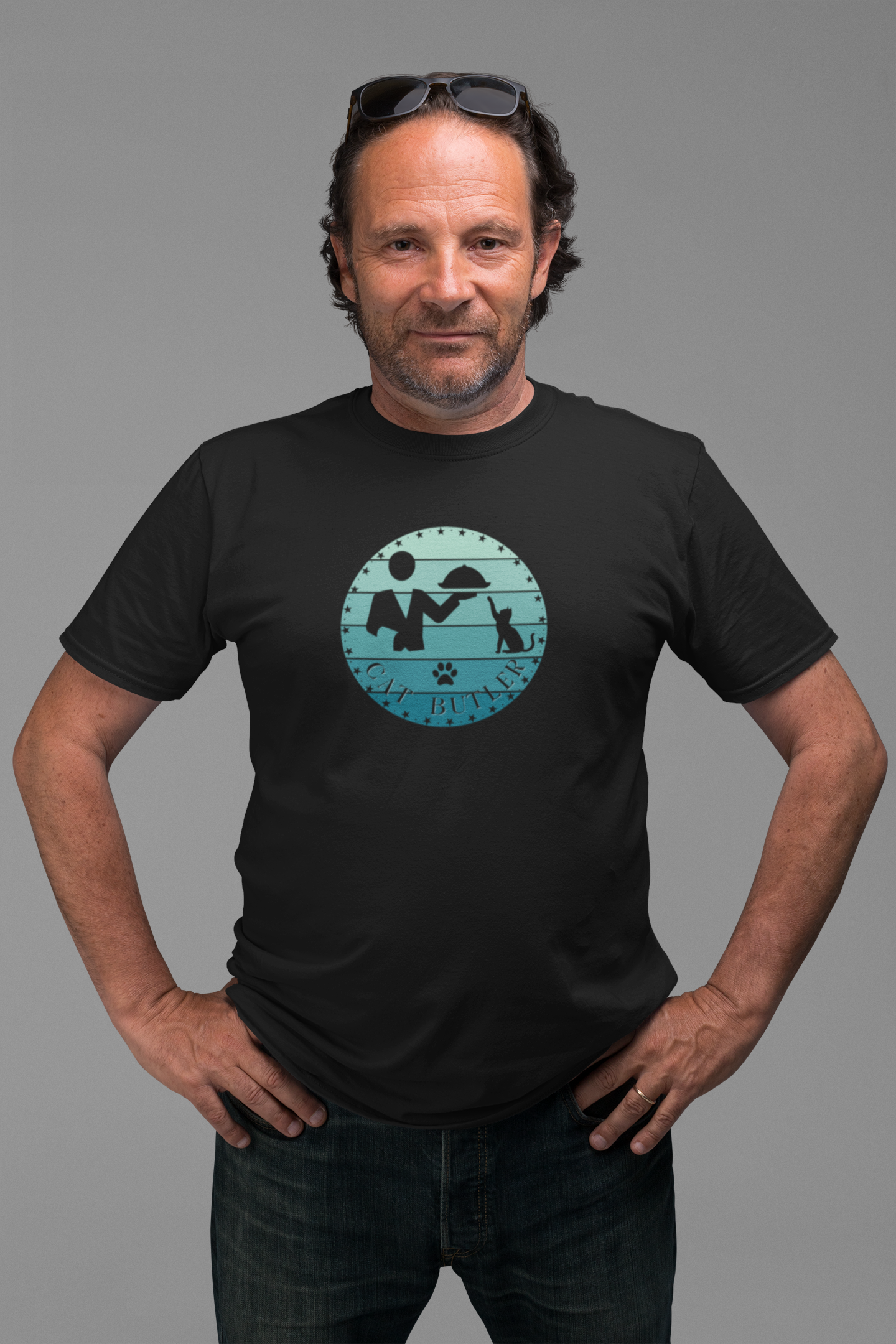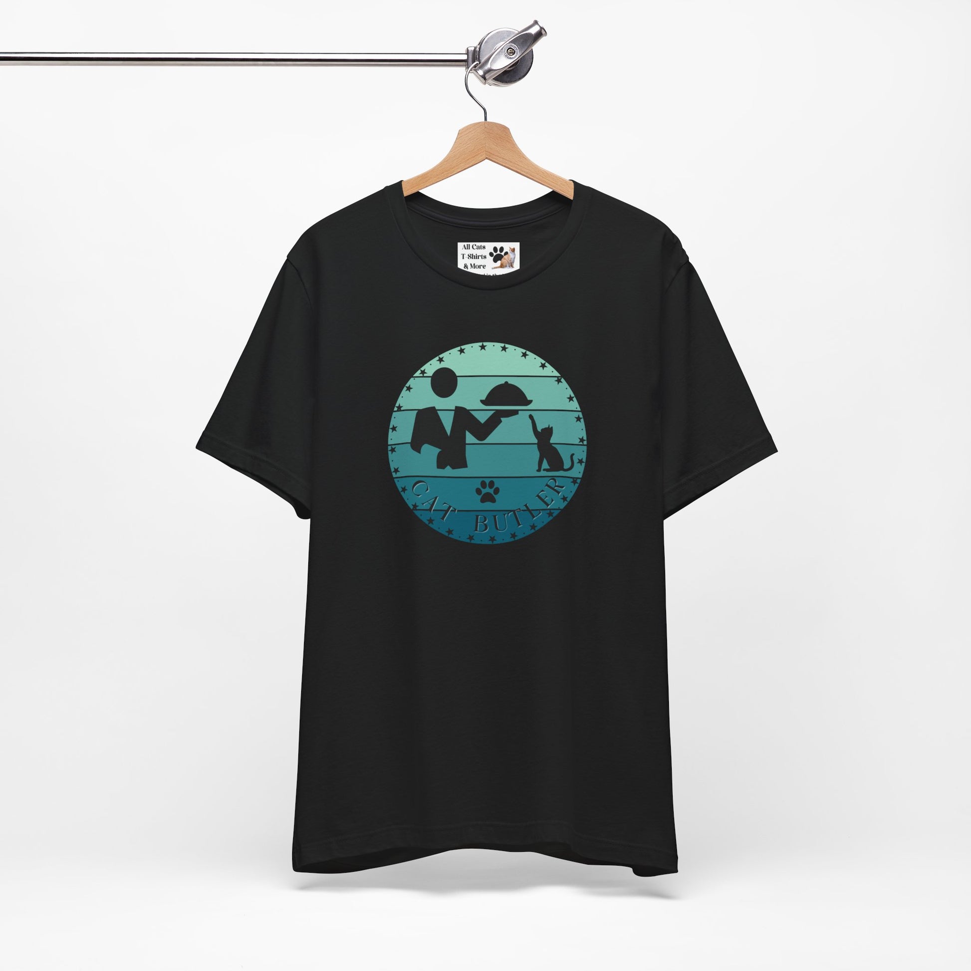 "Cat Butler" T-Shirt - Blue Vintage Sunset Style Graphic - (Unisex Jersey Short Sleeve Tee - Perfect Gift for Cat Lovers!)