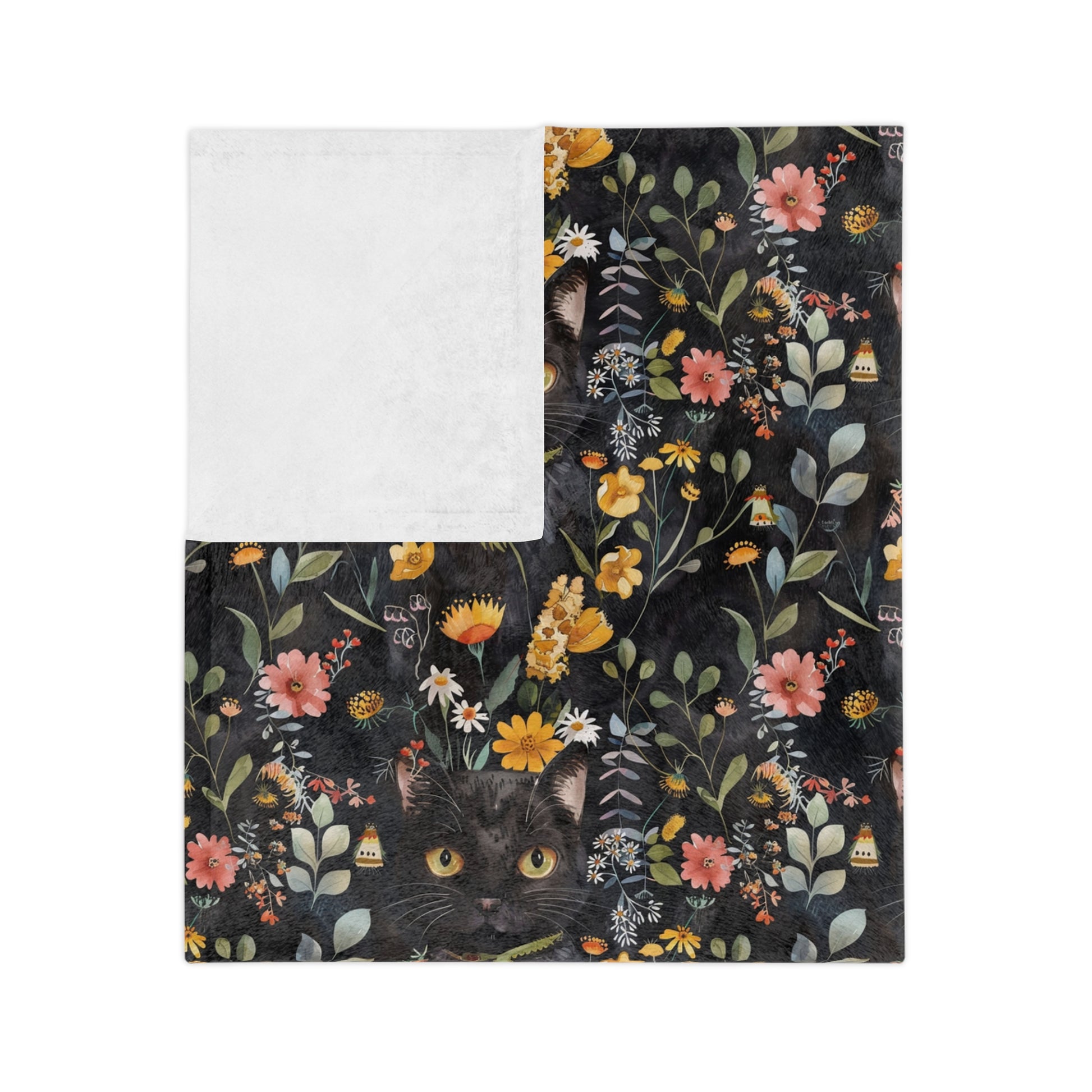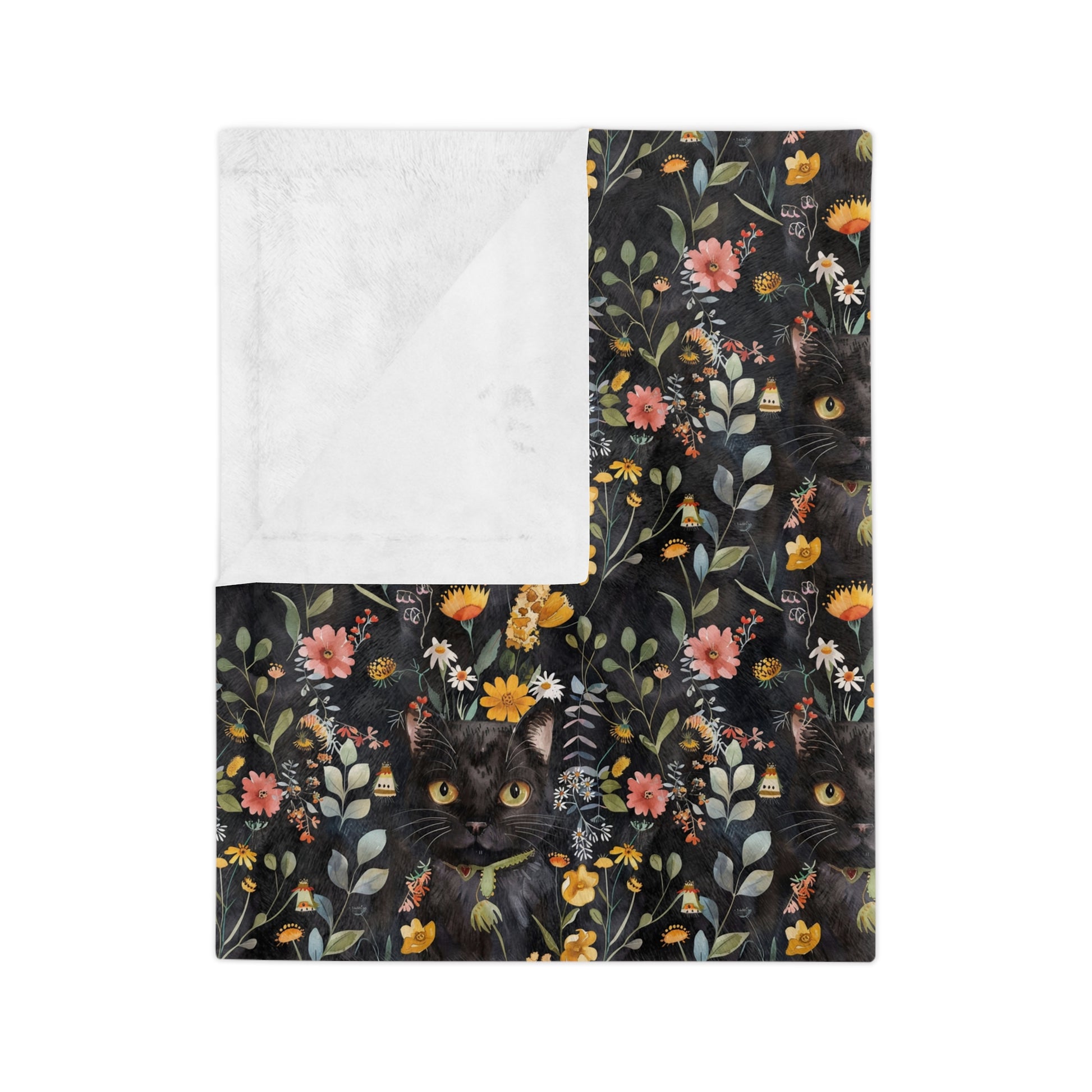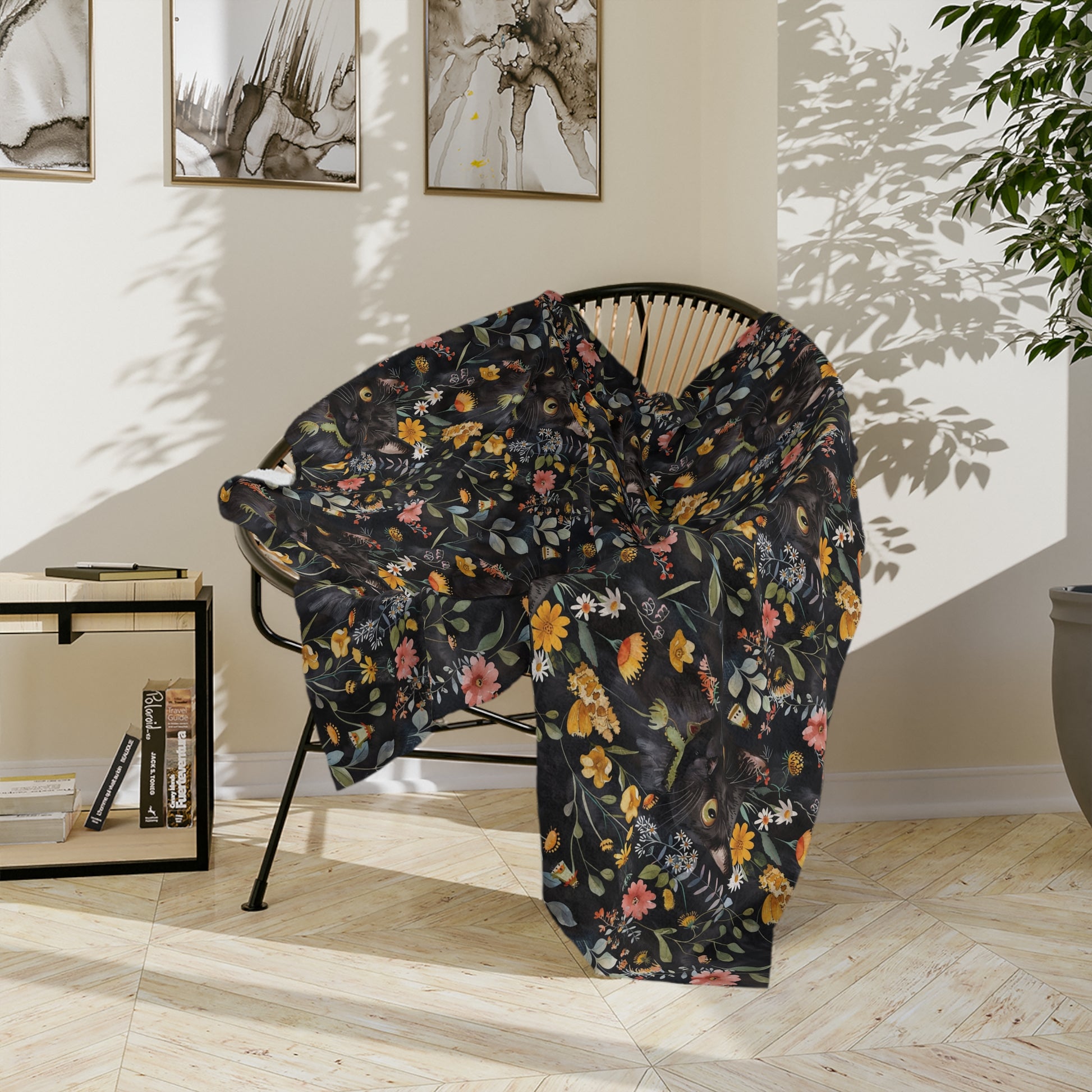 Cat & Flowers Blanket | Cozy Microfiber Blanket, Cat Lover Gift, Floral Throw, Home Decor