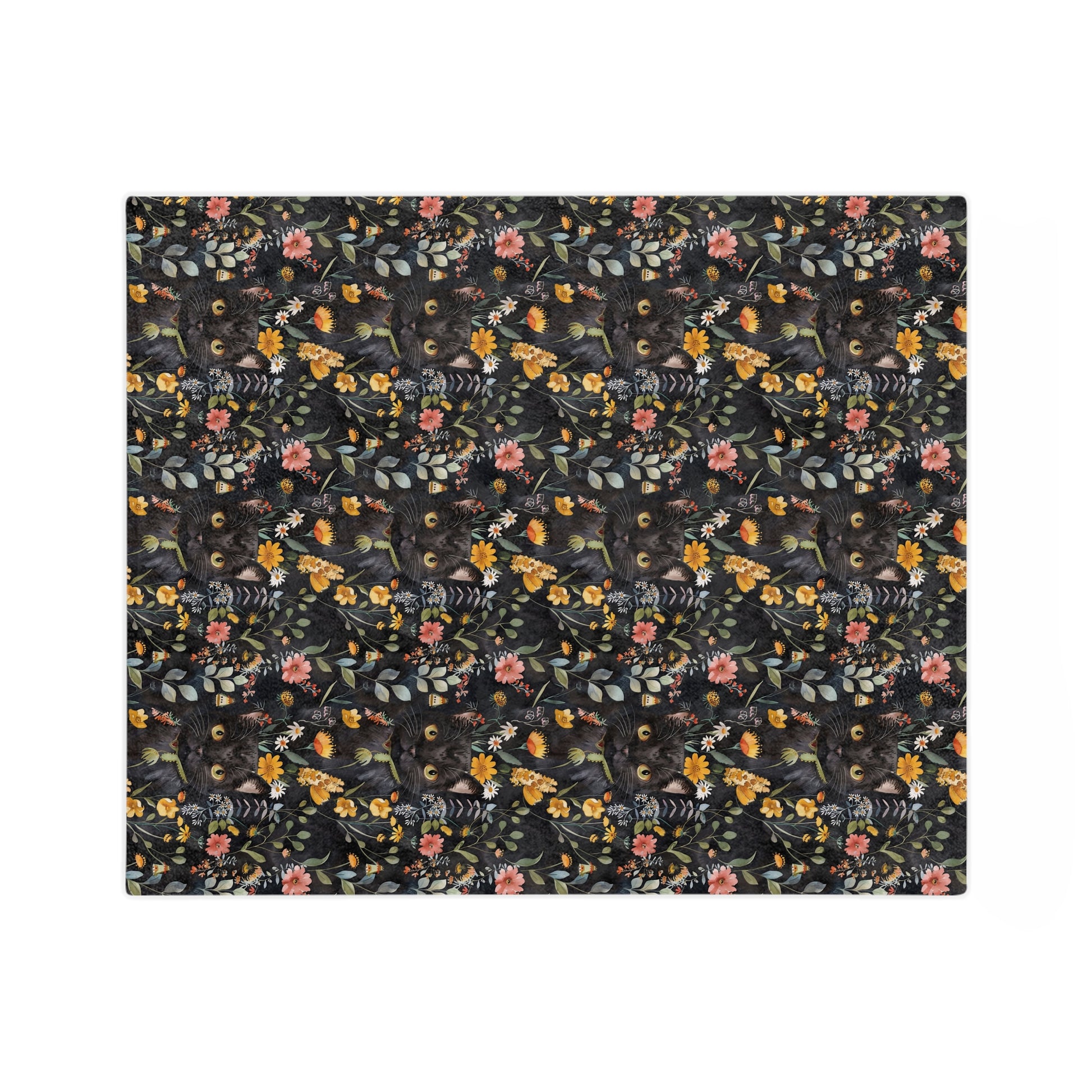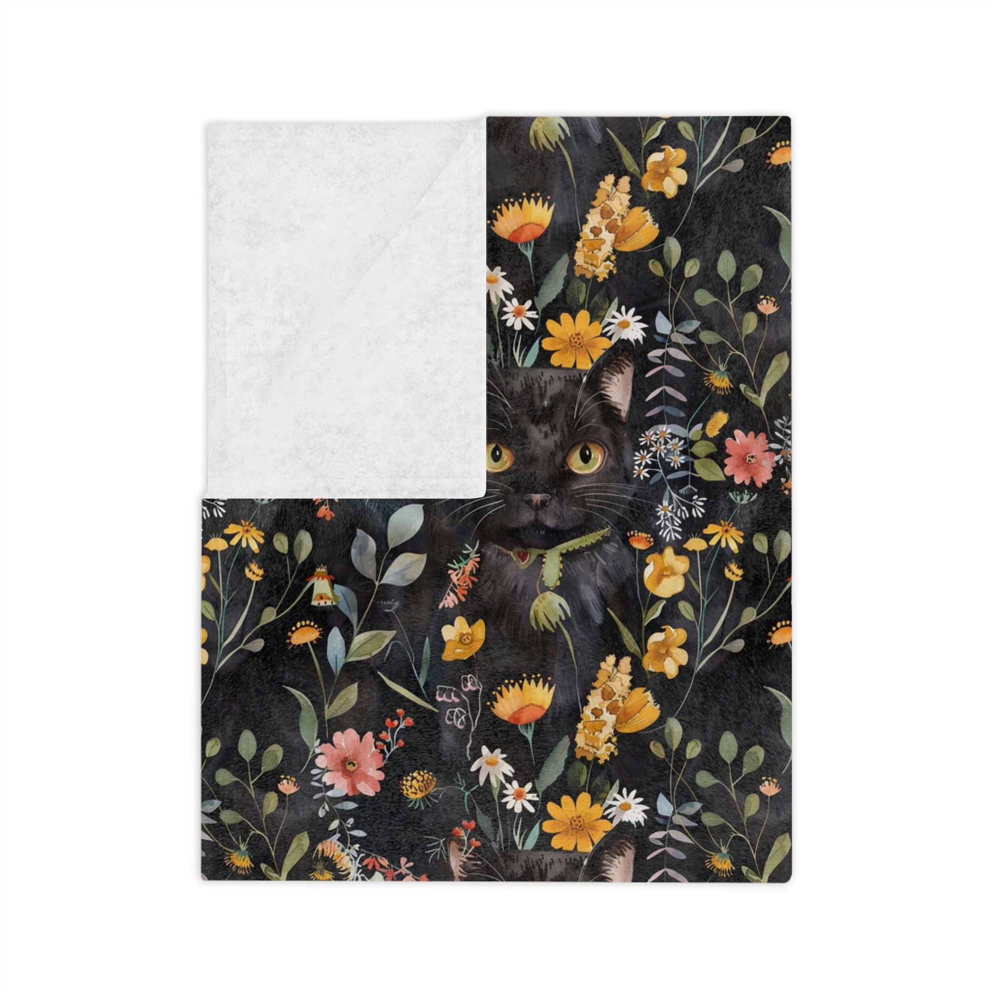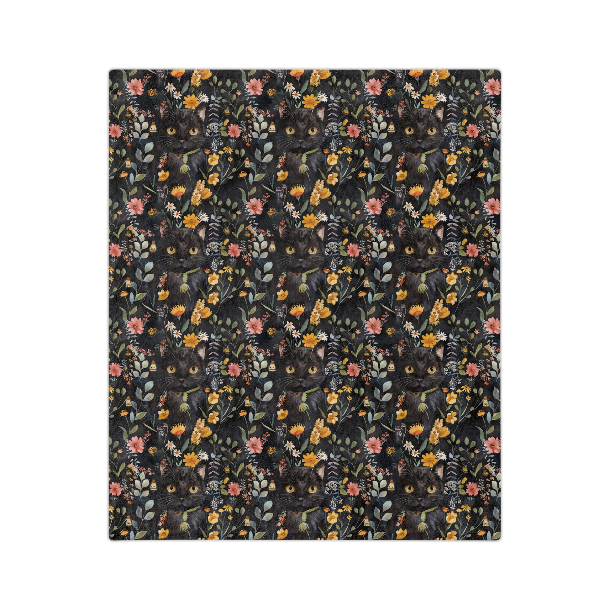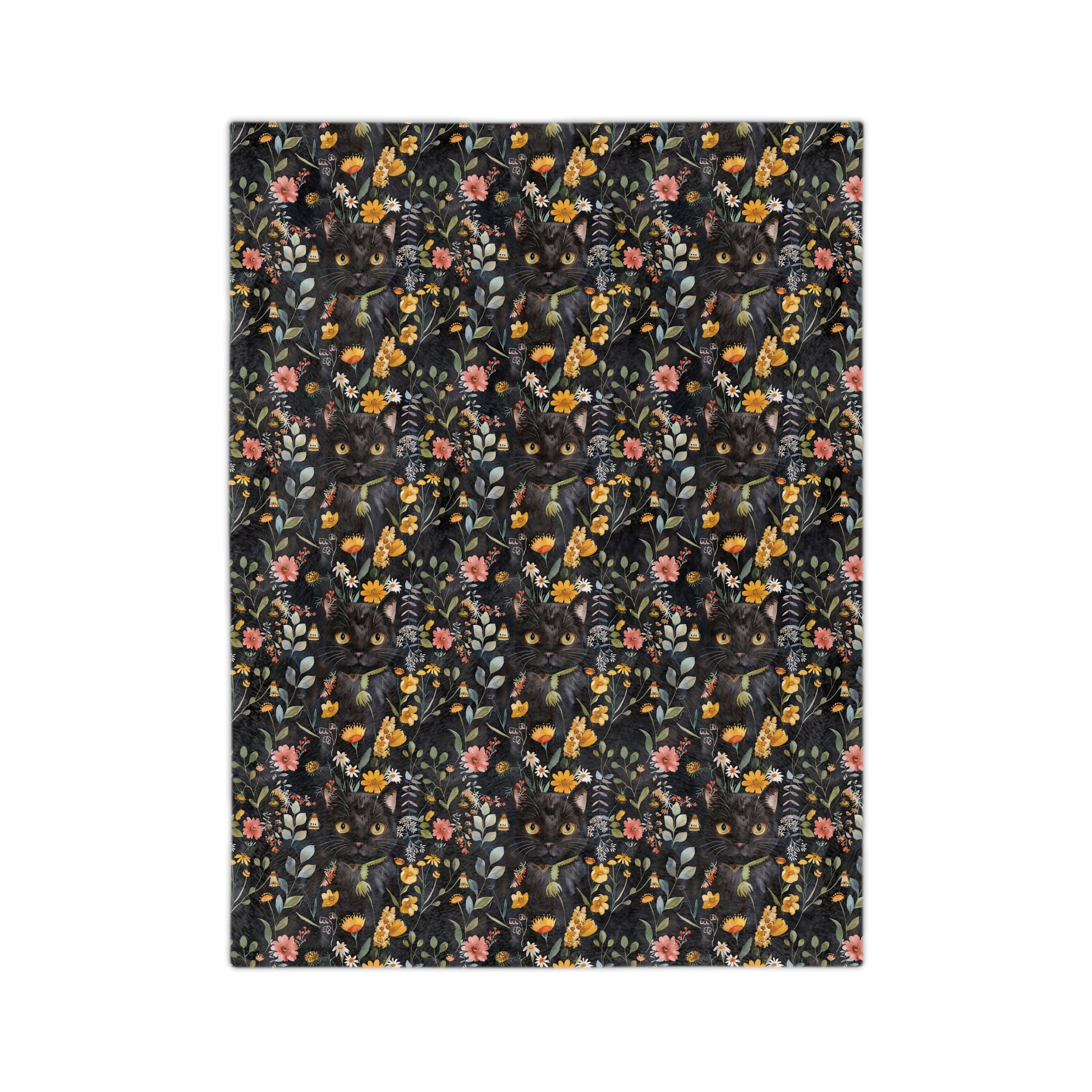 Cat & Flowers Blanket | Cozy Microfiber Blanket, Cat Lover Gift, Floral Throw, Home Decor