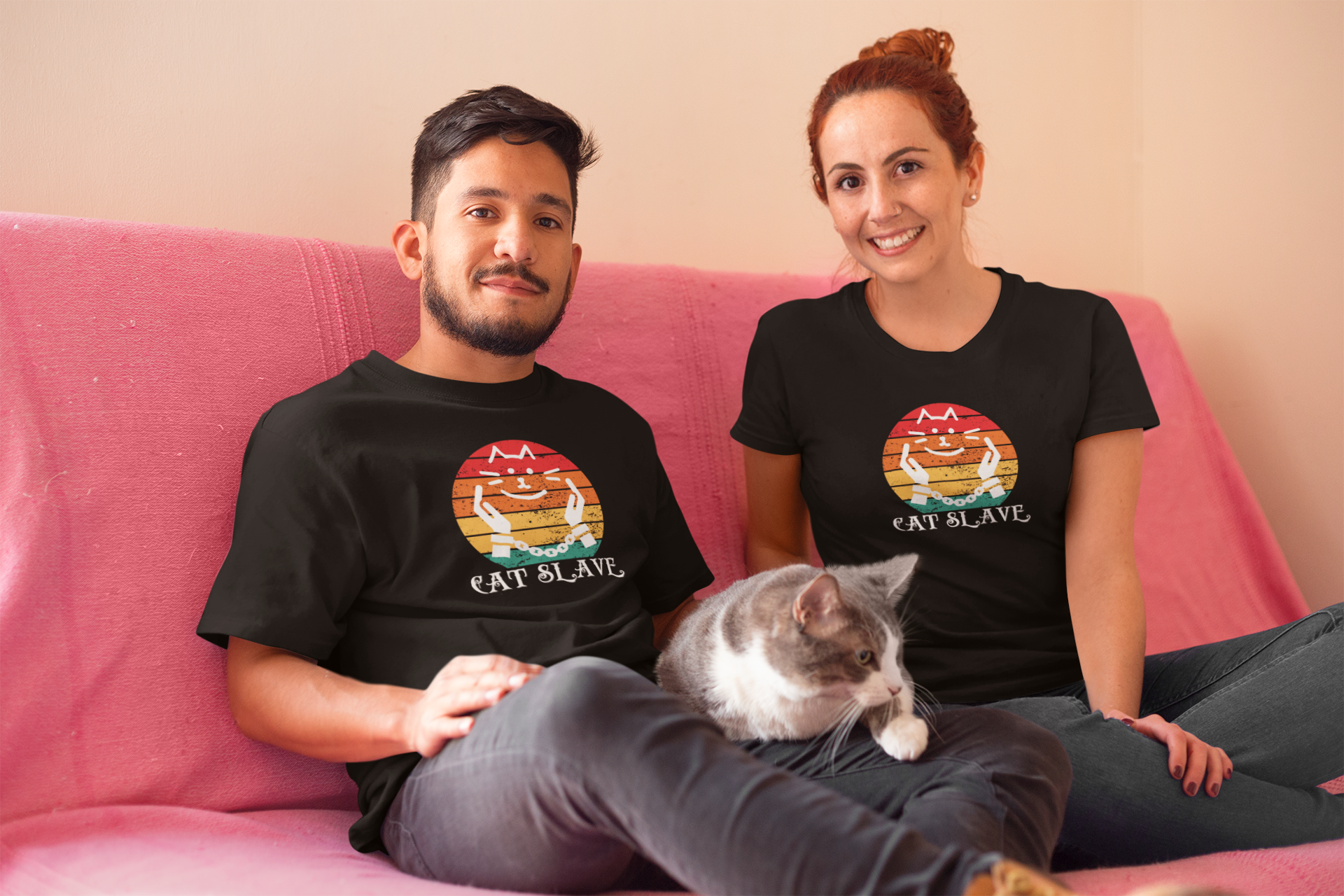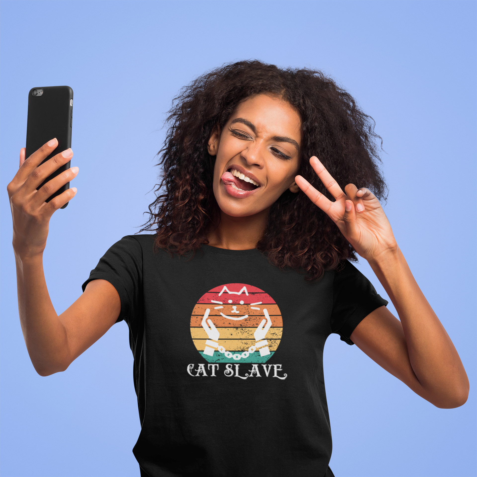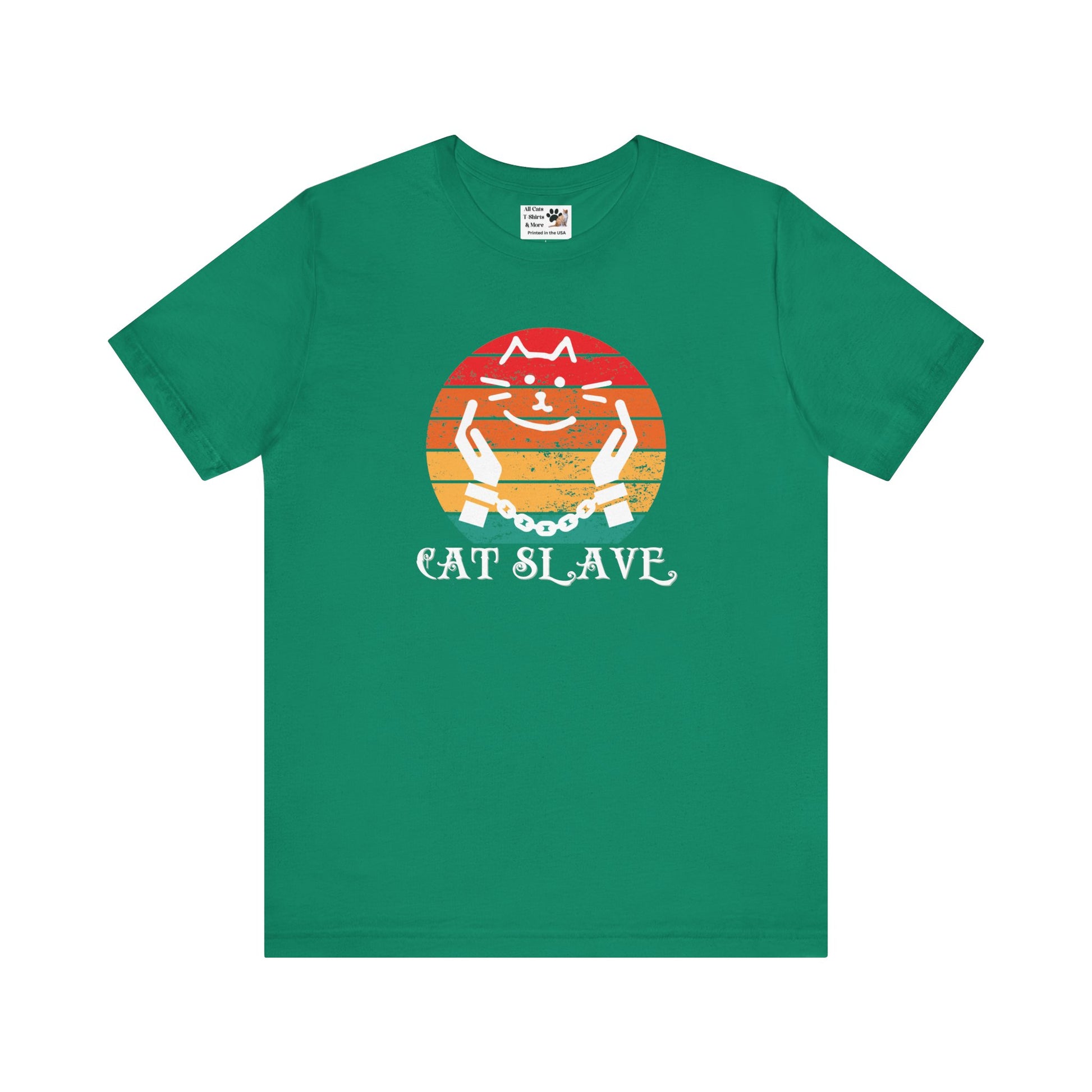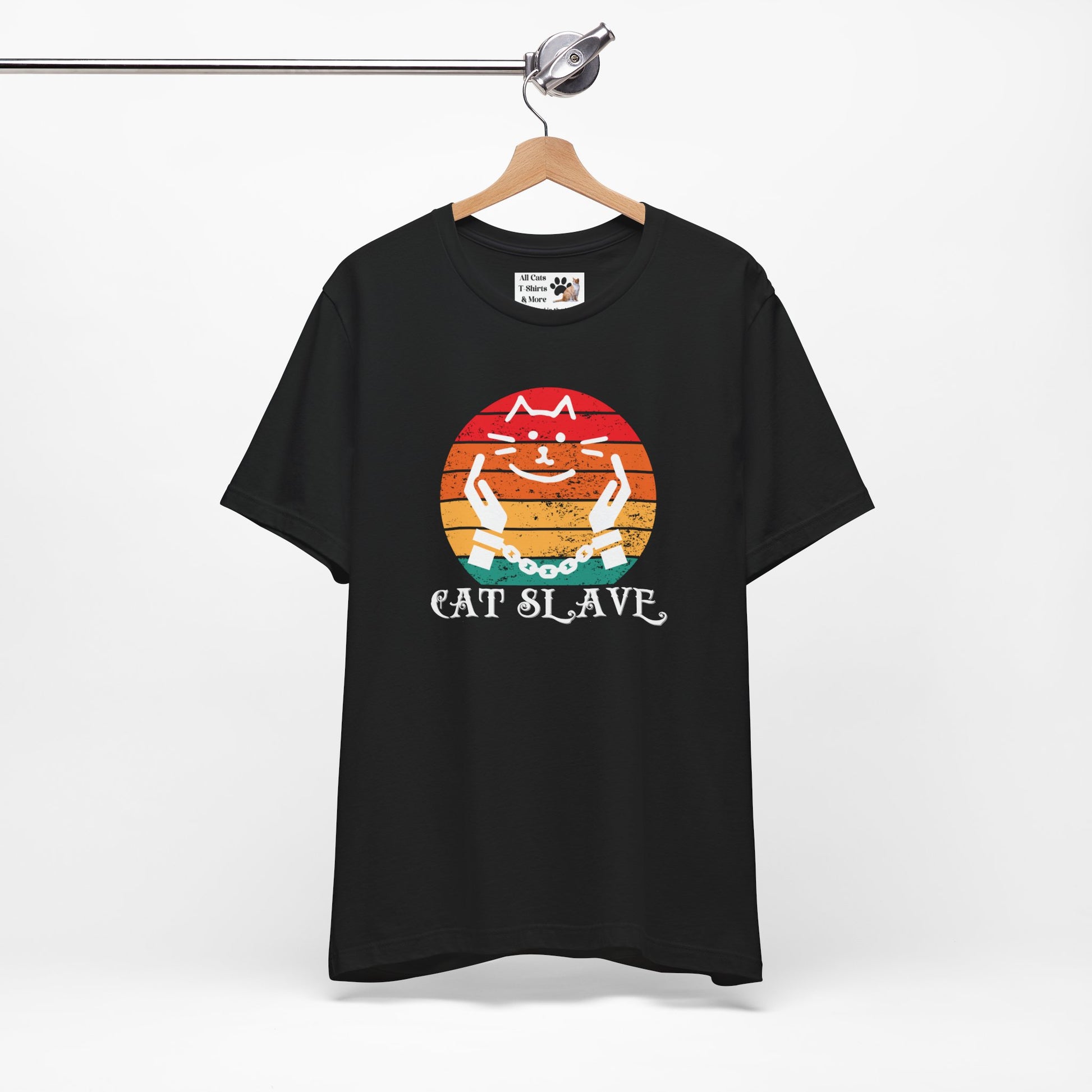 A humorous "Cat Slave Vintage Sunset T-Shirt" for cat owners & lovers who know who the boss really is. This t-shirt exudes a playful and humorous vibe, perfect for cat owners and lovers to show their love for their feline companions. Ideal for casual wear and lounging around, this t-shirt is a great way to express your personality and love for cats.