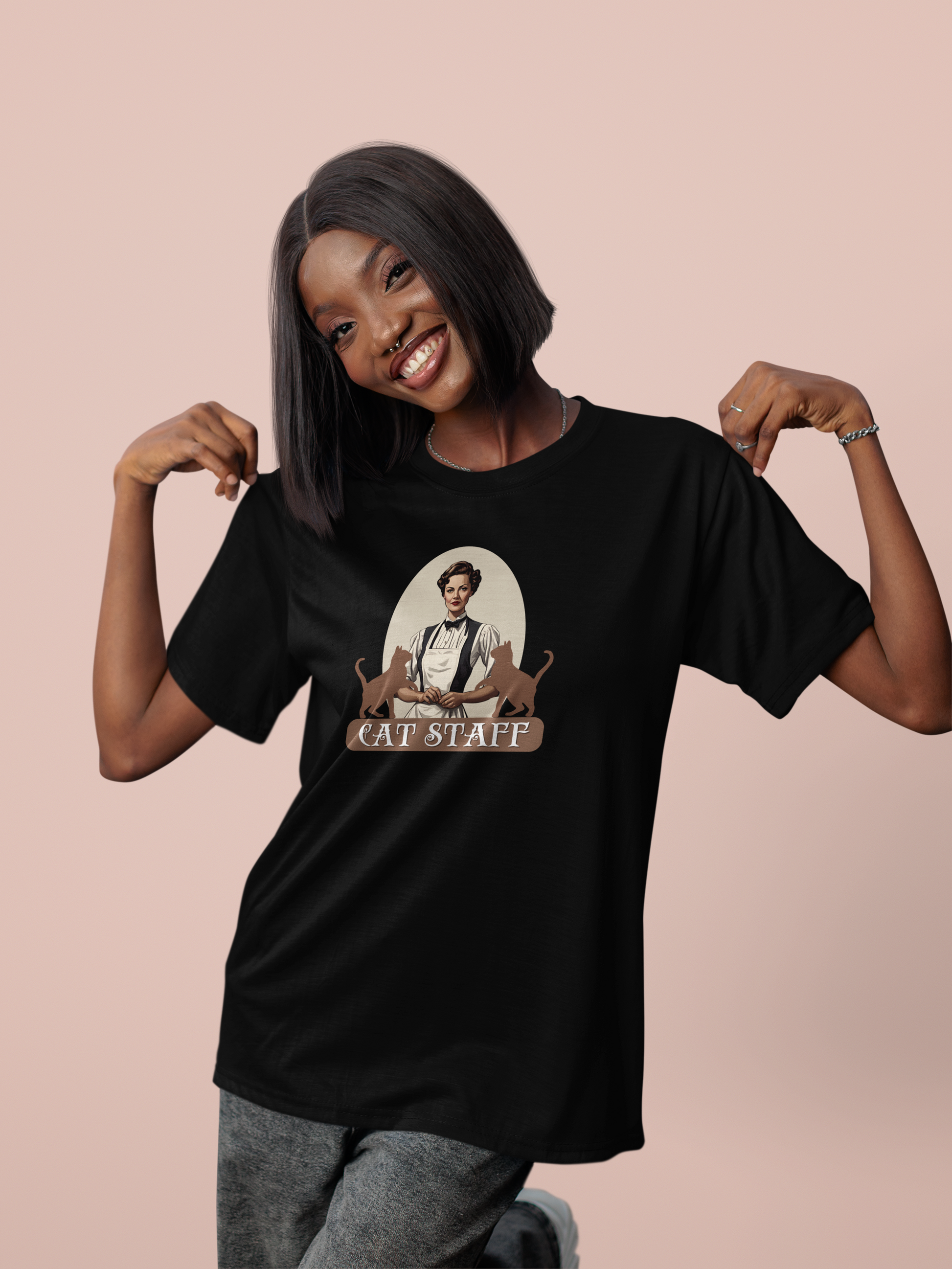 Cat Staff T-Shirt - ("Victorian Era Style" - Unisex Jersey Tee - Perfect for Cat Lovers)