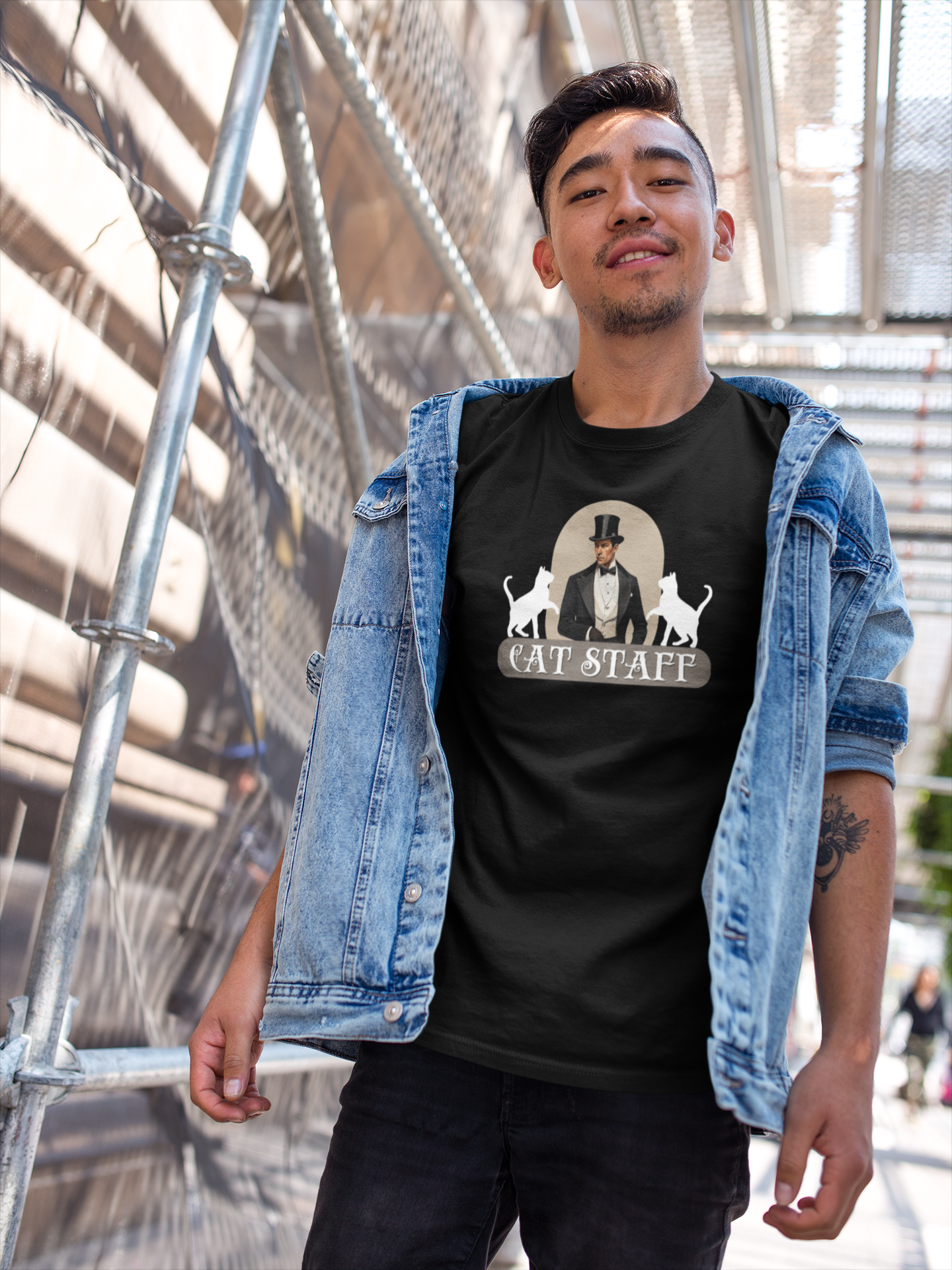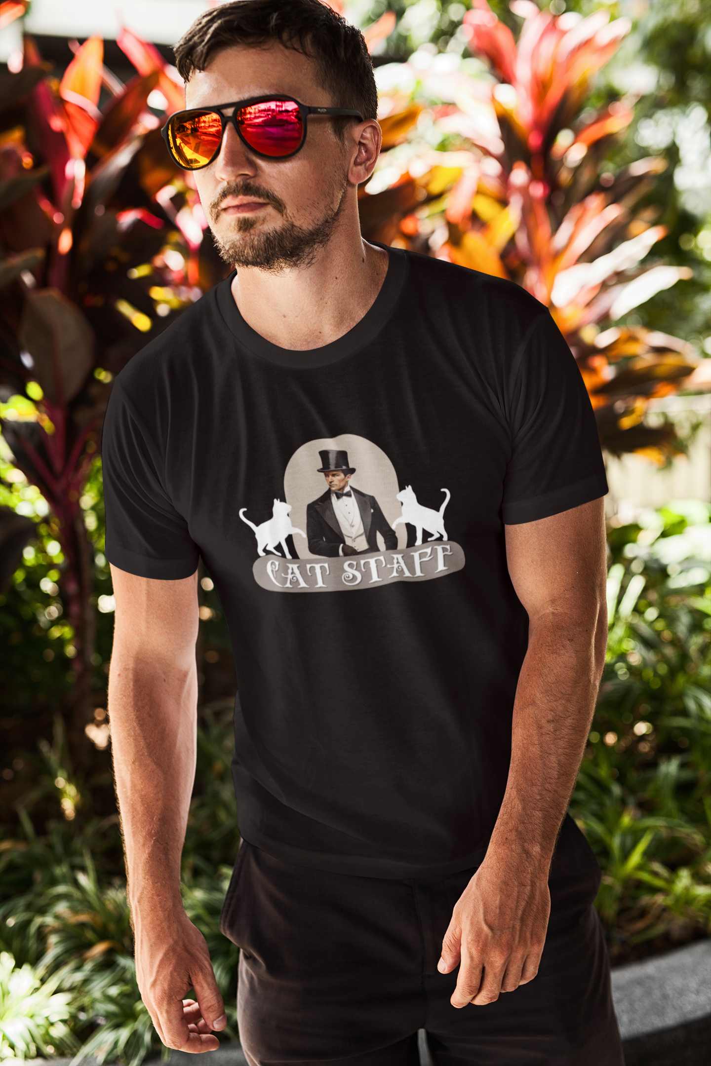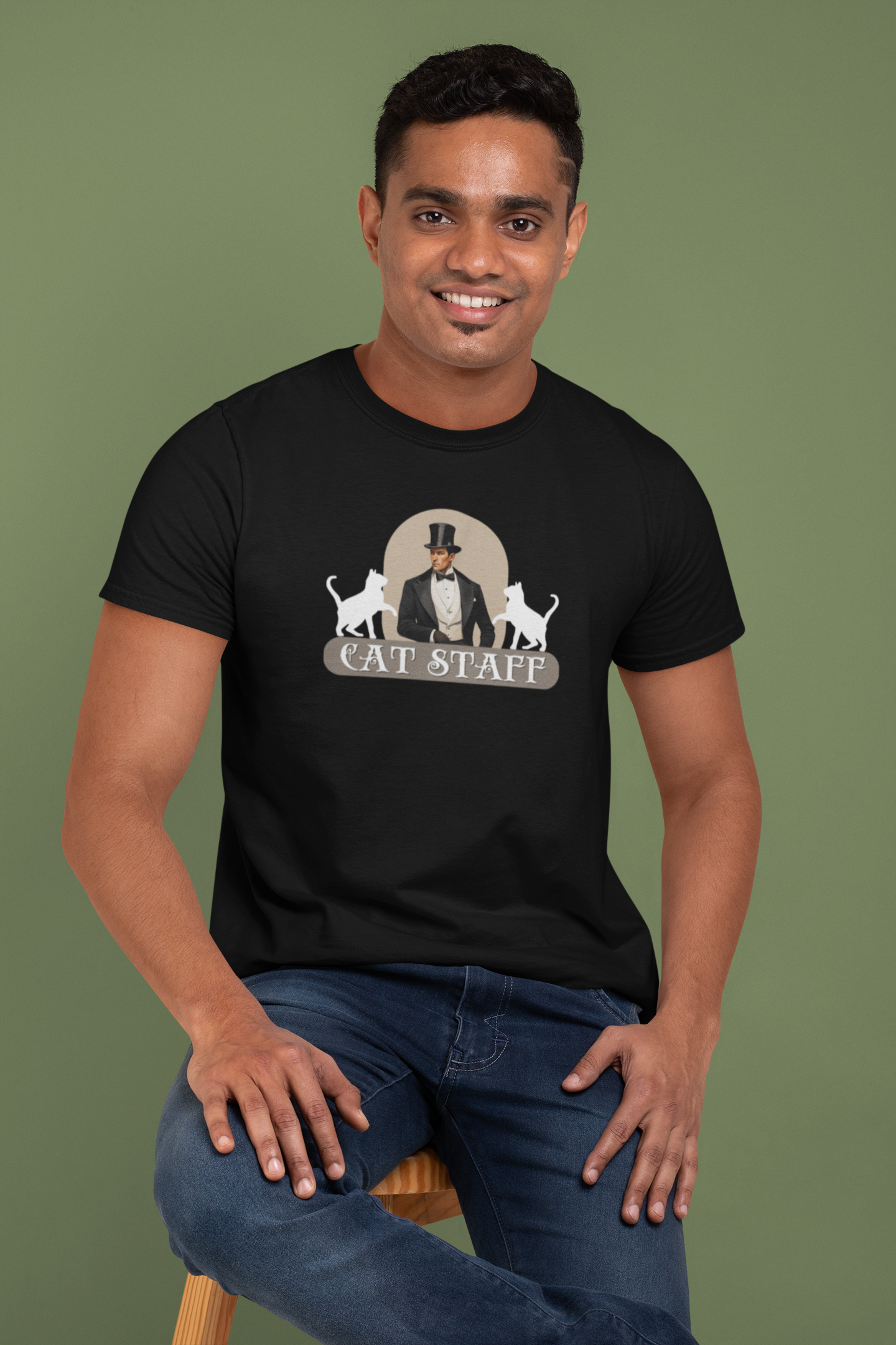 Cat Staff T-Shirt - ("Victorian Era Style" - Unisex Jersey Tee - Perfect for Cat Lovers)