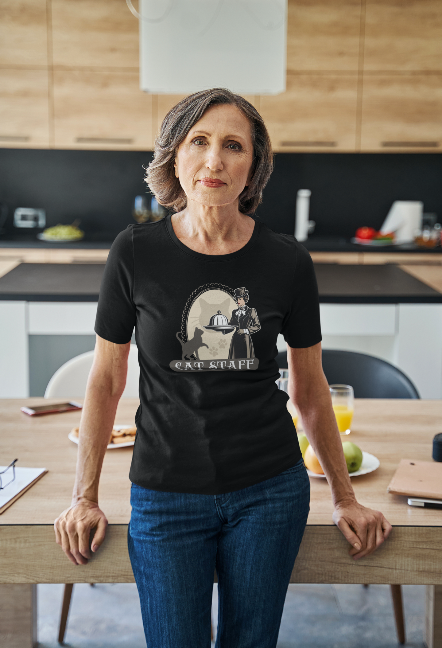 We are pleased to present our "Victorian Era Style" Cat Staff T-Shirt Designs! Many cat owners jokingly consider themselves to be "employed" by their little friends, and not actually the owner of the cat! ("The CATS in charge" kinda thing; "I just pay the bills"; then theres the feeding, scooping litter boxes, grooming, playing, etc..) These fun T-shirt designs depict "Victorian Era Manor House staff" as "Cat Staff", instead, (for fairly wealthy cats no doubt!) The shirts give a whimsical and unique vibe, perfect for cat lovers who enjoy a touch of historical charm in their wardrobe. Ideal for casual wear, cat enthusiasts, and those looking for a fun conversation starter. Hope you like them! (The People/Characters only in these designs were A.I. generated)