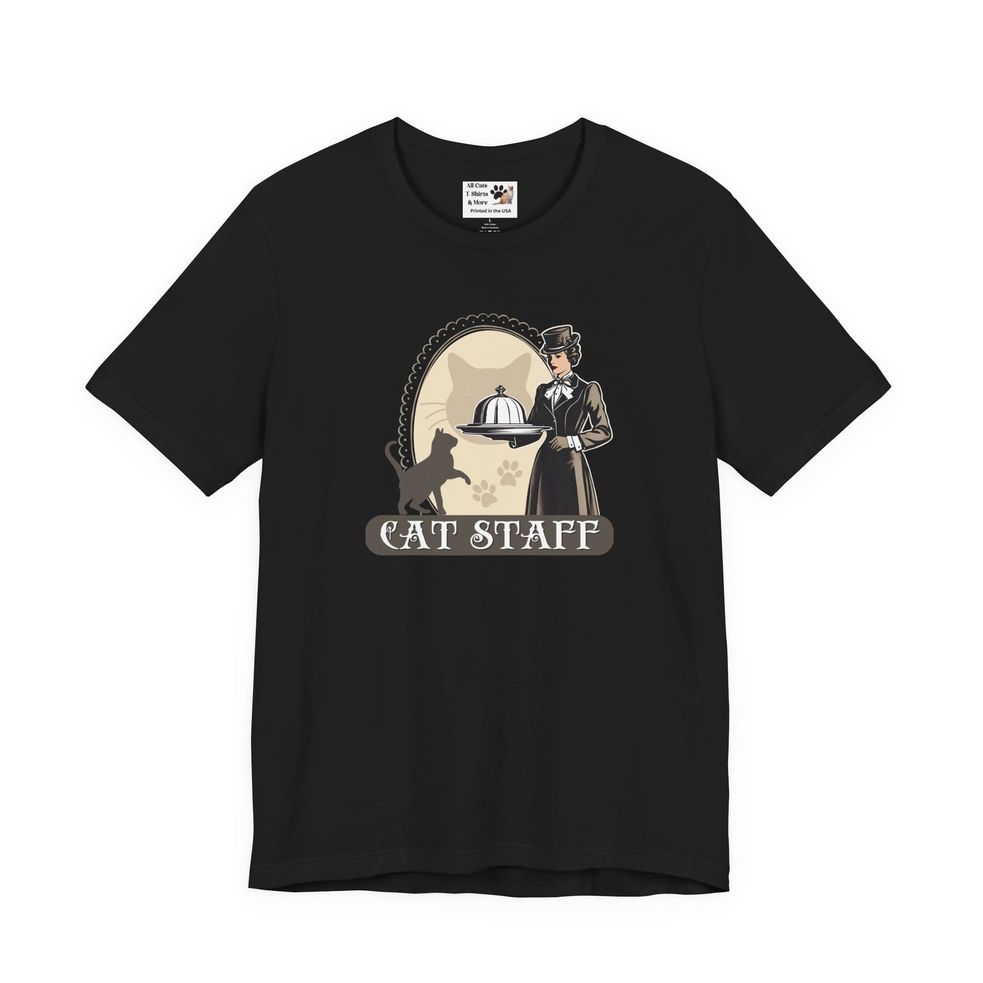 Cat Staff T-Shirt - ("Victorian Era Style" - Unisex Jersey Tee - Perfect for Cat Lovers)