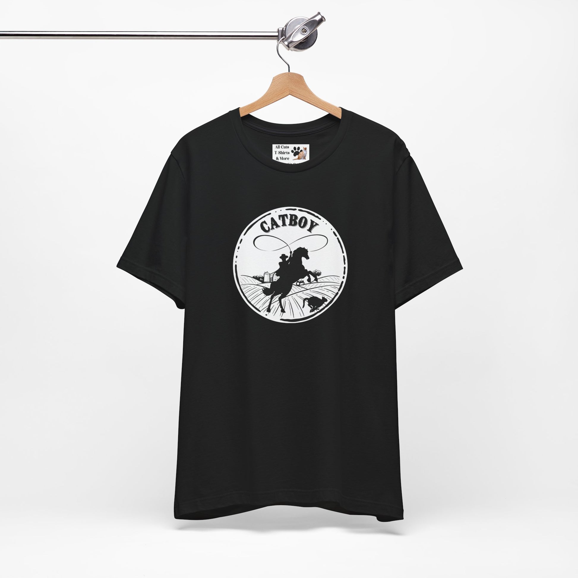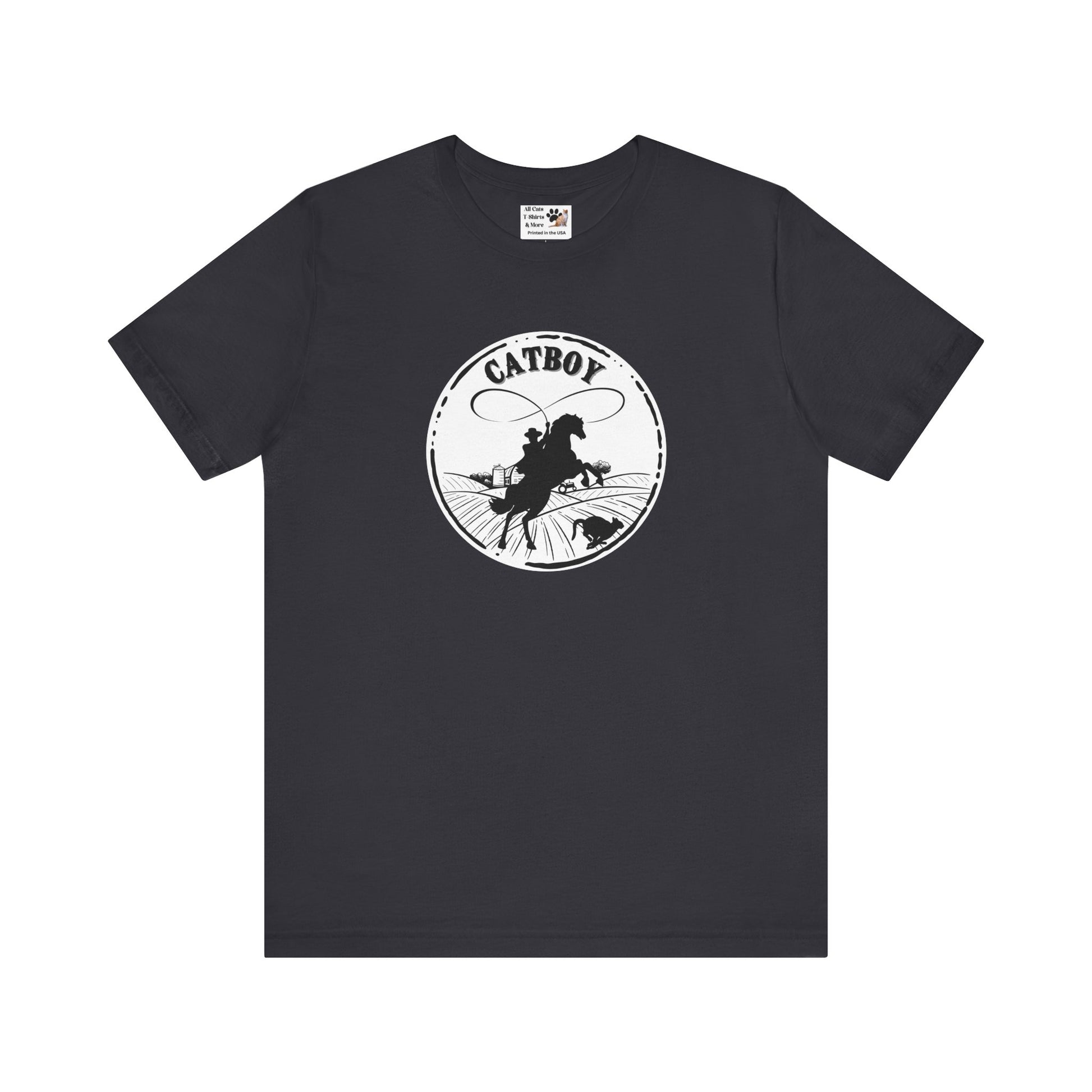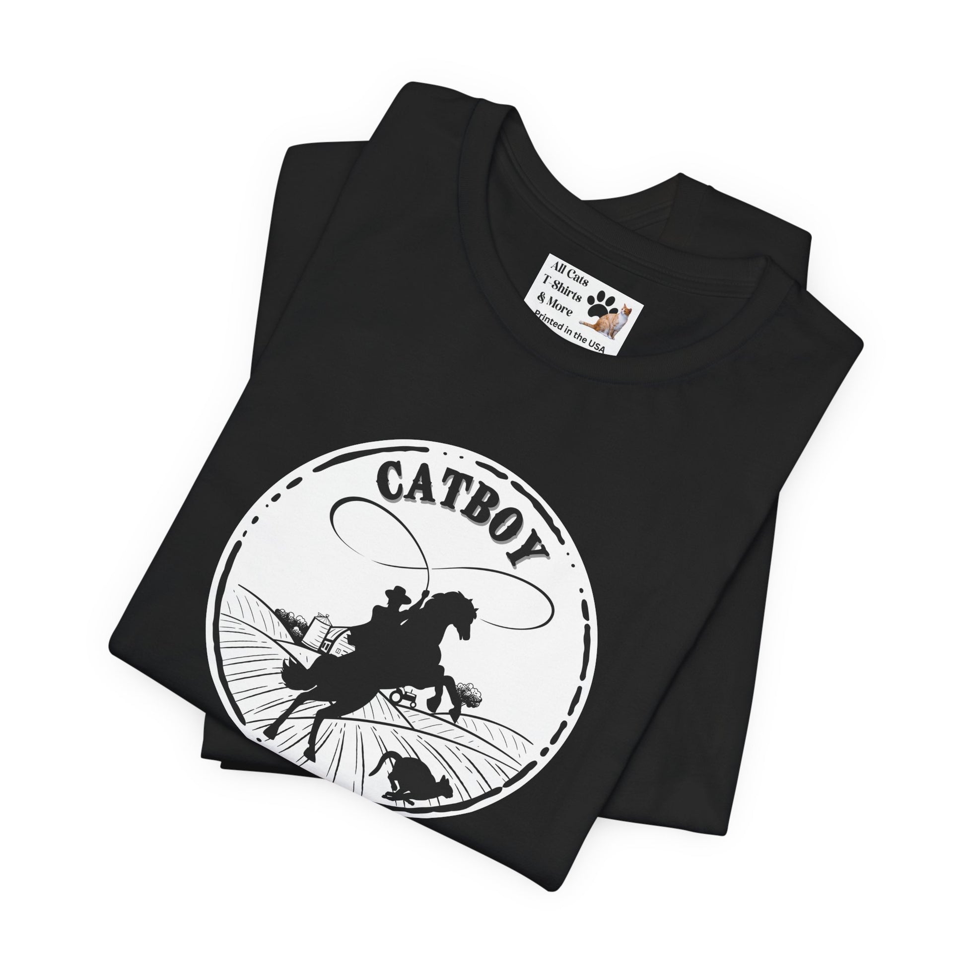 This fun western theme "Catboy" T-Shirt is a play-on the concept of Cowboys; A "CATboy" is someone who loves and looks after CATS instead of horses or cattle on a farm or ranch. (A just for fun T-Shirt; It in no way is meant to depict cats being harmed in any way. We LOVE cats!)