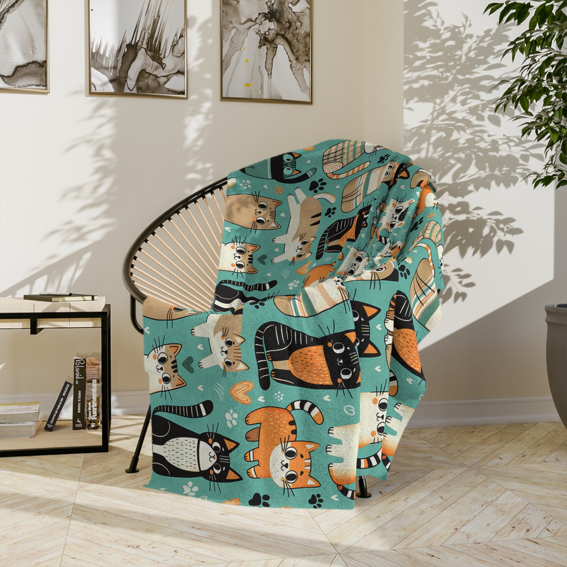 Wrap yourself in comfort and warmth with this delightful Microfiber Blanket, perfect for cozy nights in and lively afternoons. The plush, soft material makes it ideal for snuggling while you enjoy a movie, read a book, or simply relax. With its vibrant, eye-catching colors featuring charming cat designs, this blanket adds a playful touch to any room, making it an excellent addition to your home decor. It's also a thoughtful gift for cat lovers, friends, or family members on occasions like birthdays, holidays, or housewarming celebrations. Cozy up in style and bring joy to your living space with this perfect companion!