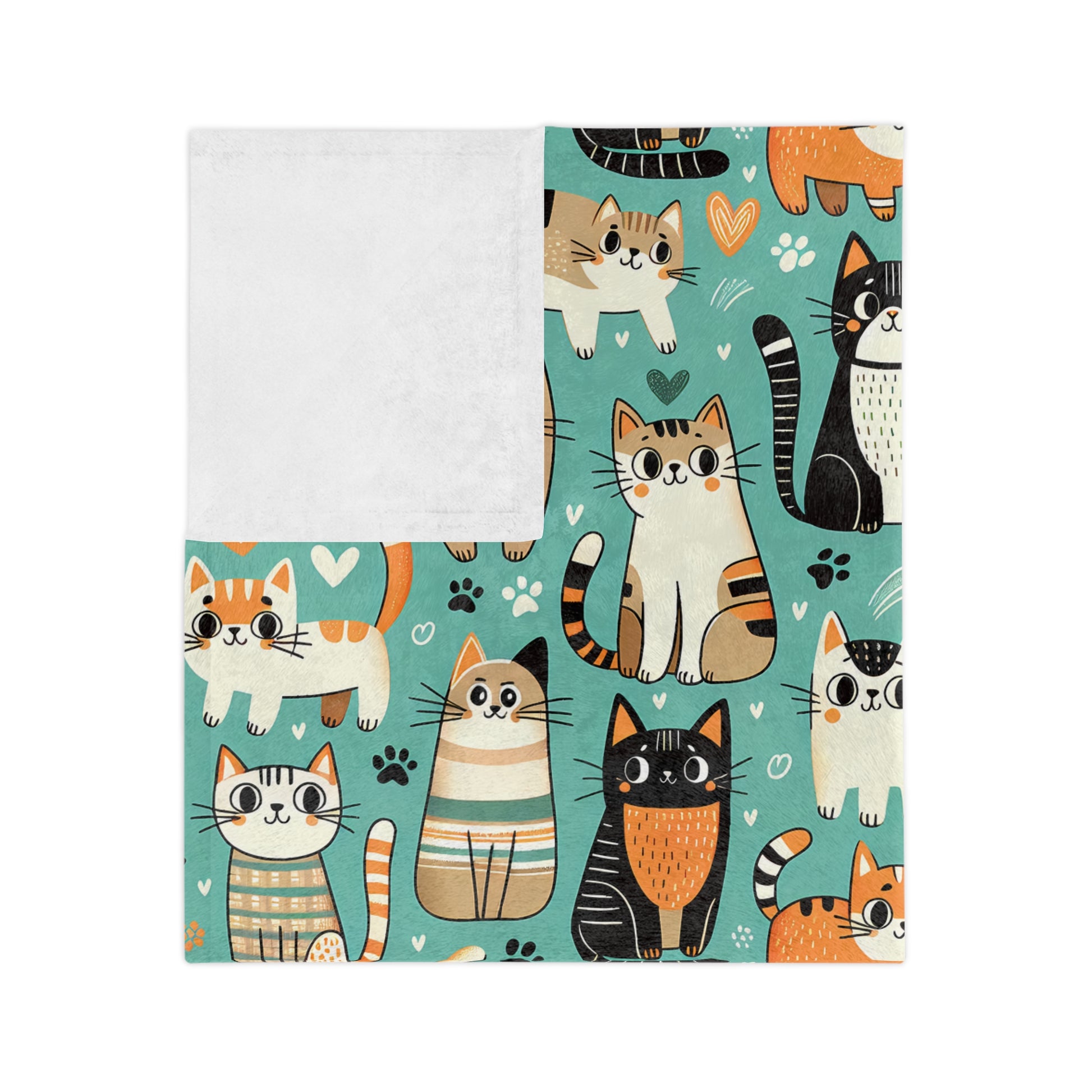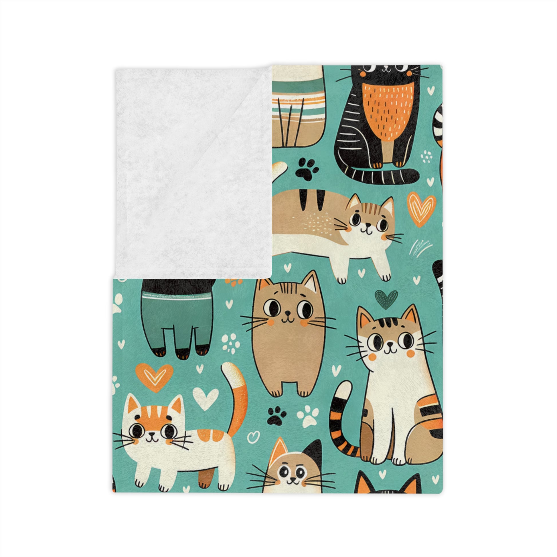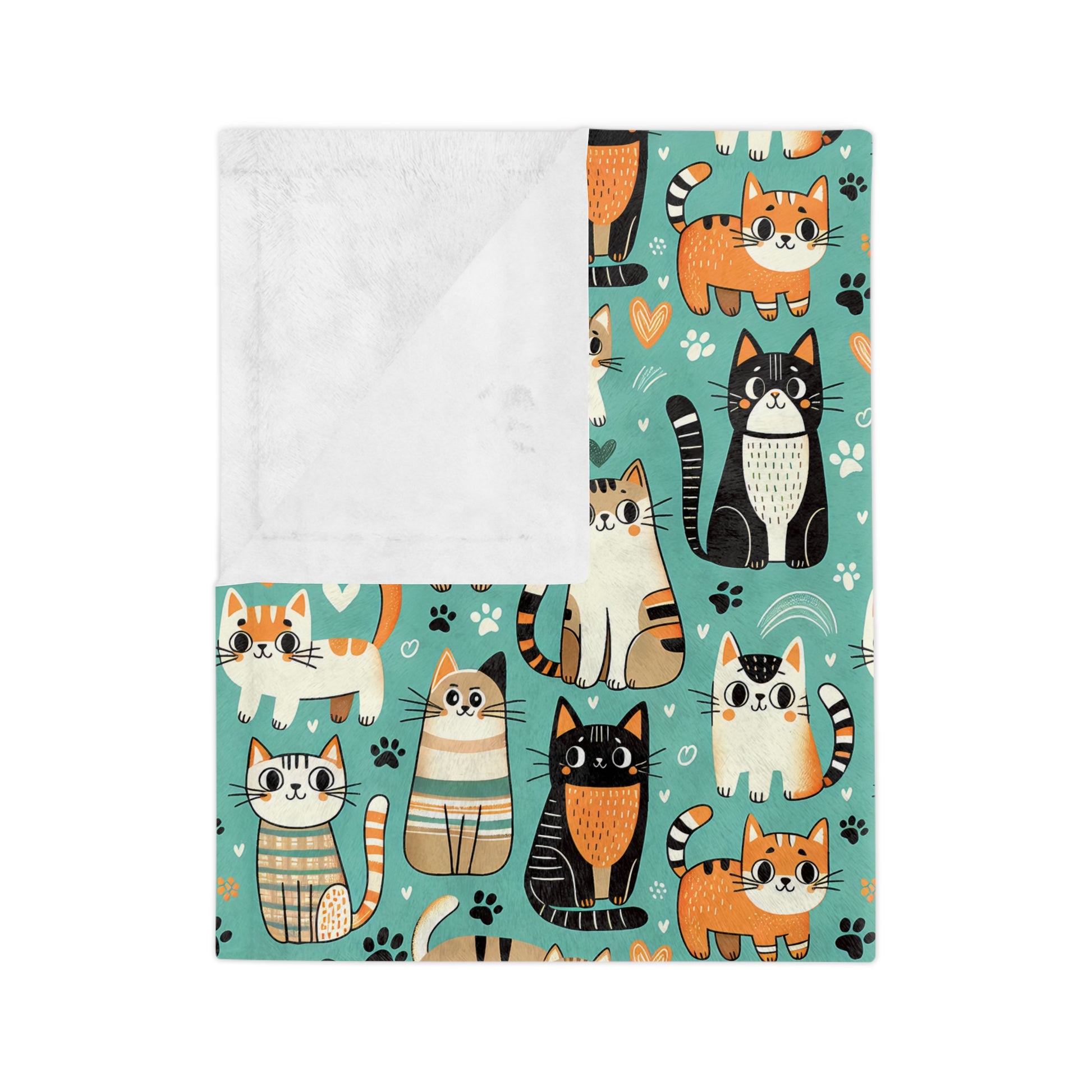 Cozy Cat Print Blanket - Soft Velveteen Microfiber Throw, Pet Lover Gift, Home Decor for Cat Lovers, Perfect for Cozy Nights