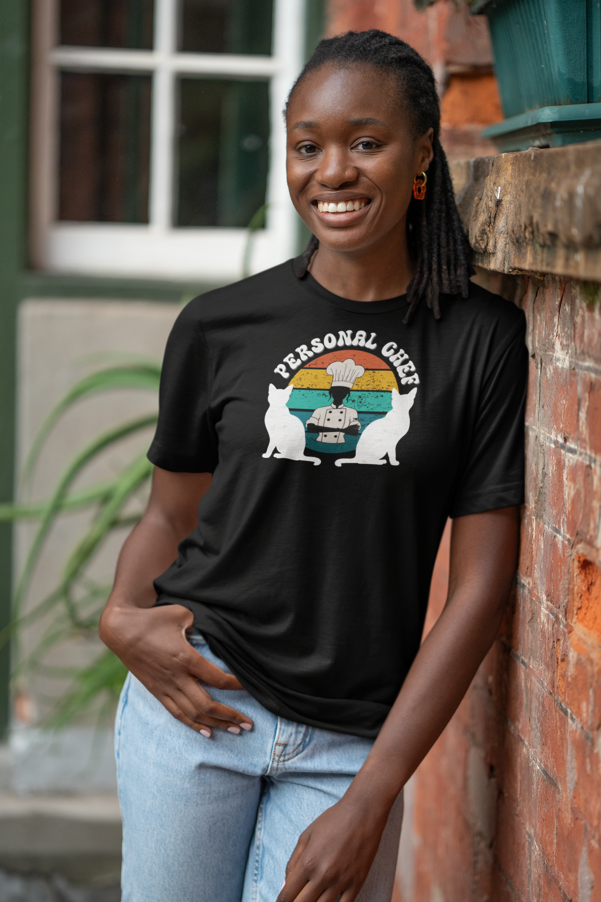 Personal Chef for Cats T-Shirt (#20 - Distressed Style Vintage Sunset, Unisex Jersey Tee)