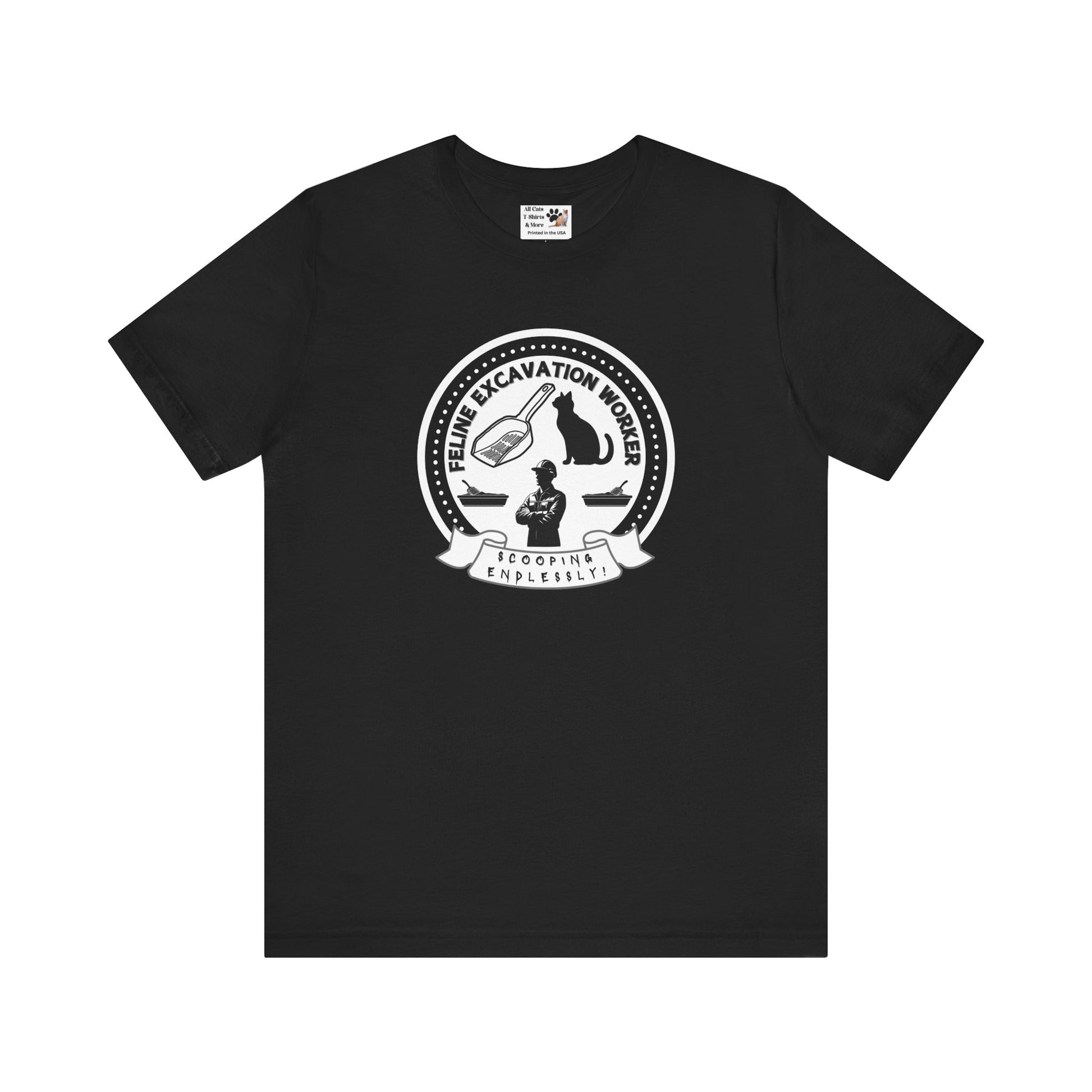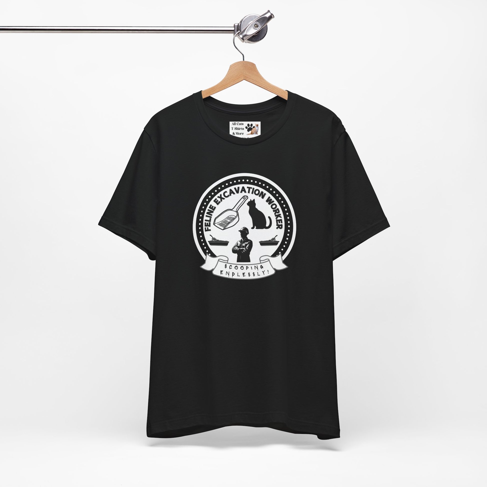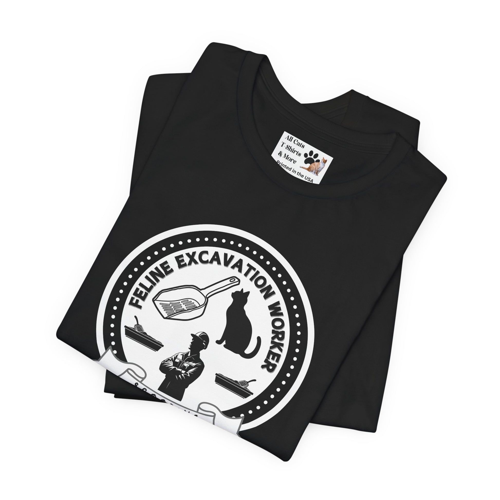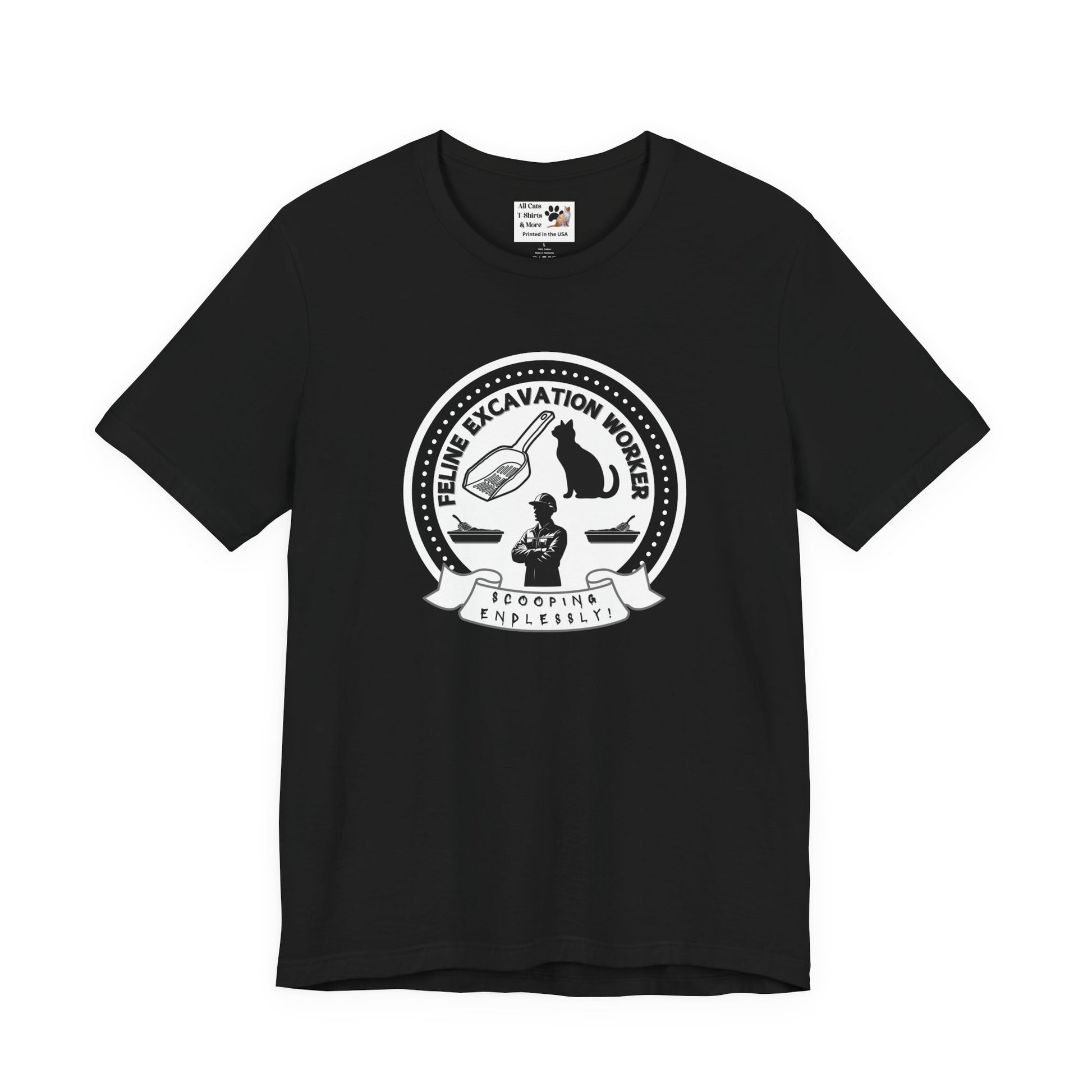 Fun Feline Excavation Worker Graphic T-Shirt - (Unisex Jersey Tee - Perfect for Cat Owners!)