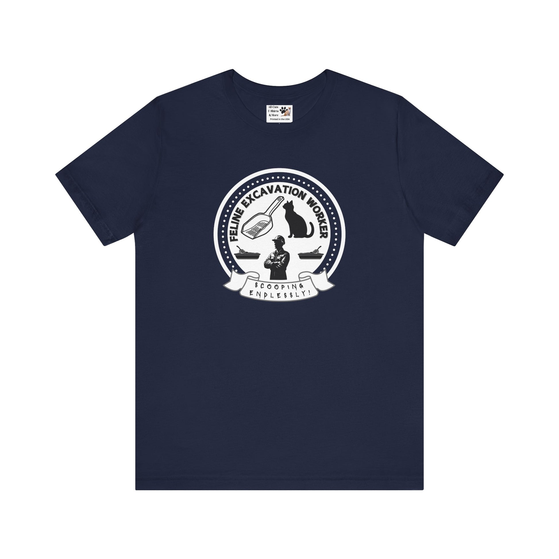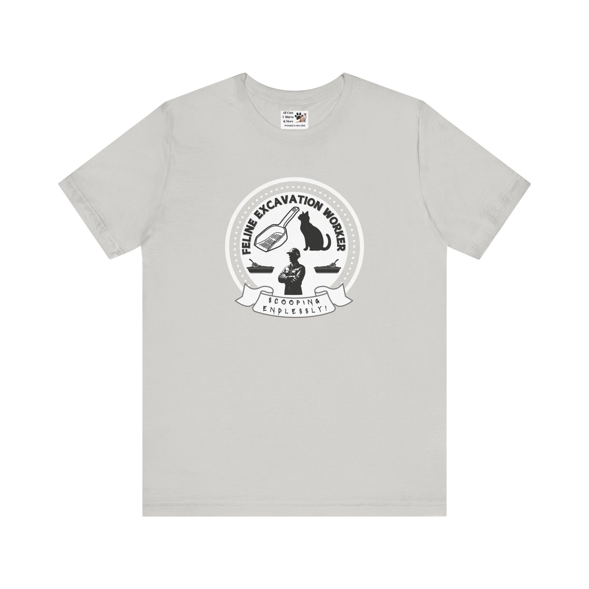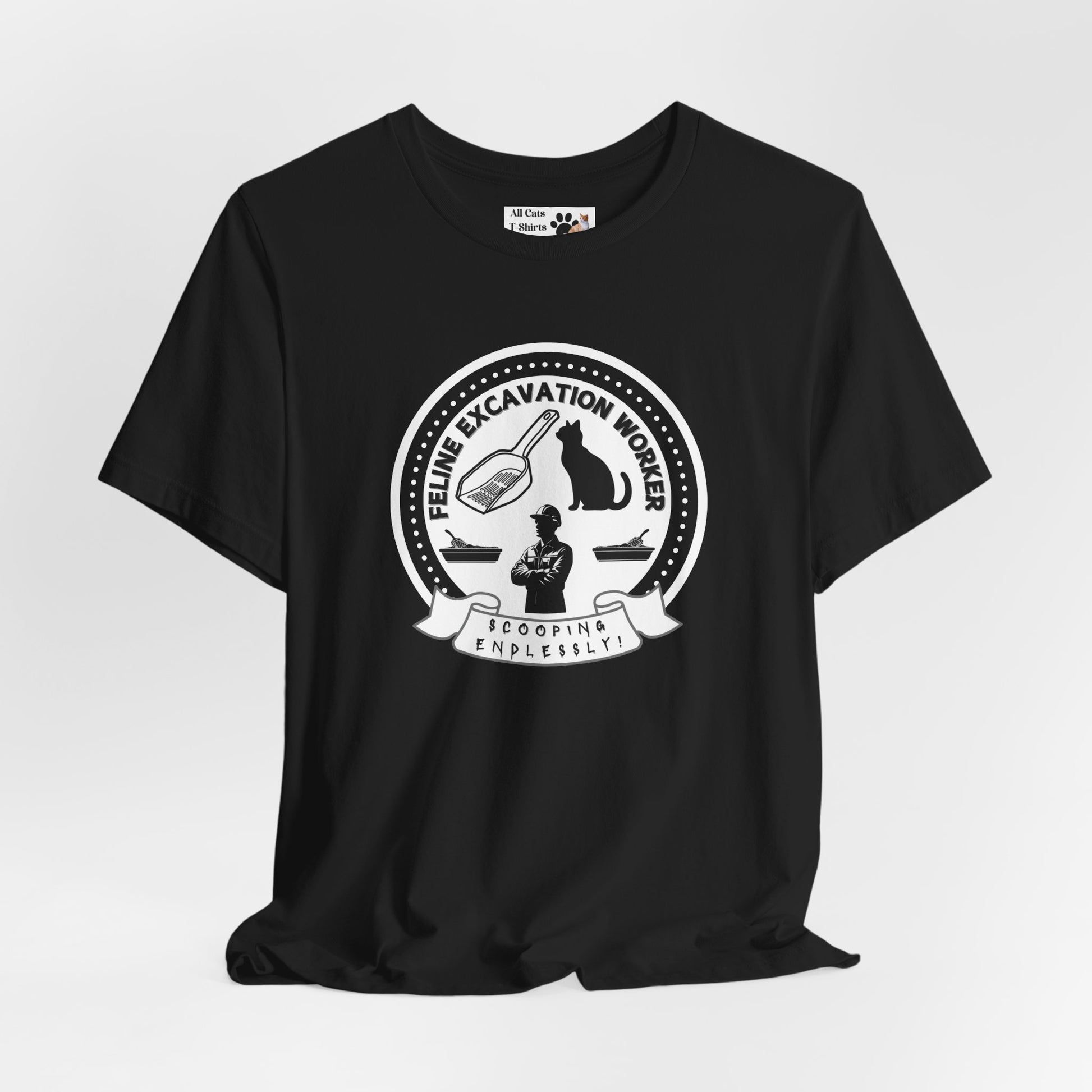 Fun Feline Excavation Worker Graphic T-Shirt - (Unisex Jersey Tee - Perfect for Cat Owners!)