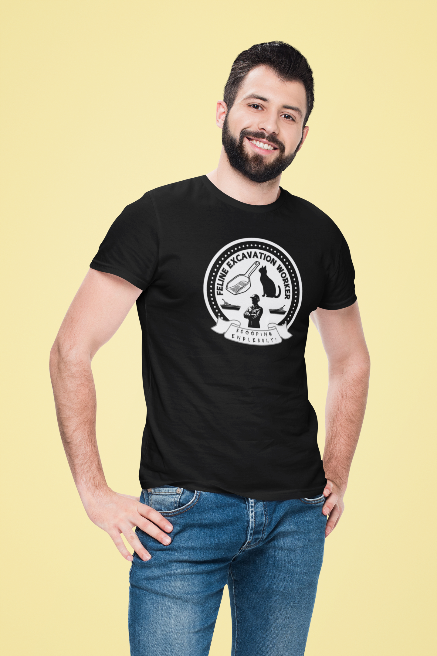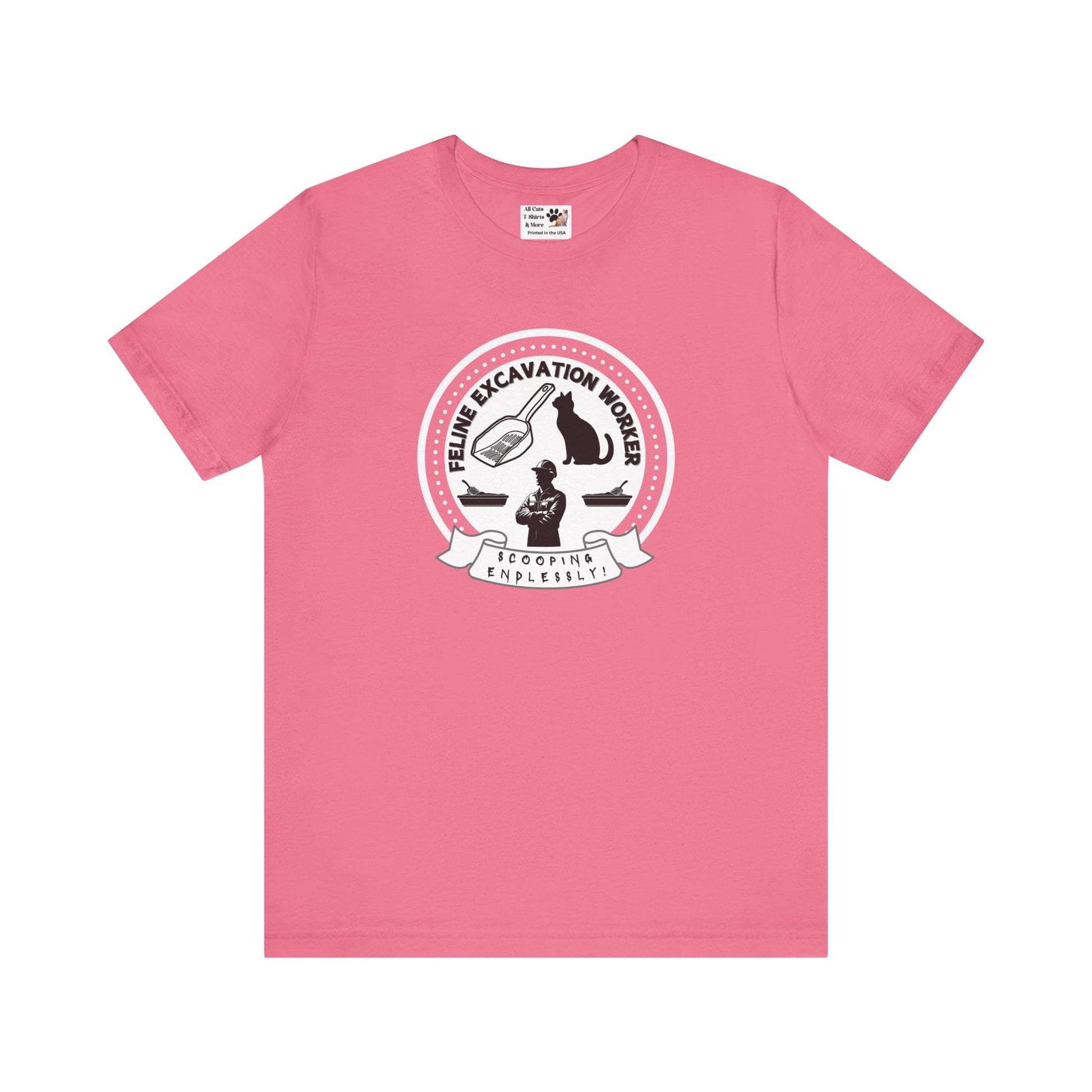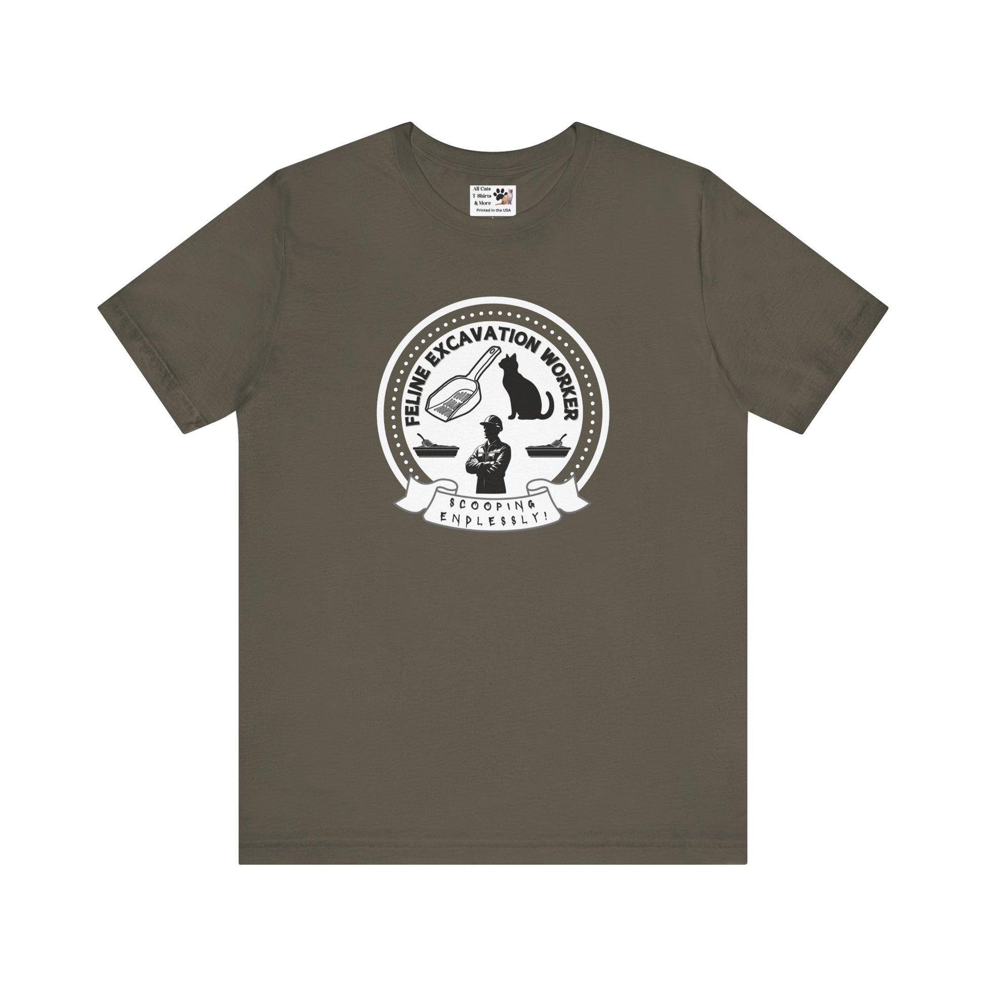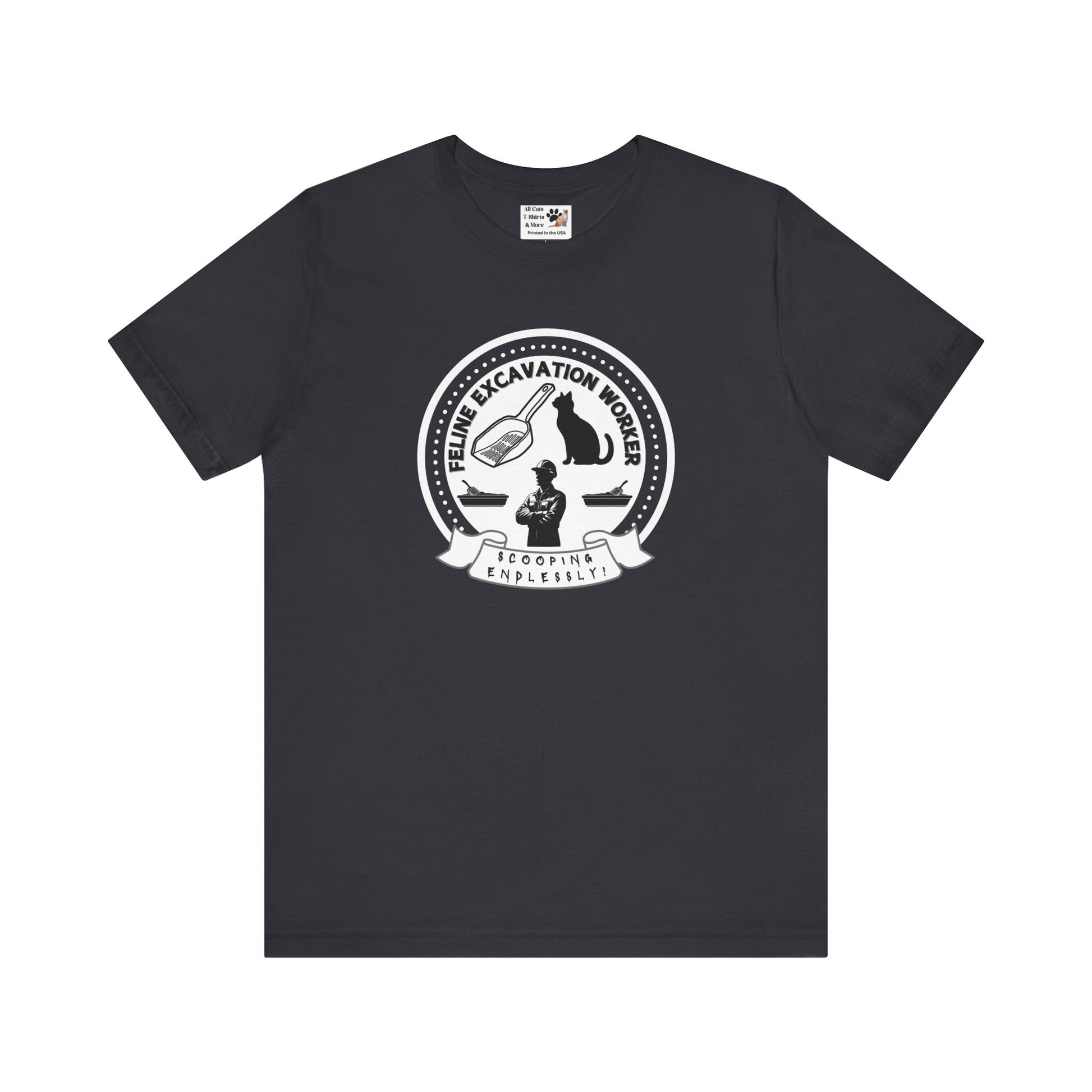 Fun Feline Excavation Worker Graphic T-Shirt - (Unisex Jersey Tee - Perfect for Cat Owners!)