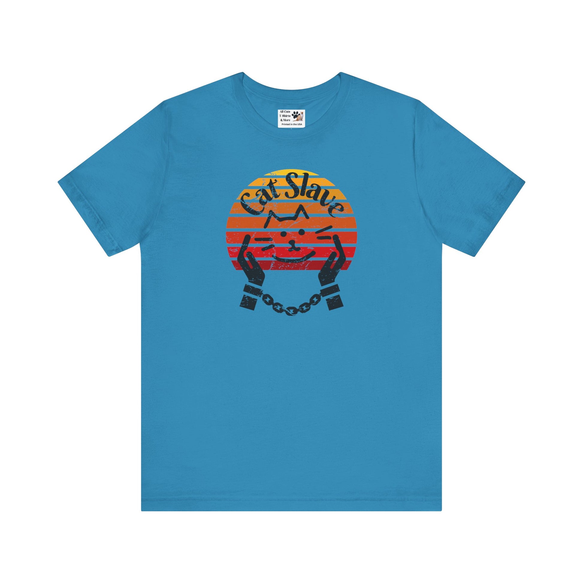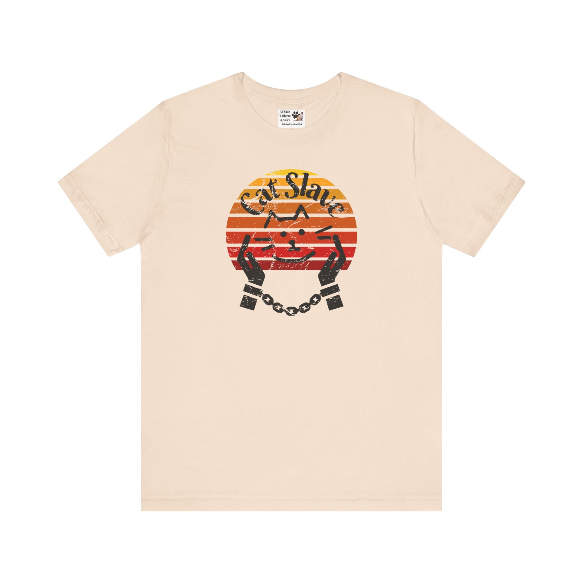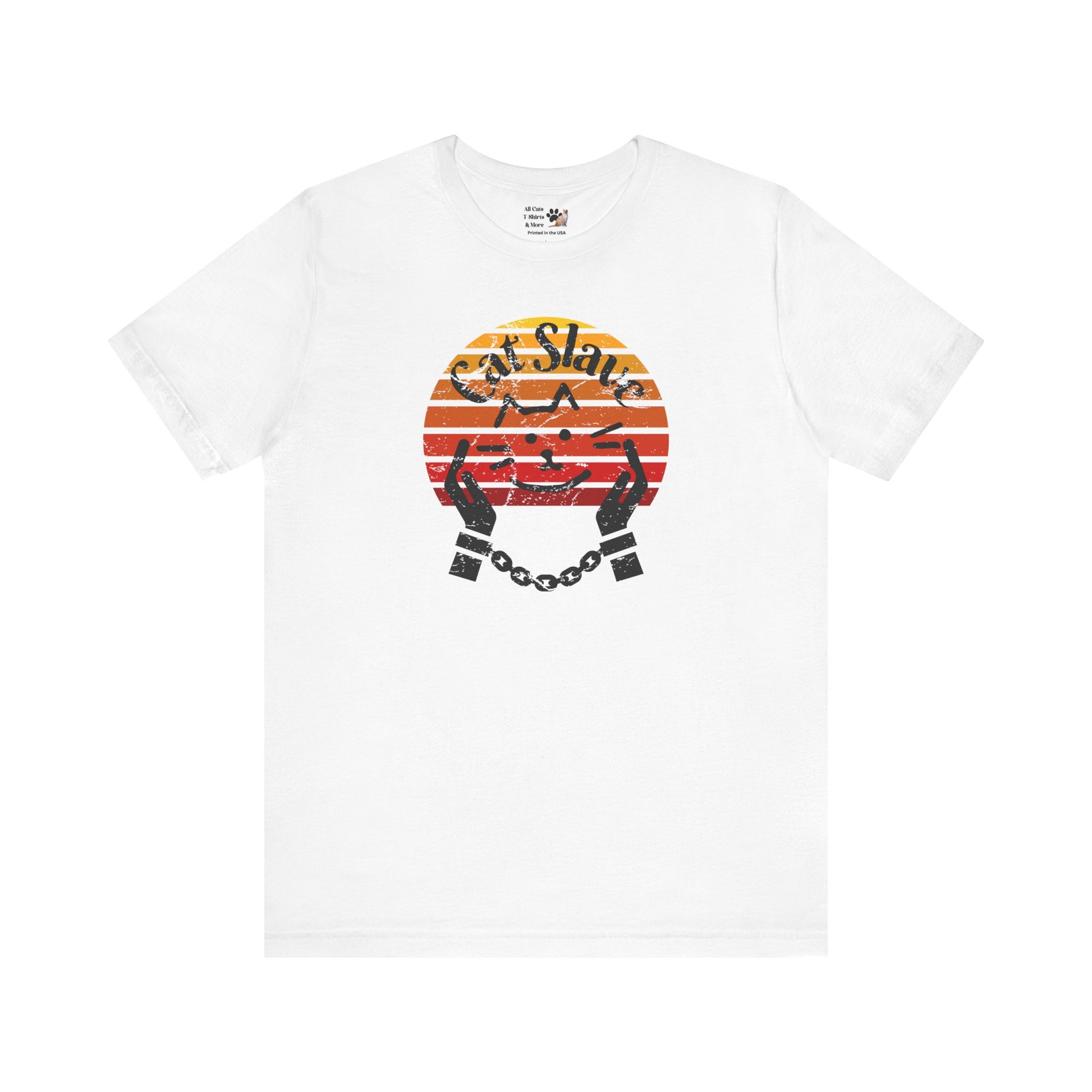Cat Slave Vintage Sunset T-Shirt for cat owners & lovers who know who the boss really is. This t-shirt exudes a playful and humorous vibe, perfect for cat owners and lovers to show their love for their feline companions. Ideal for casual wear and lounging around, this t-shirt is a great way to express your personality and love for cats.
