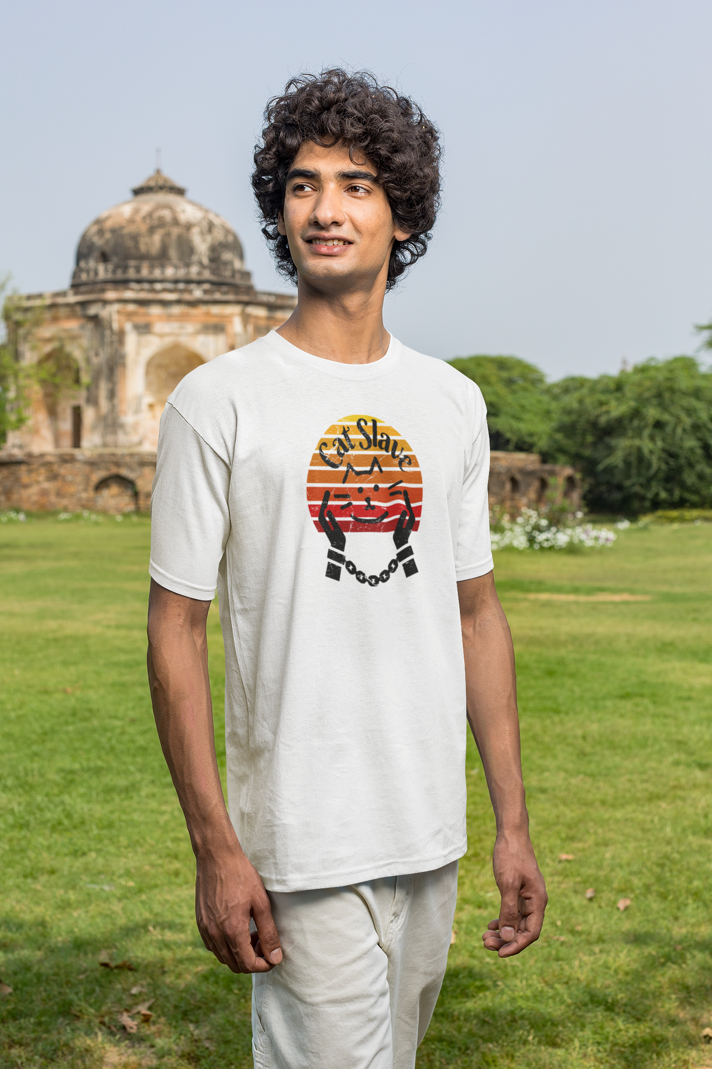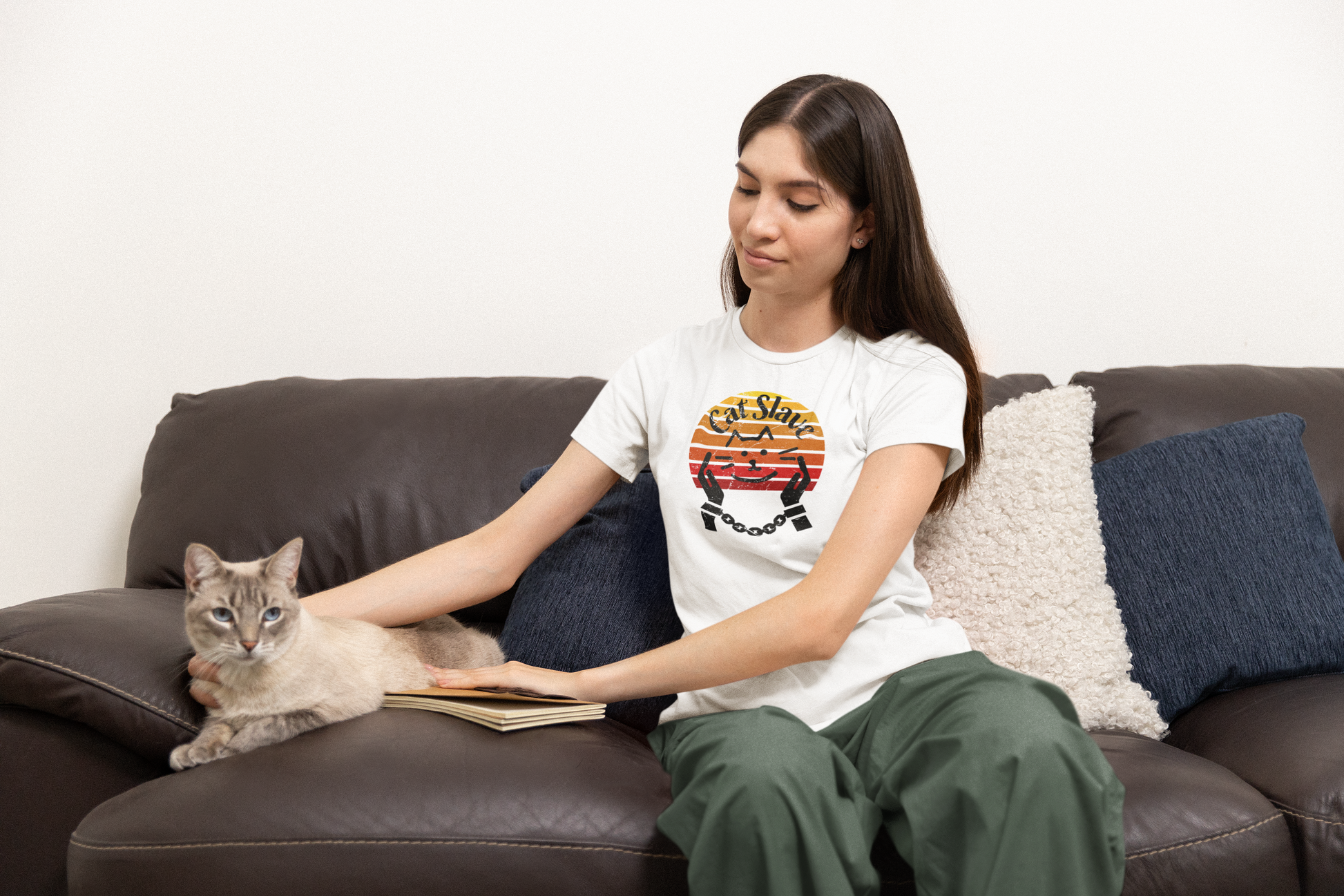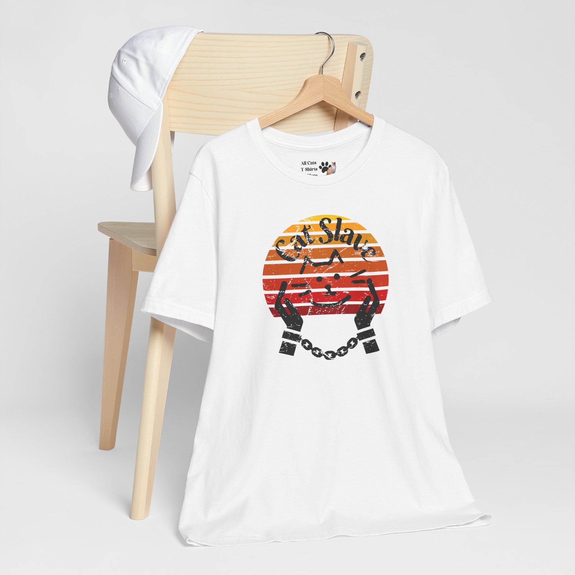 Cat Slave Vintage Sunset T-Shirt for cat owners & lovers who know who the boss really is. This t-shirt exudes a playful and humorous vibe, perfect for cat owners and lovers to show their love for their feline companions. Ideal for casual wear and lounging around, this t-shirt is a great way to express your personality and love for cats.