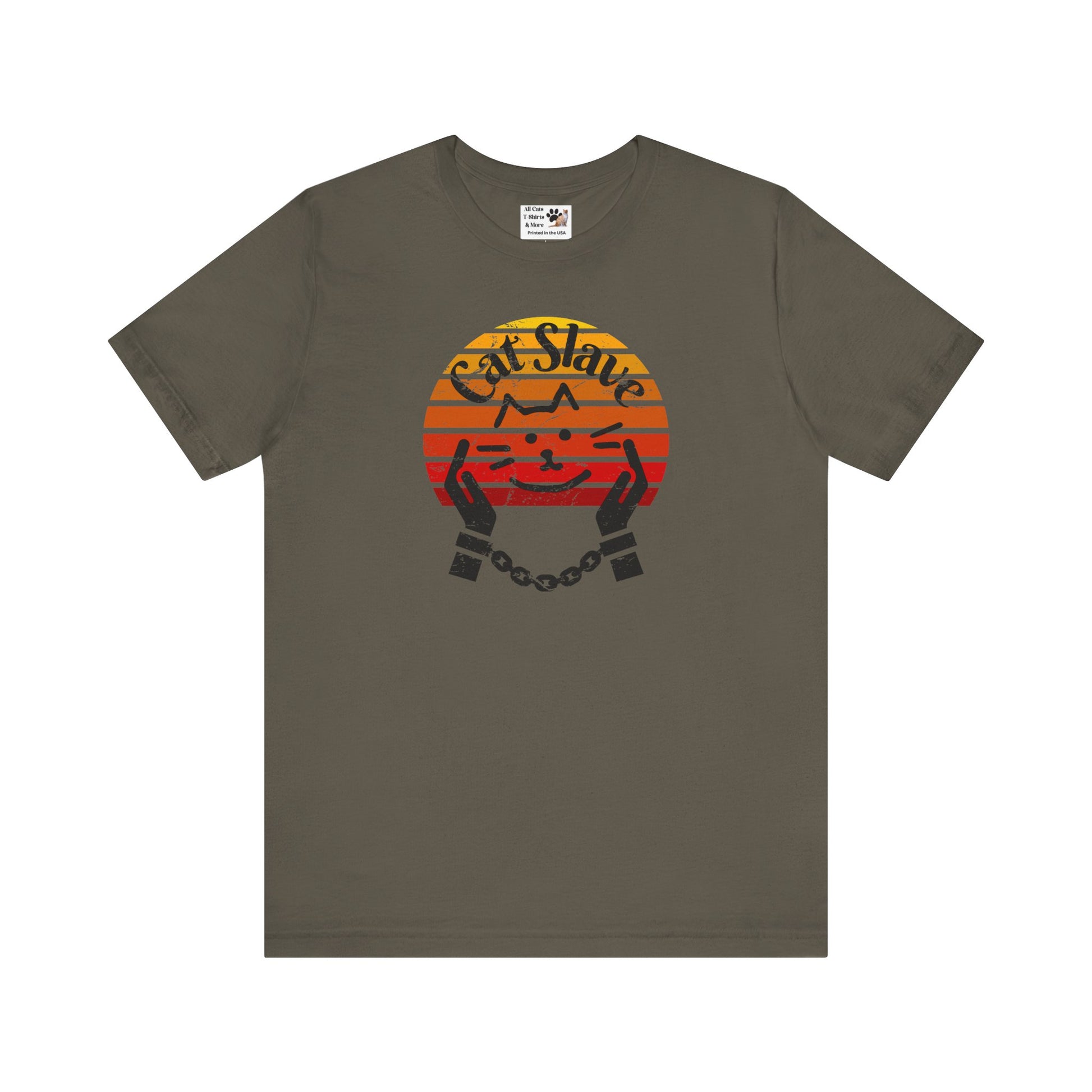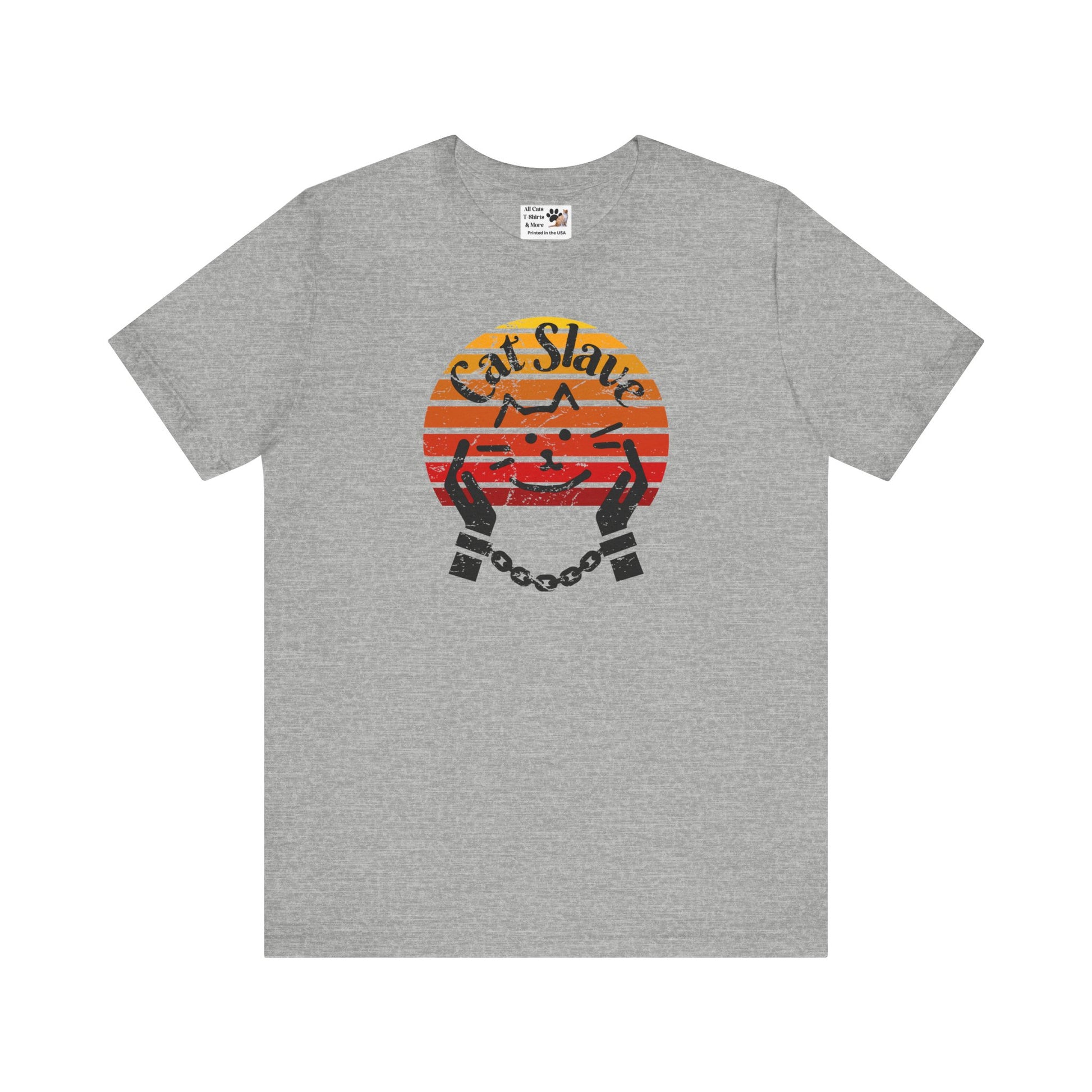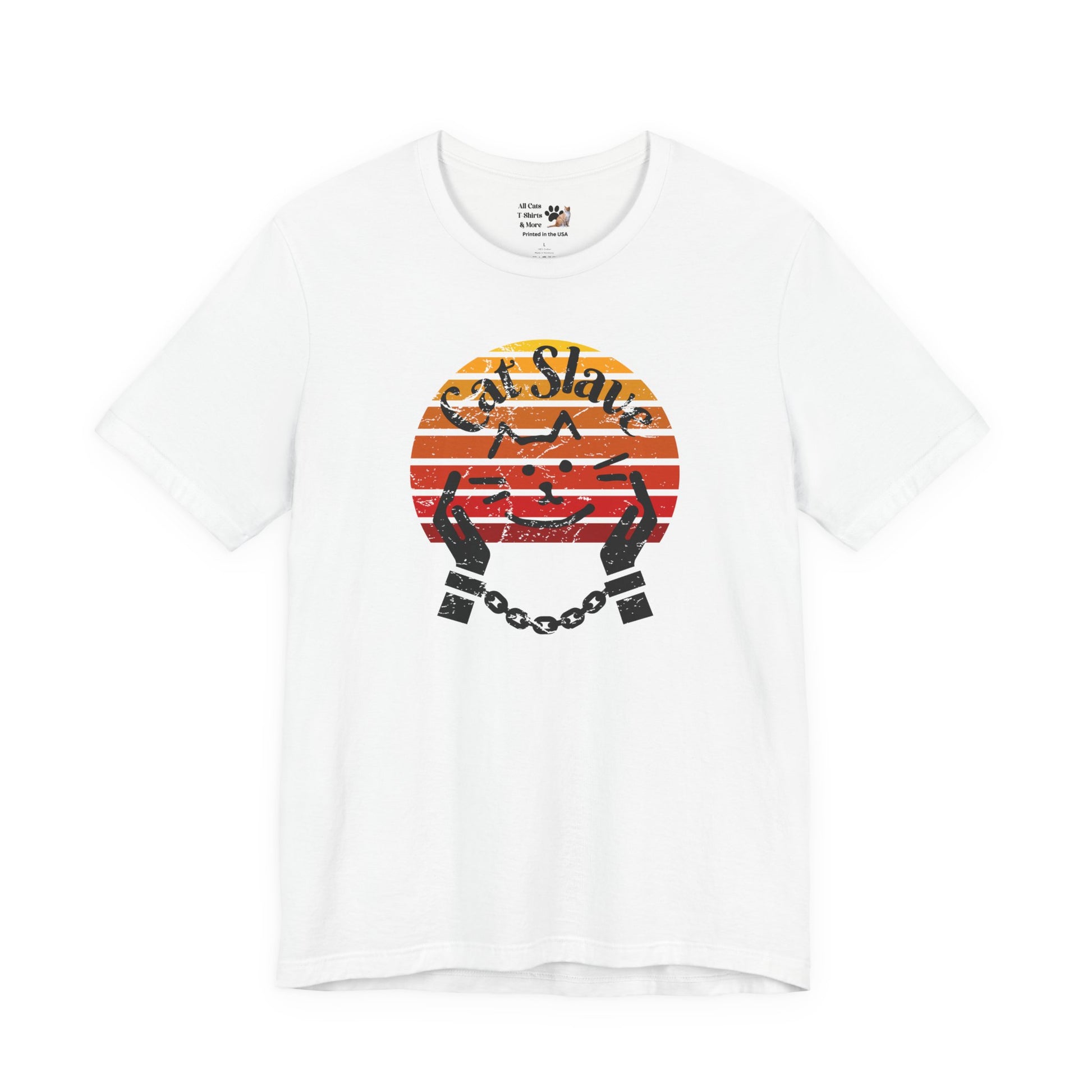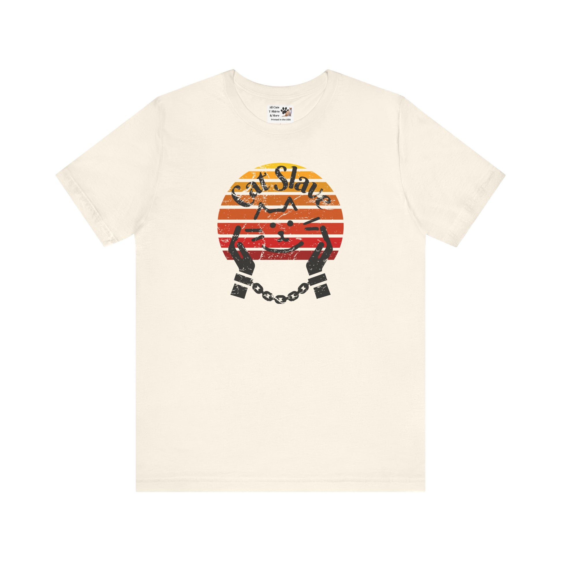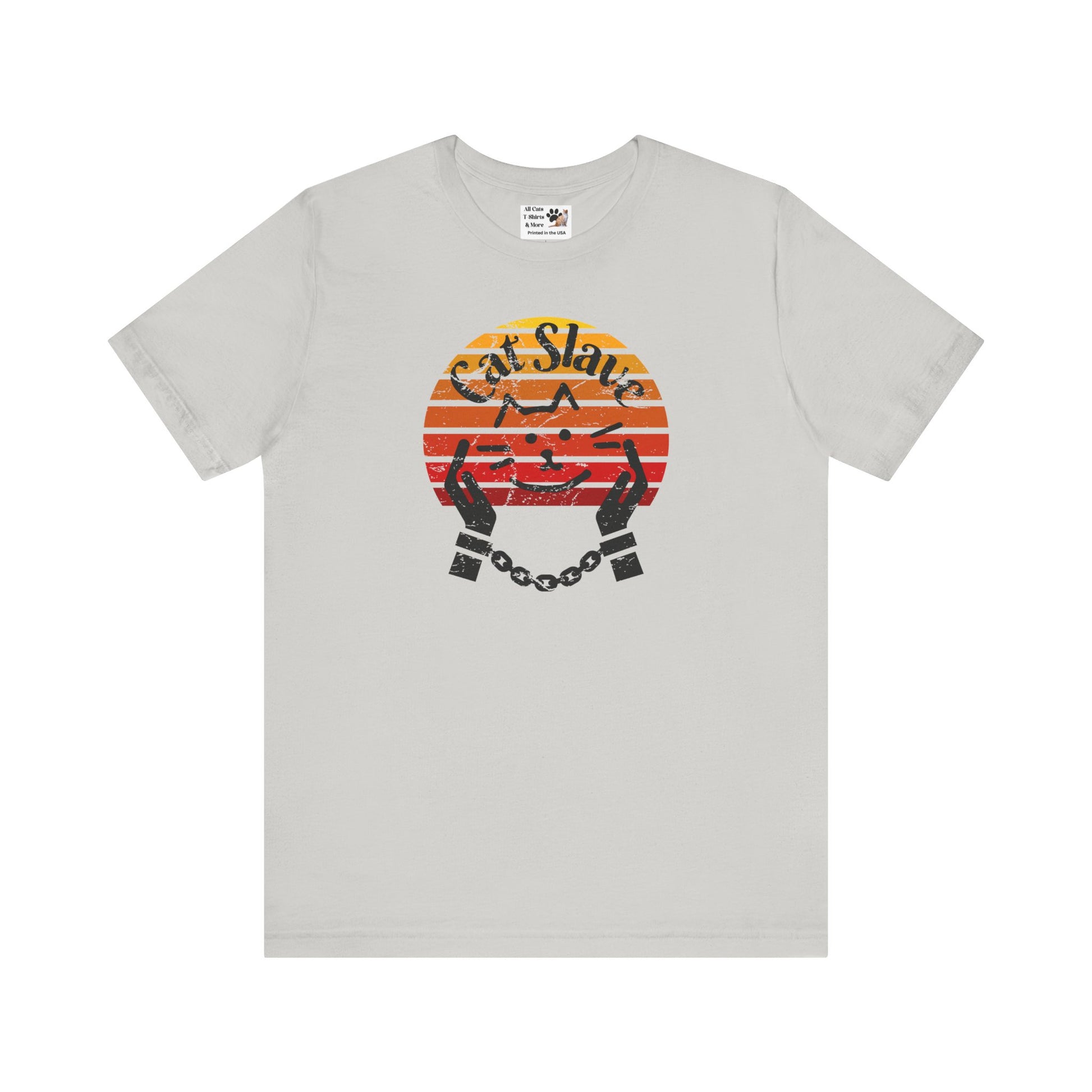 Funny Cat Slave Vintage Sunset T-Shirt, Unisex Jersey Tee - Casual & Trendy "Distressed Grunge Style" Design