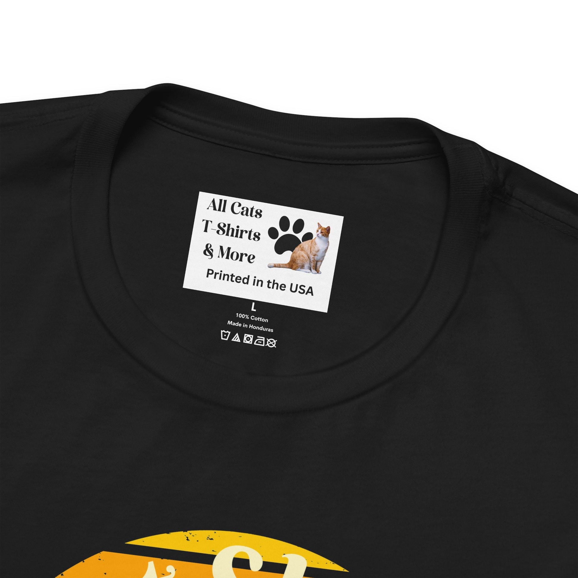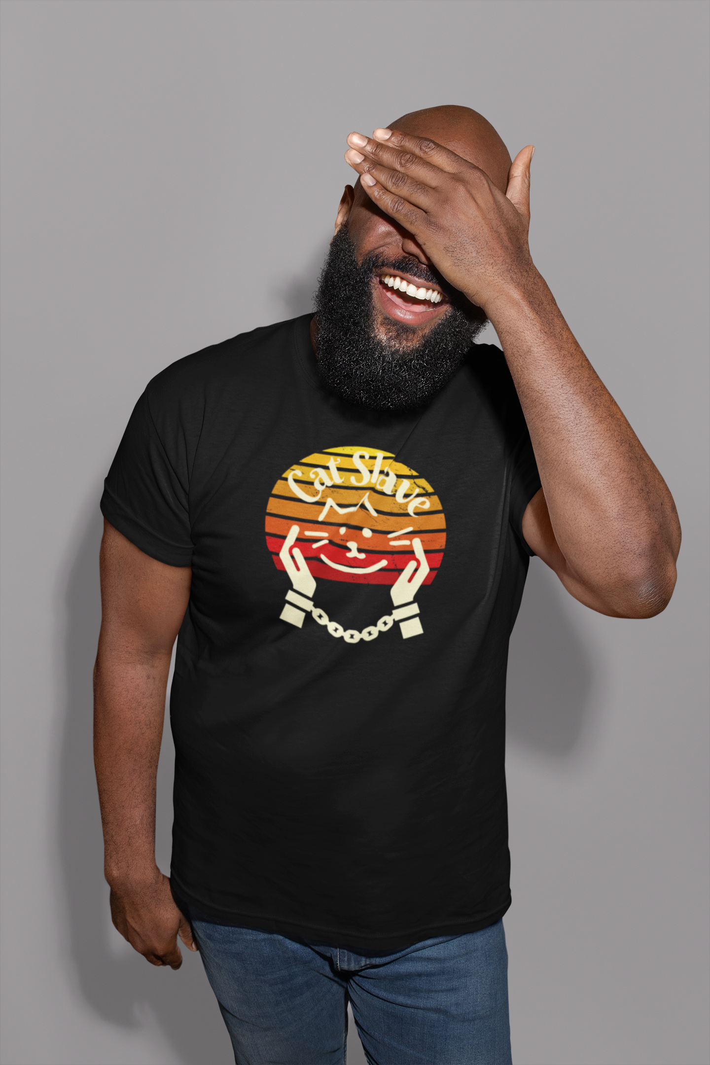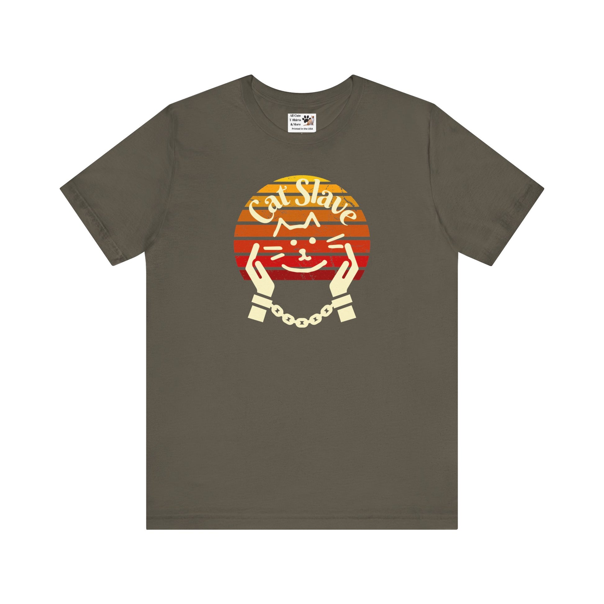 A humorous "Cat Slave Vintage Sunset T-Shirt" for cat owners & lovers who know who the boss really is. This t-shirt exudes a playful and humorous vibe, perfect for cat owners and lovers to show their love for their feline companions. Ideal for casual wear and lounging around, this t-shirt is a great way to express your personality and love for cats.