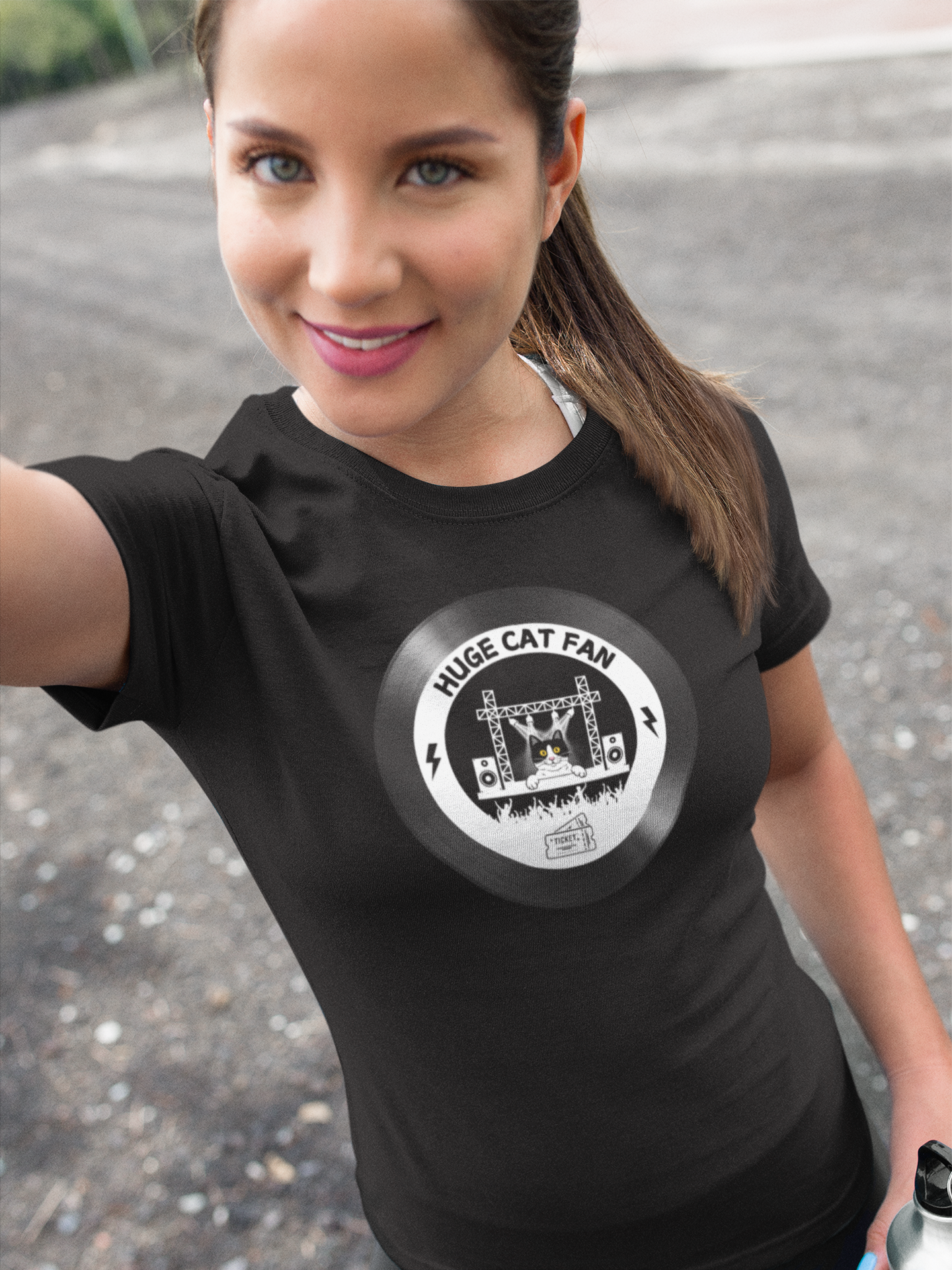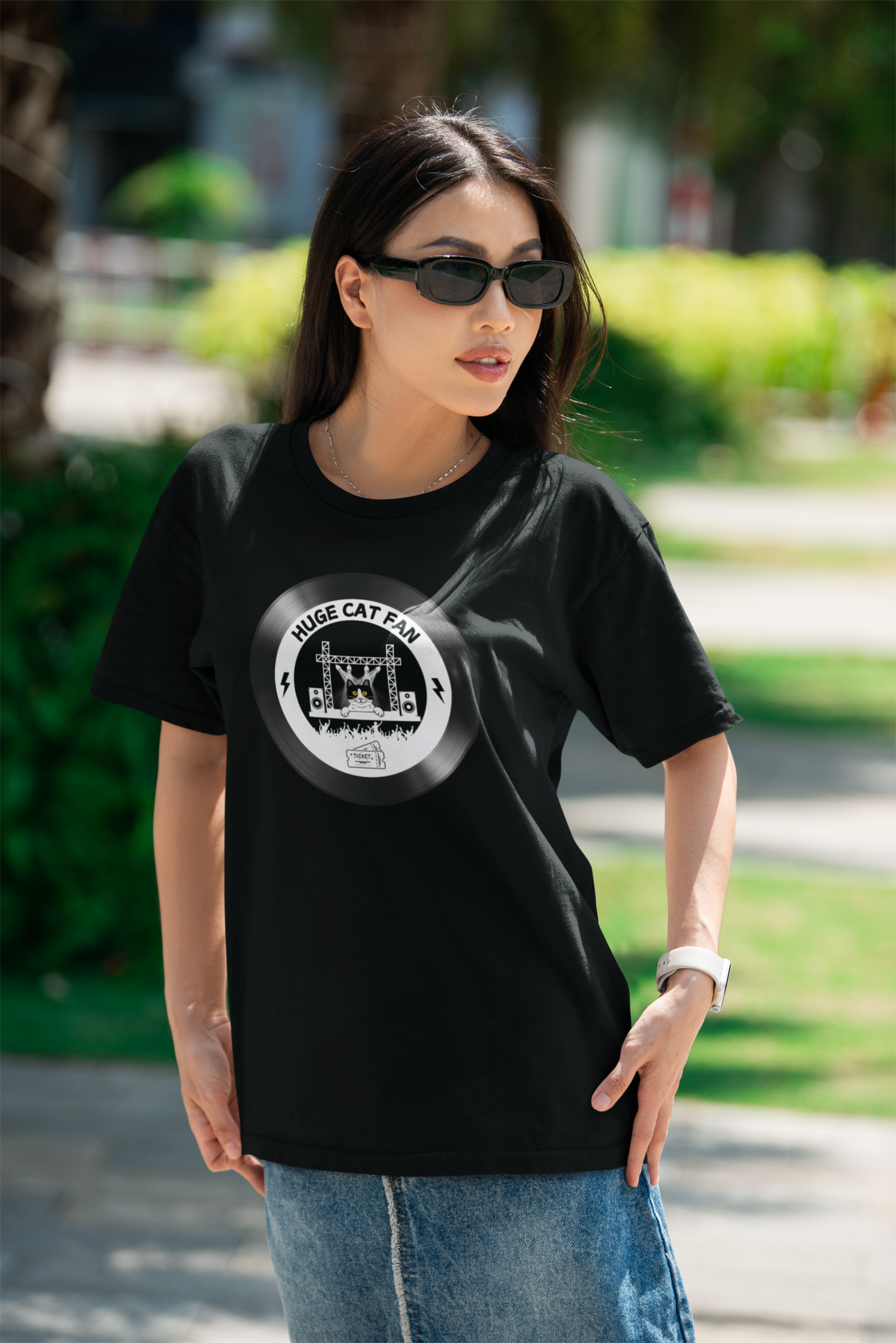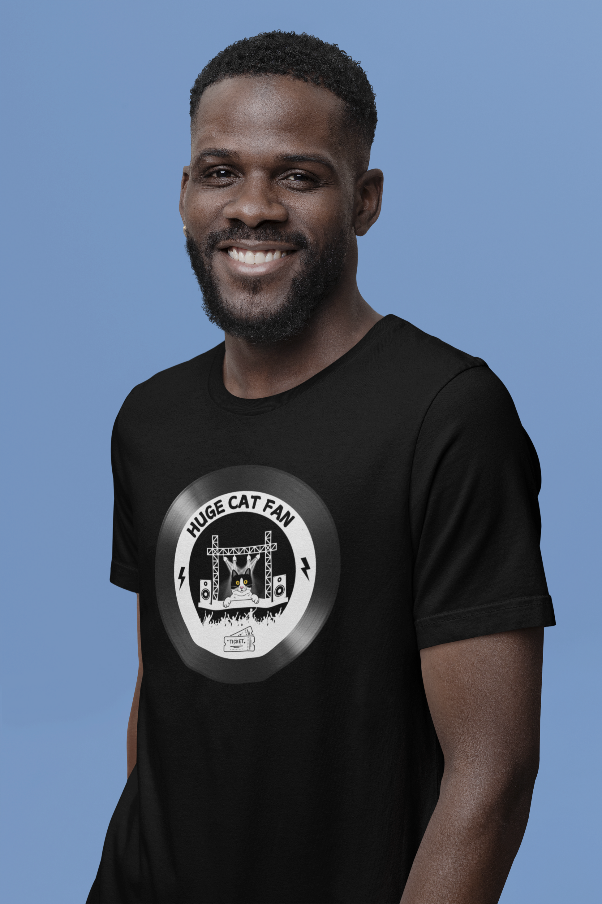 Huge Cat Fan "Record Style" T-Shirt - (Fun Unisex Jersey Tee - Music & Cat Lover T-Shirt)