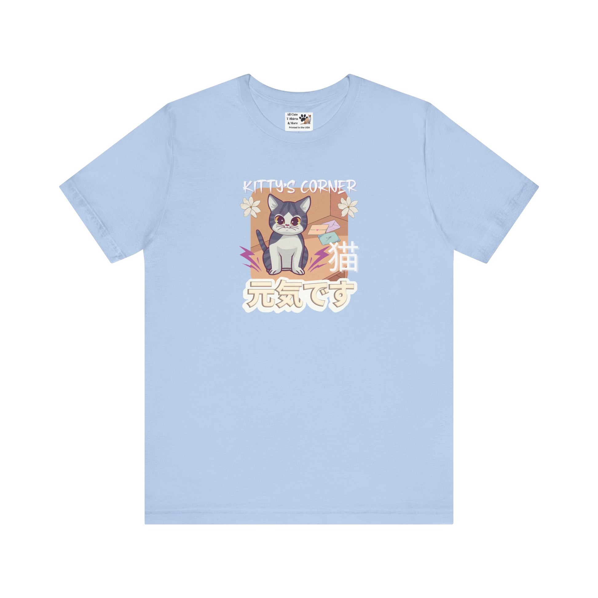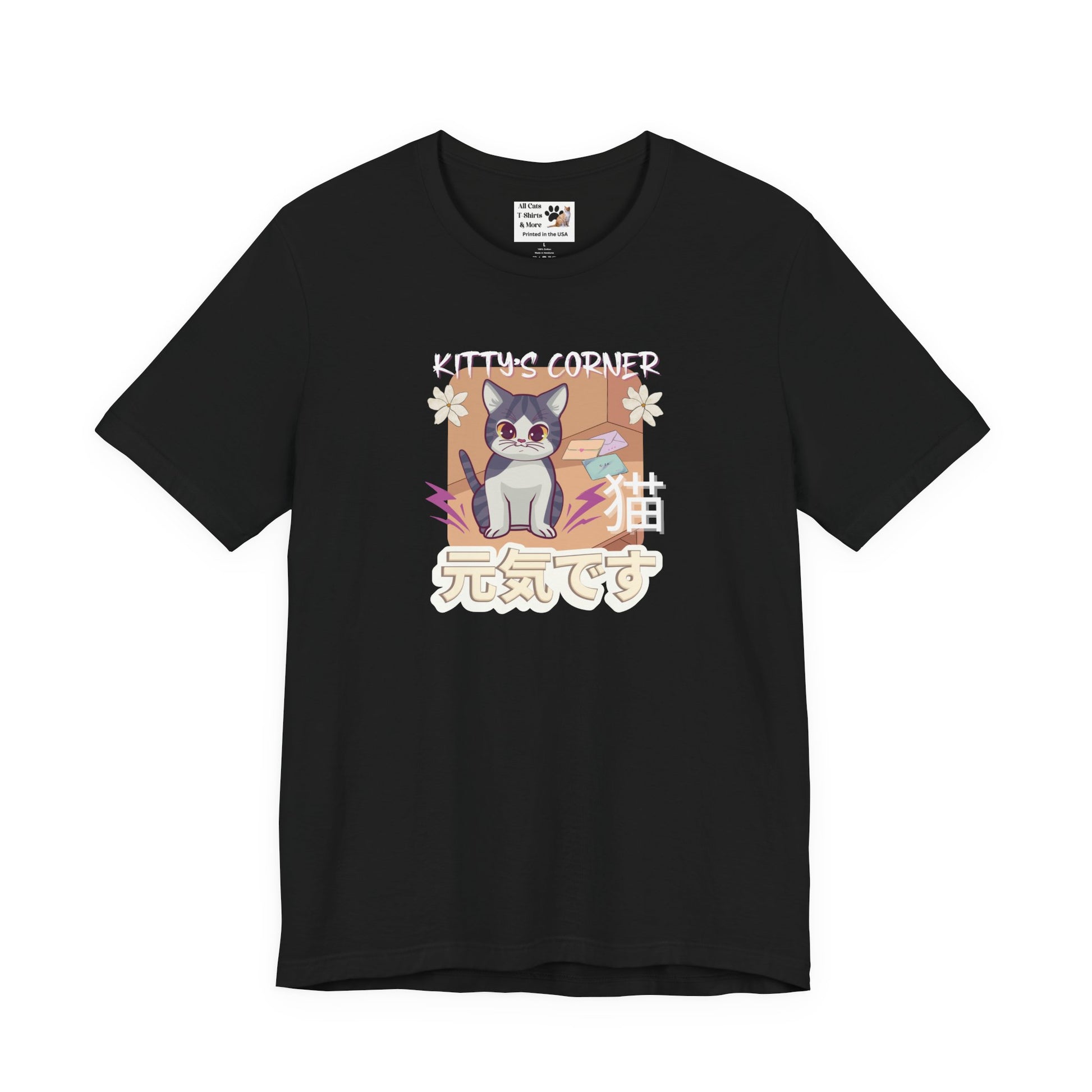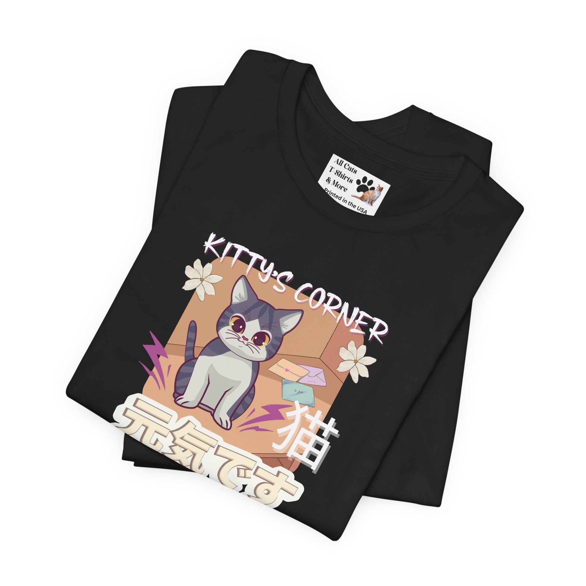 "Kitty's Corner" Japanese Anime Style Graphic T-Shirt - (Unisex Jersey Short Sleeve Tee for Cat Lovers)