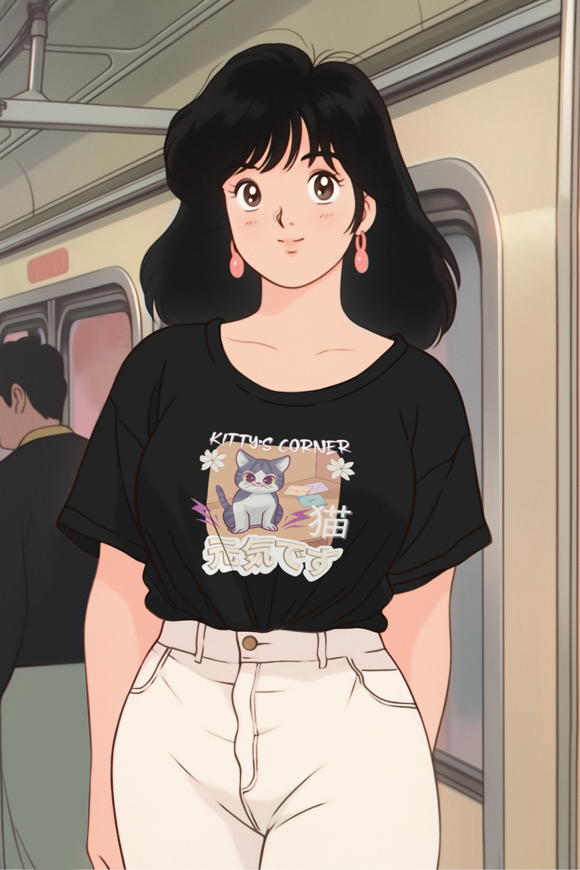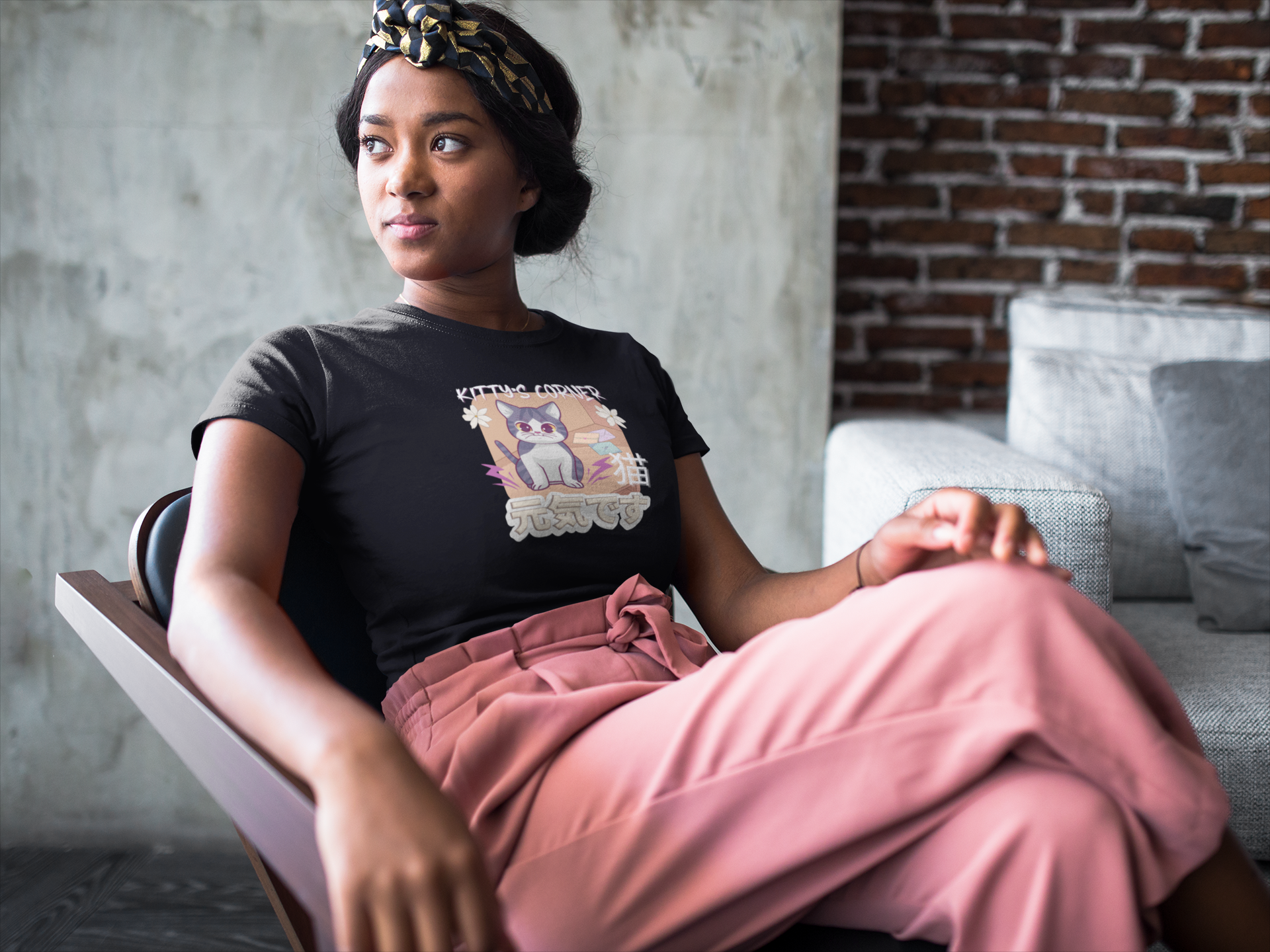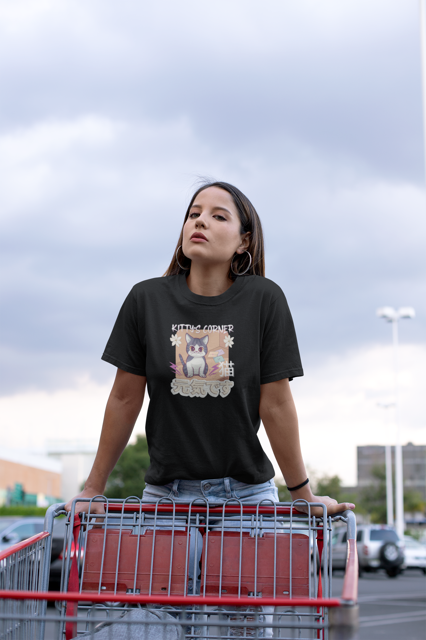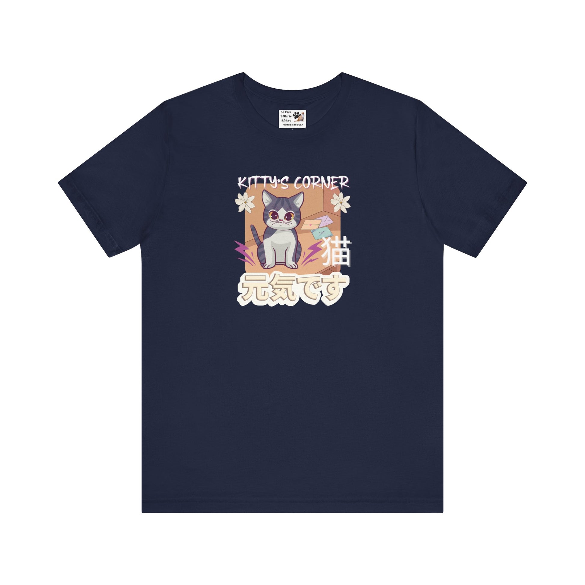 "Kitty's Corner" Japanese Anime Style Graphic T-Shirt - (Unisex Jersey Short Sleeve Tee for Cat Lovers)