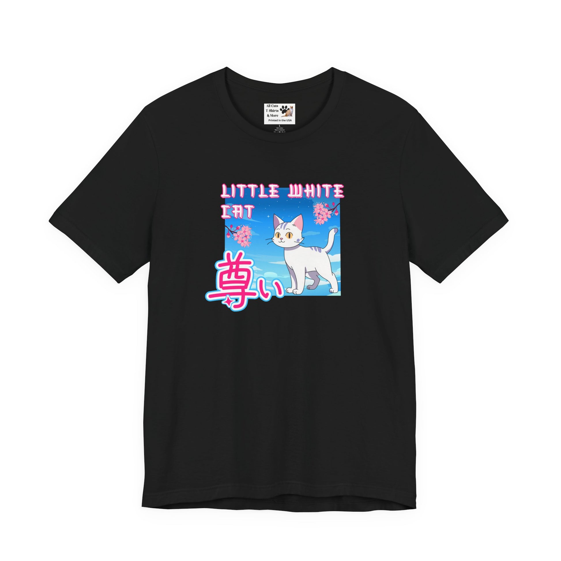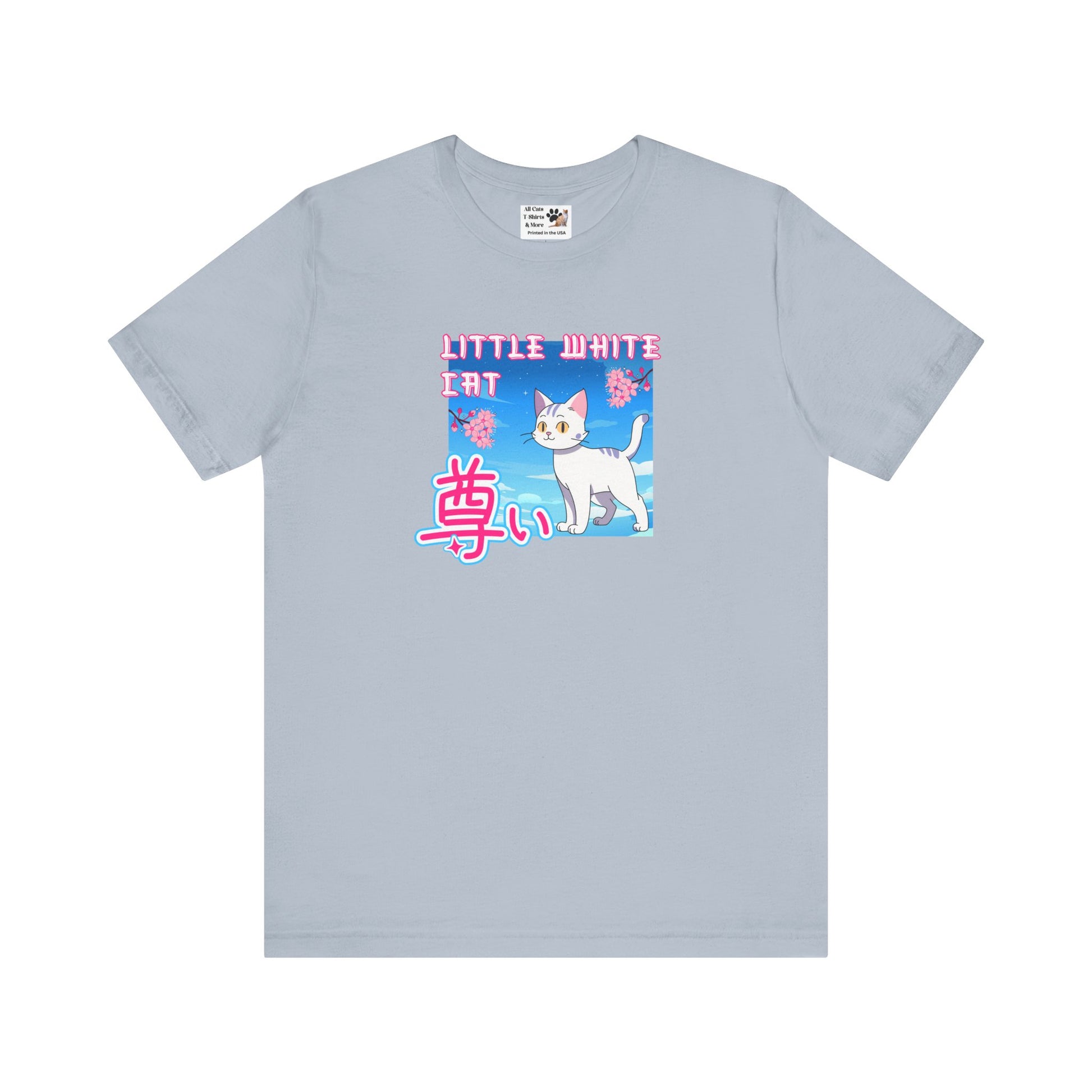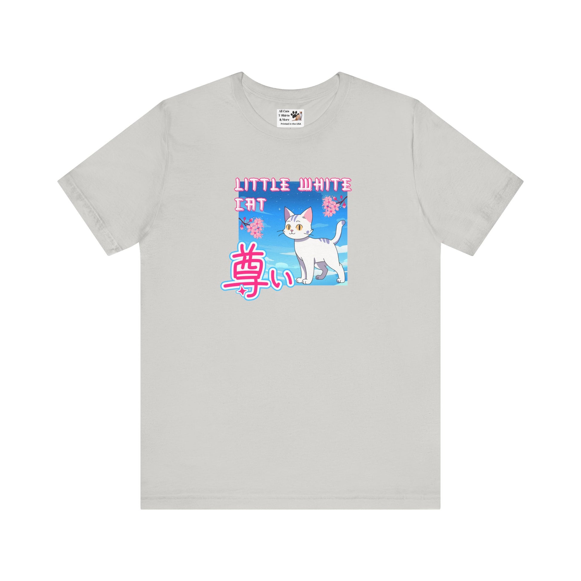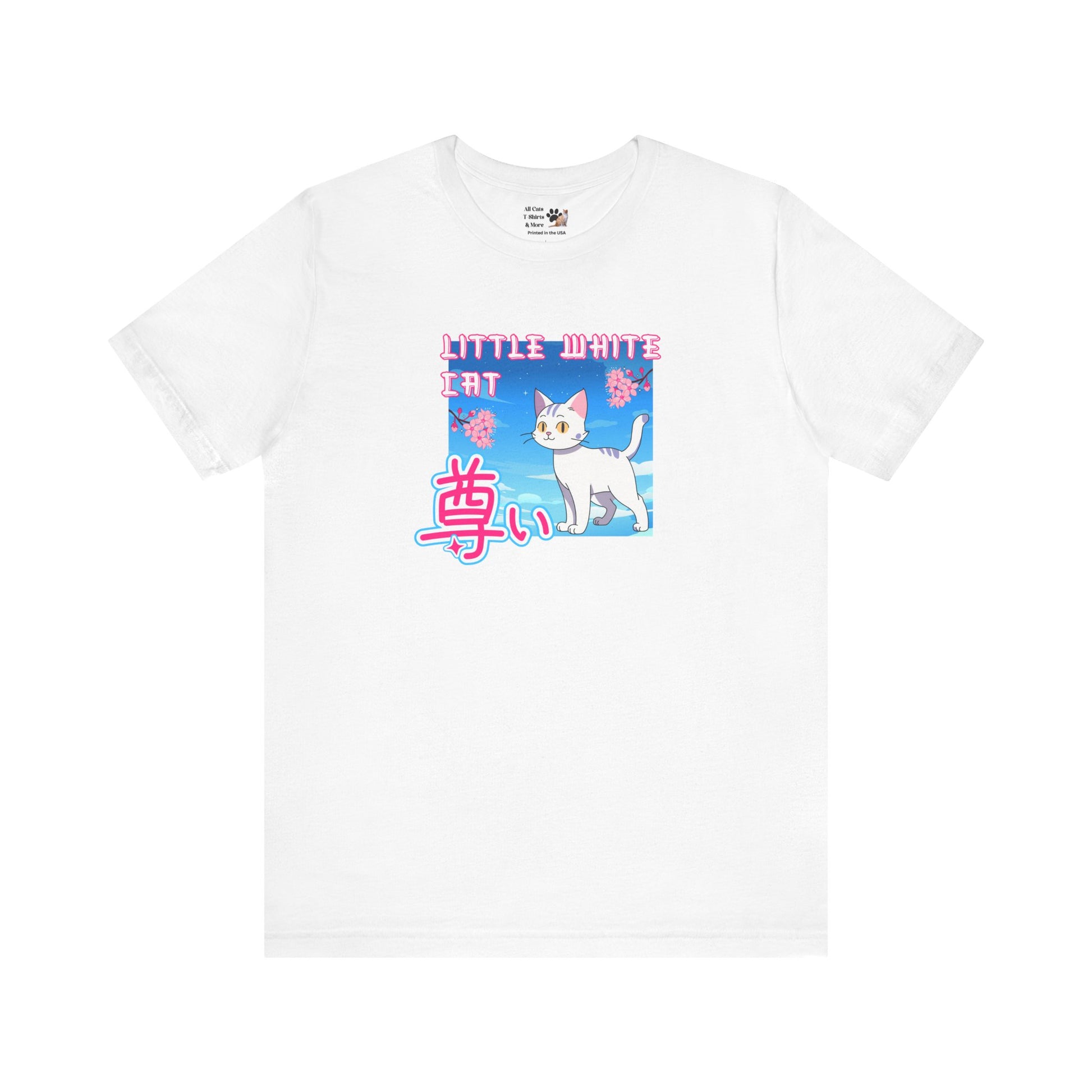 "Little White Cat" - Anime Style Design for Cat Lovers - (Unisex Jersey Short Sleeve Tee - Cute Cat Graphic Tee)