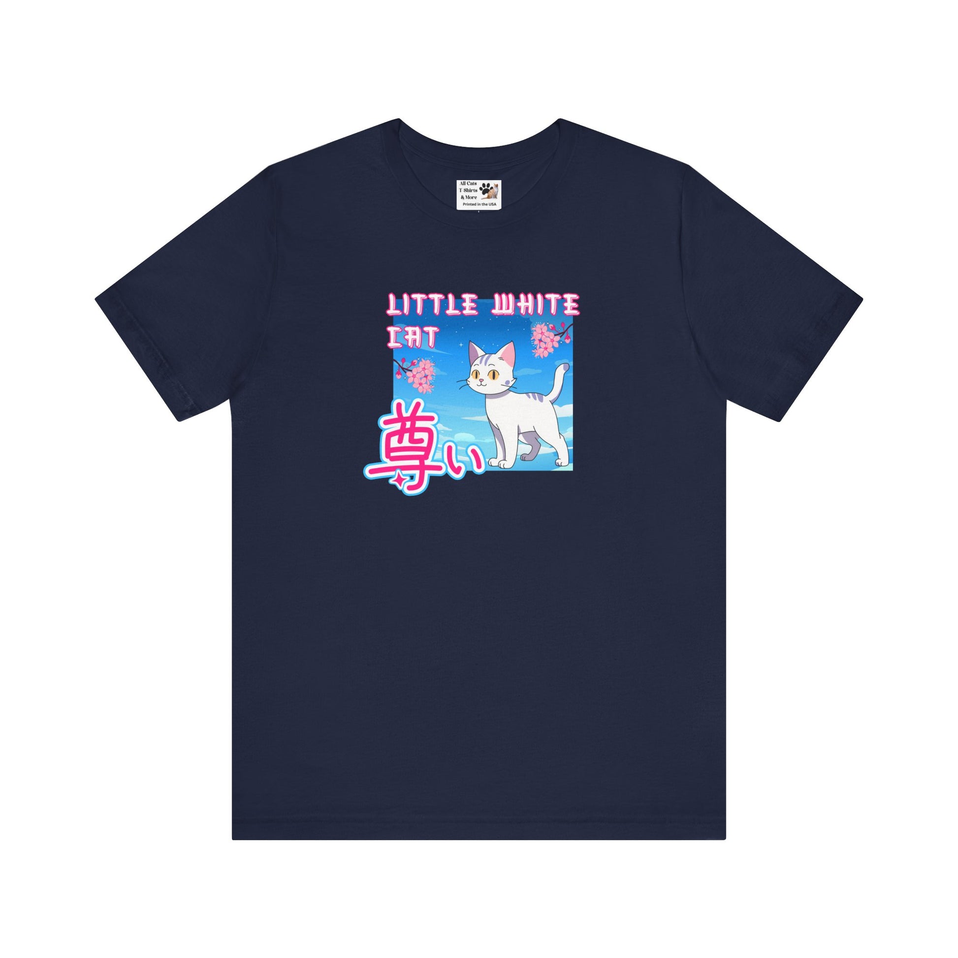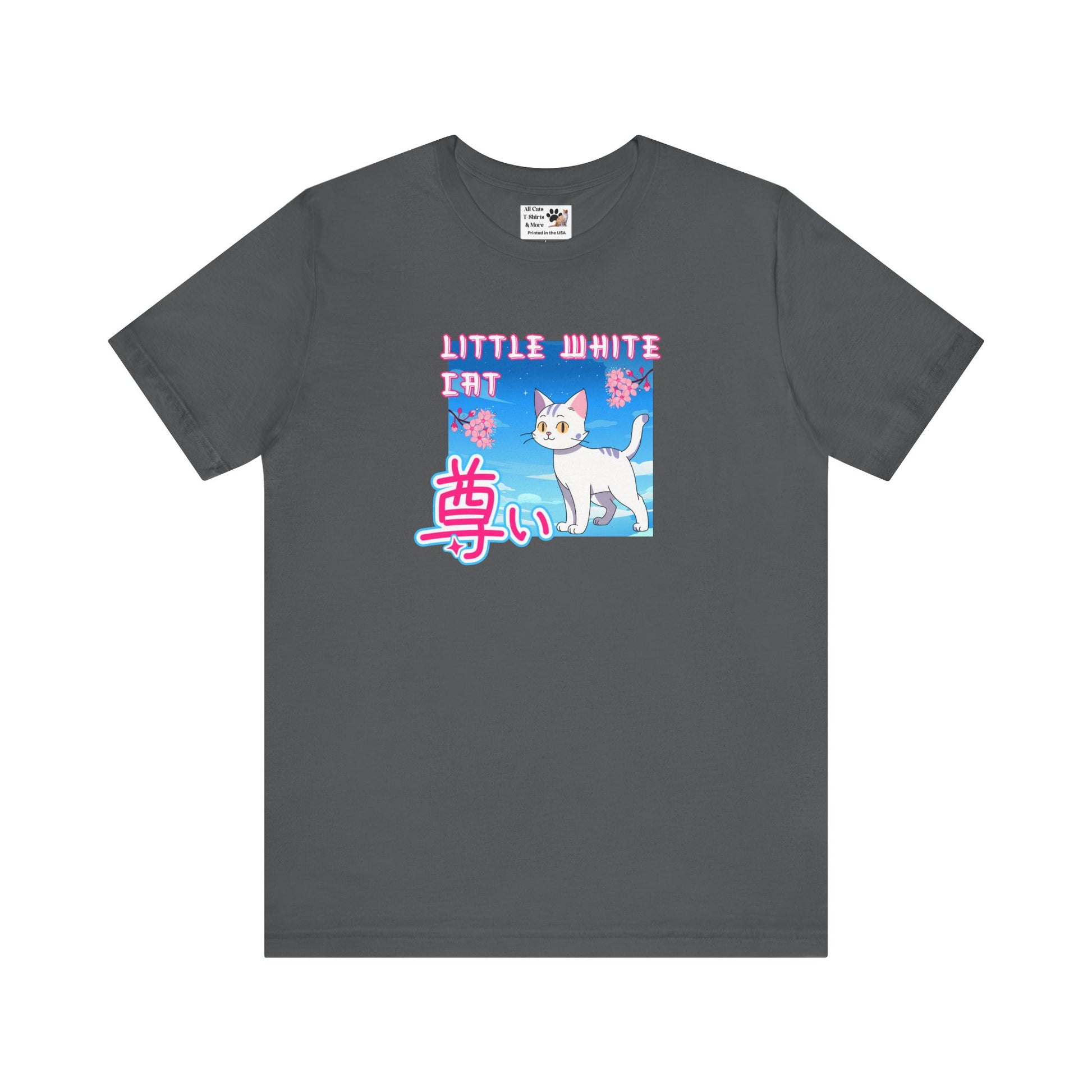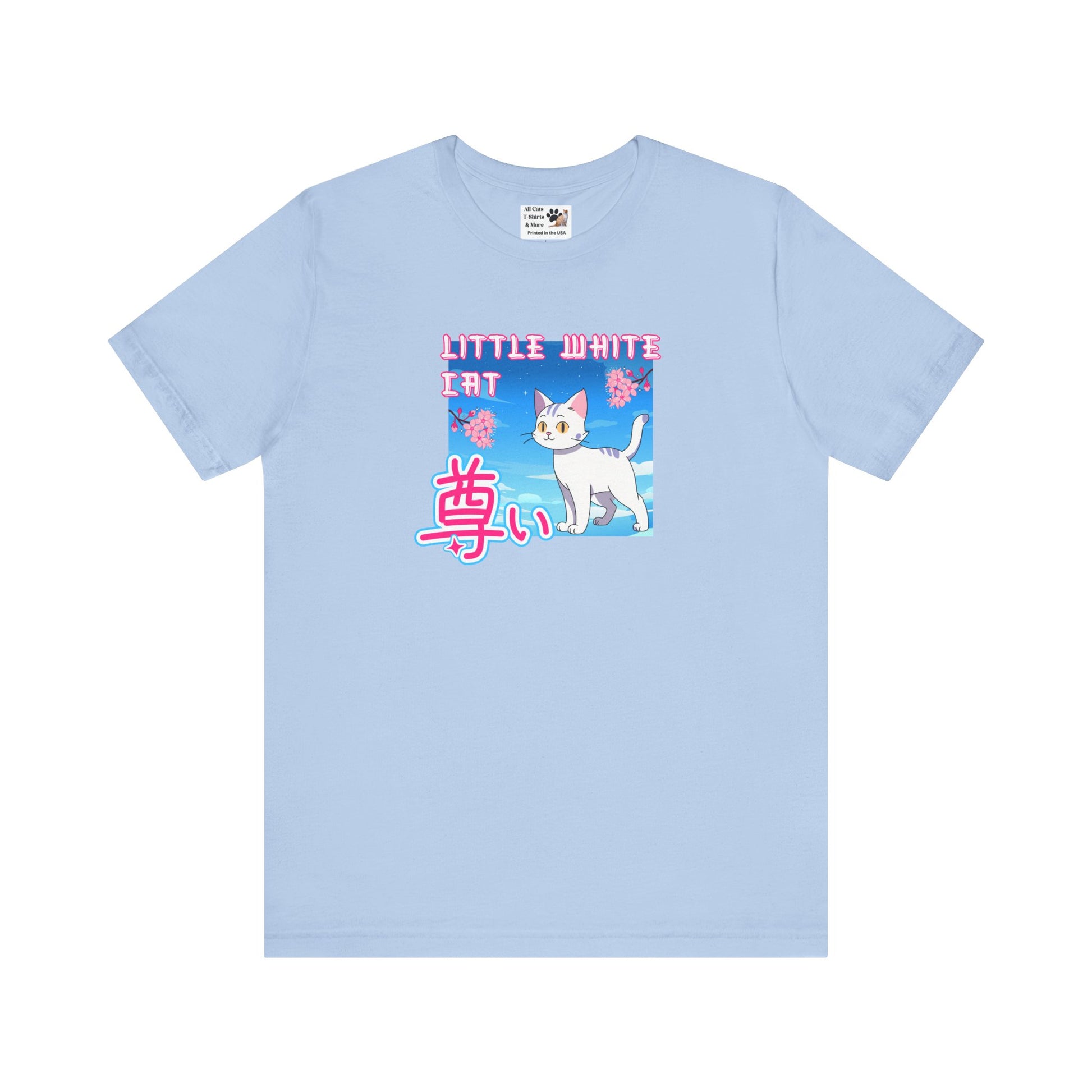 "Little White Cat" - Anime Style Design for Cat Lovers - (Unisex Jersey Short Sleeve Tee - Cute Cat Graphic Tee)