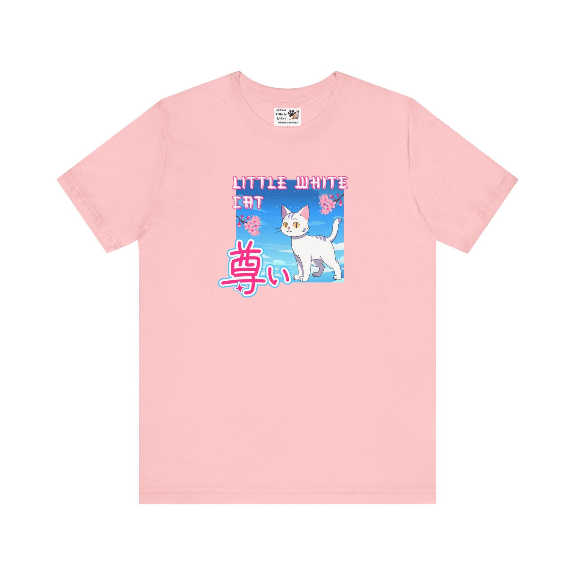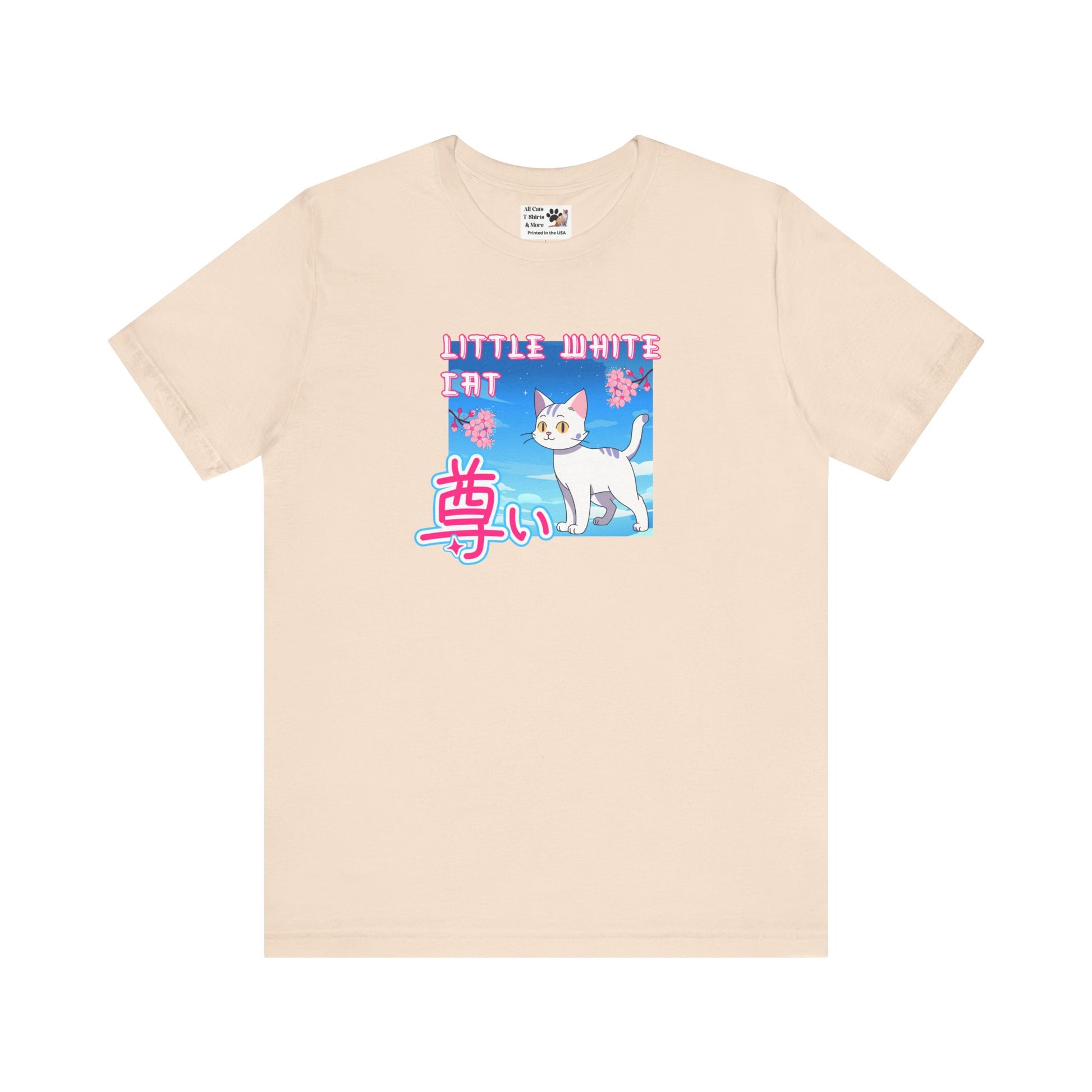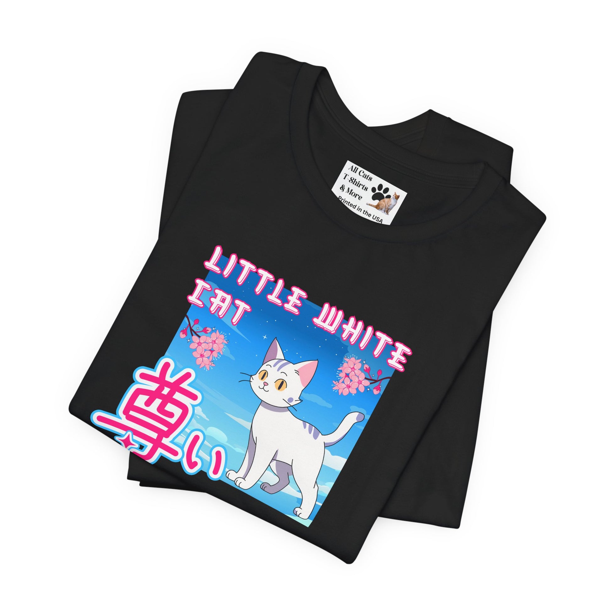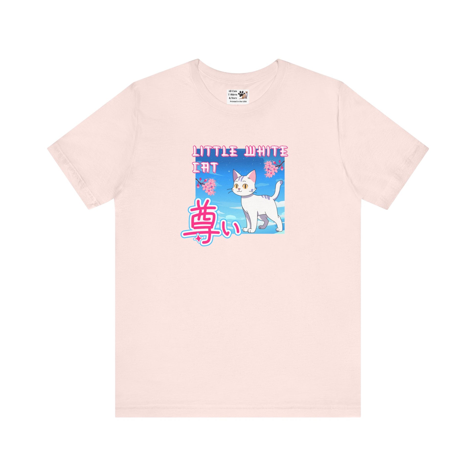 "Little White Cat" - Anime Style Design for Cat Lovers - (Unisex Jersey Short Sleeve Tee - Cute Cat Graphic Tee)