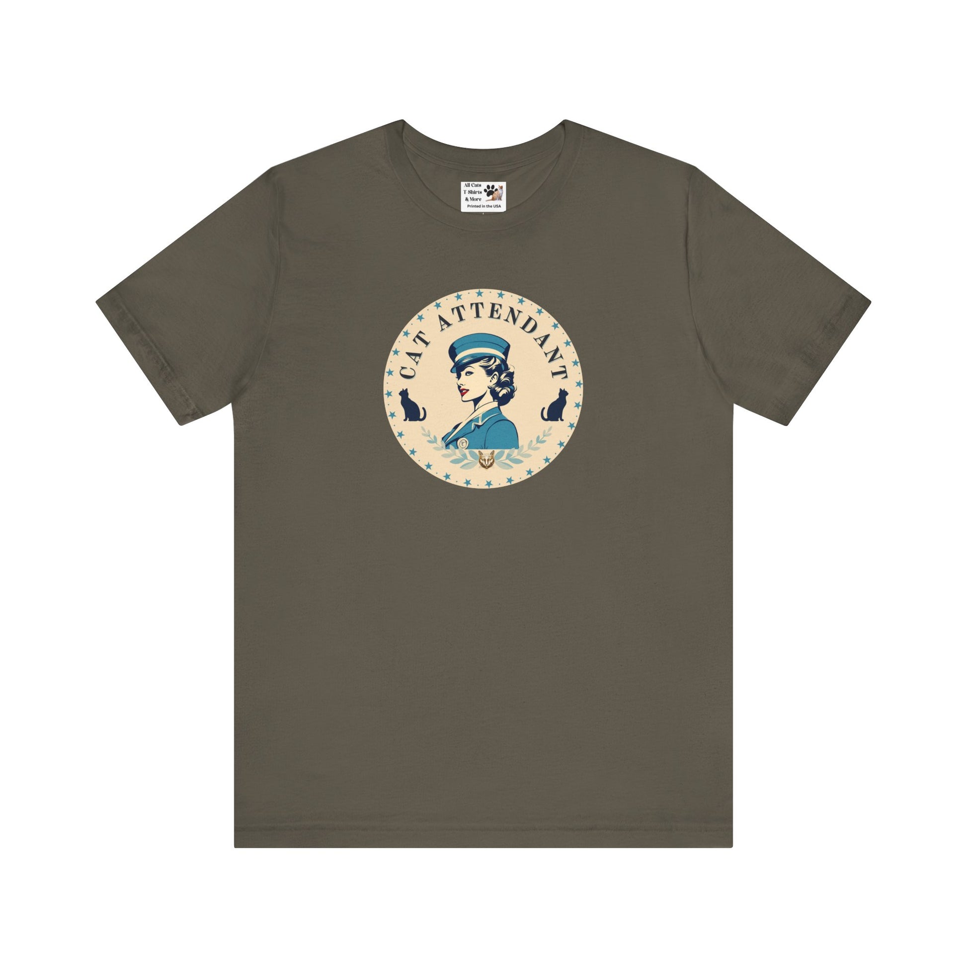 Vintage Style "Cat Attendant" T-Shirt - (Unisex Jersey Short Sleeve Tee - Perfect Gift for Cat Lovers!)